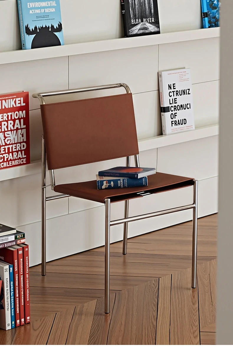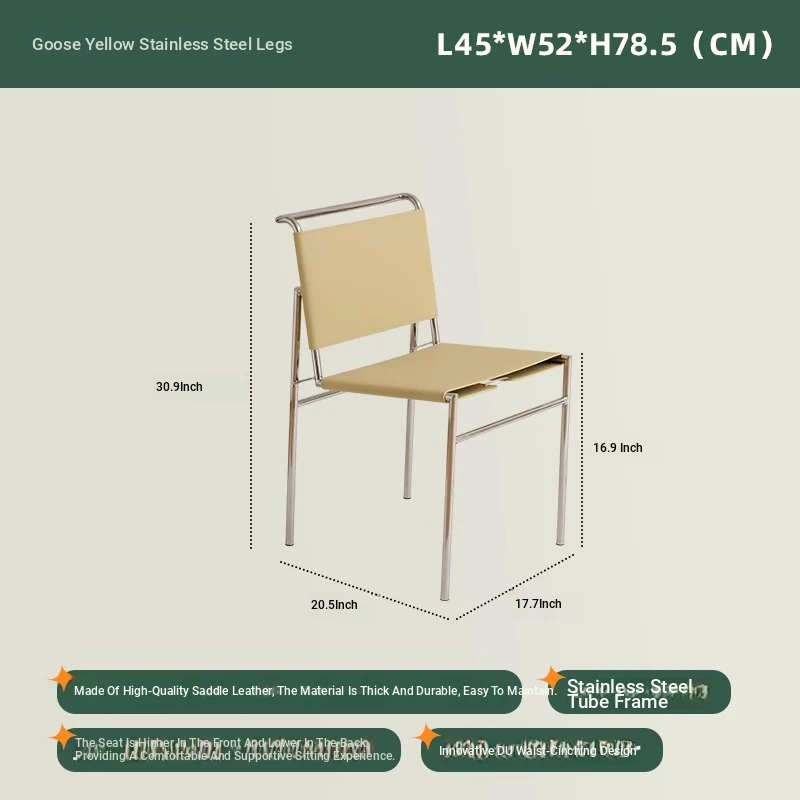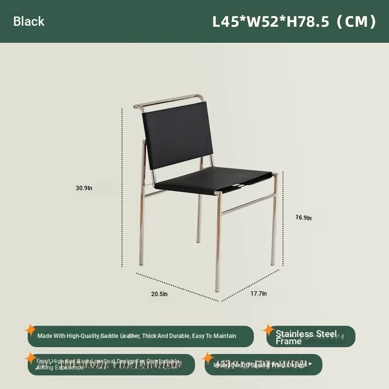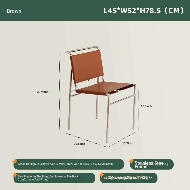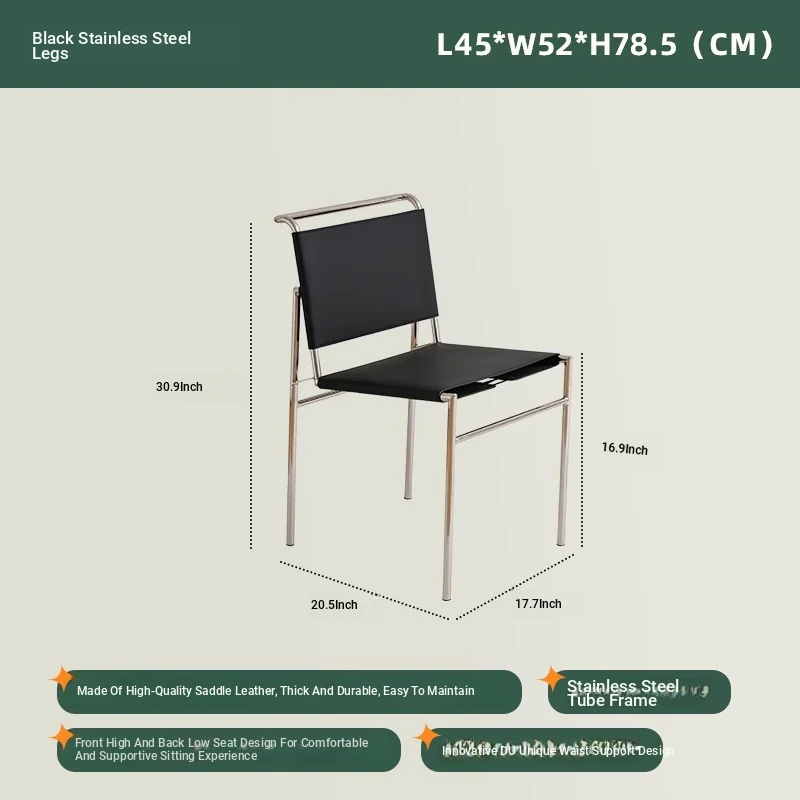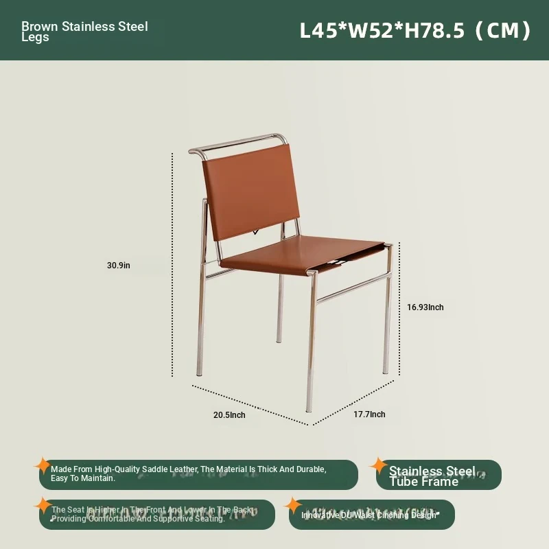 Italian Minimalist Bauhaus-Inspired Designer Saddle Leather Dining Chair - Luxurious Home Rockblen Armchair