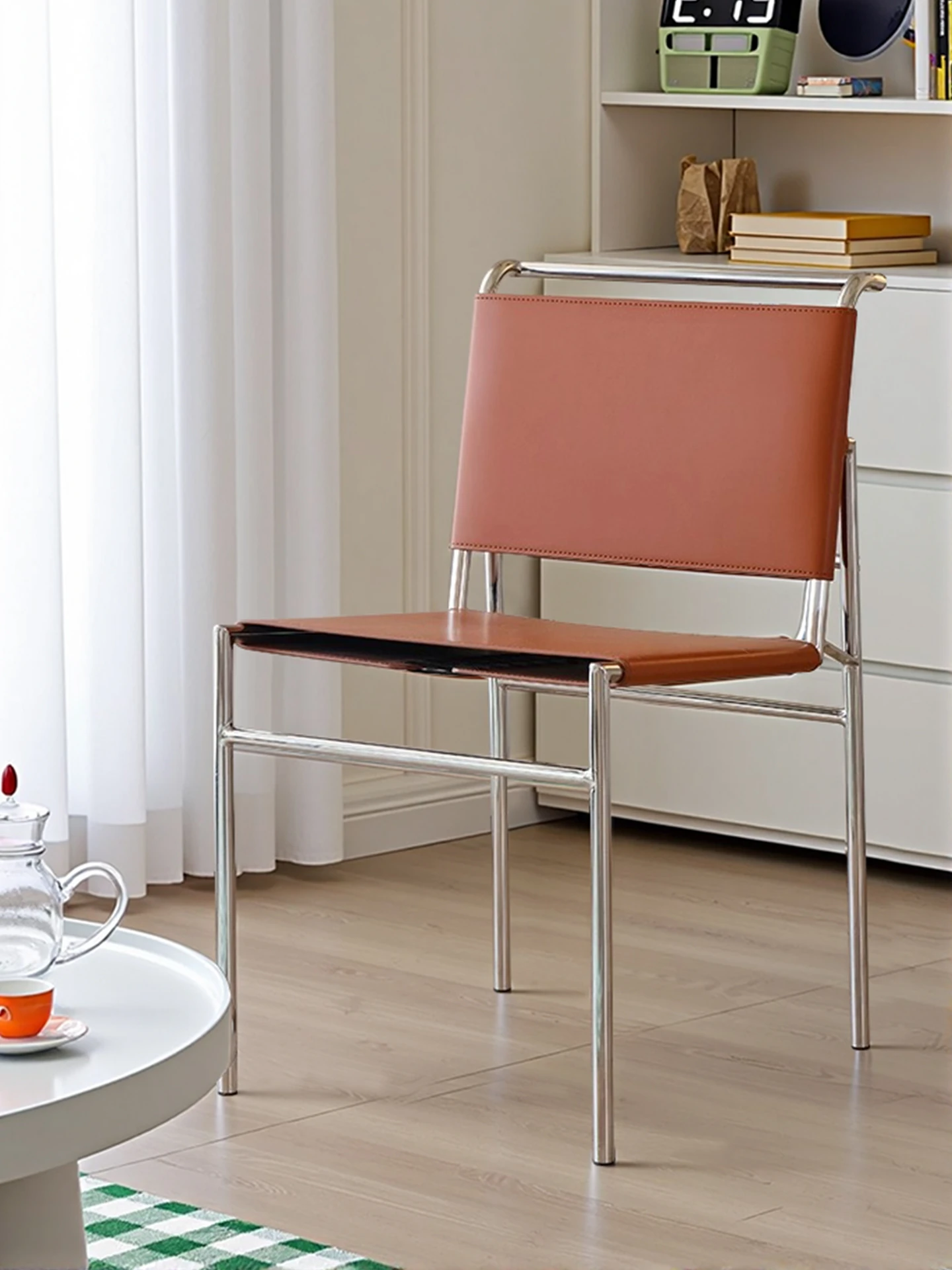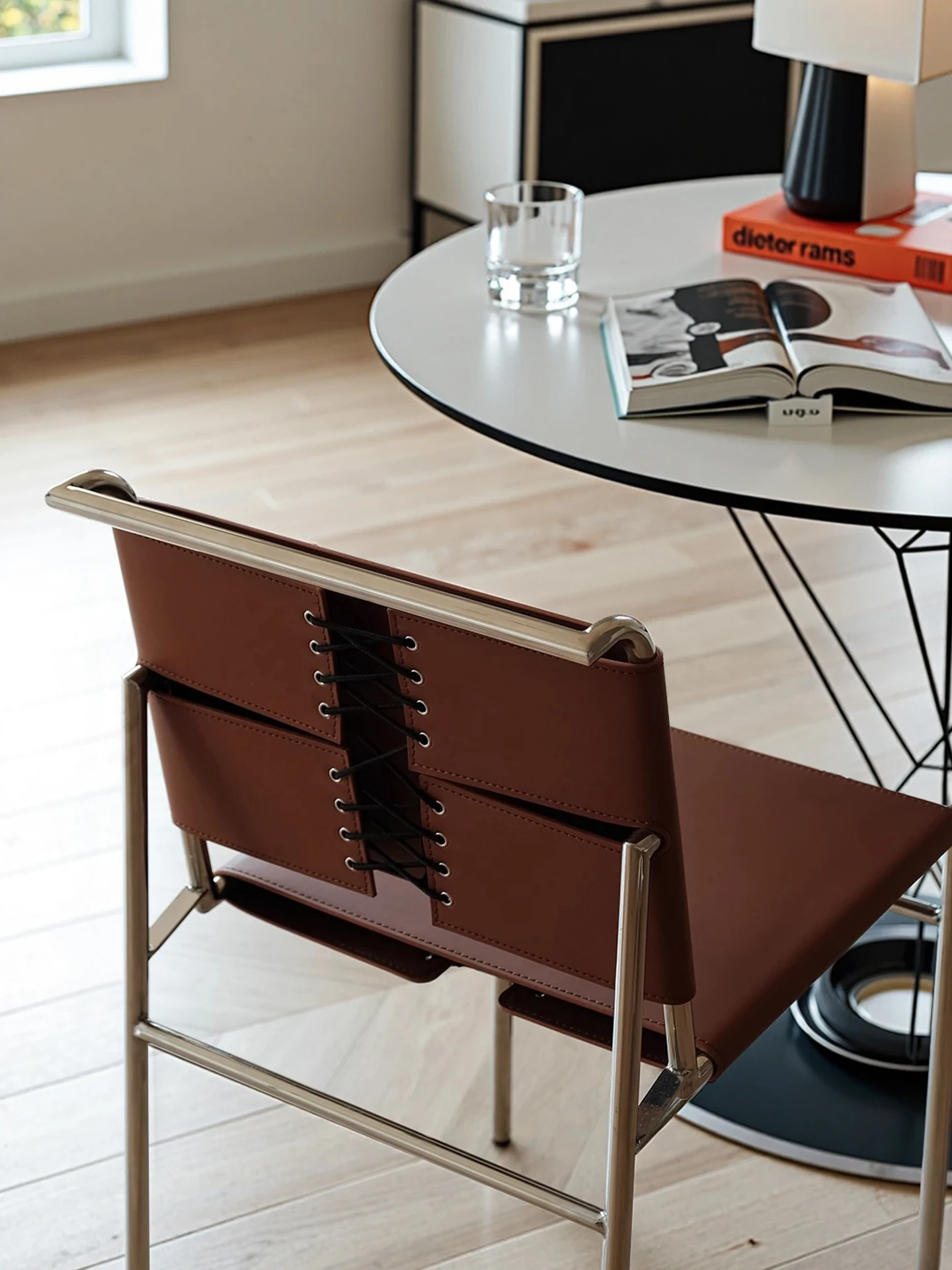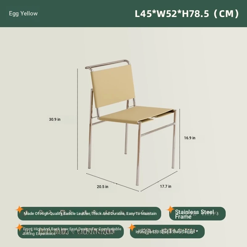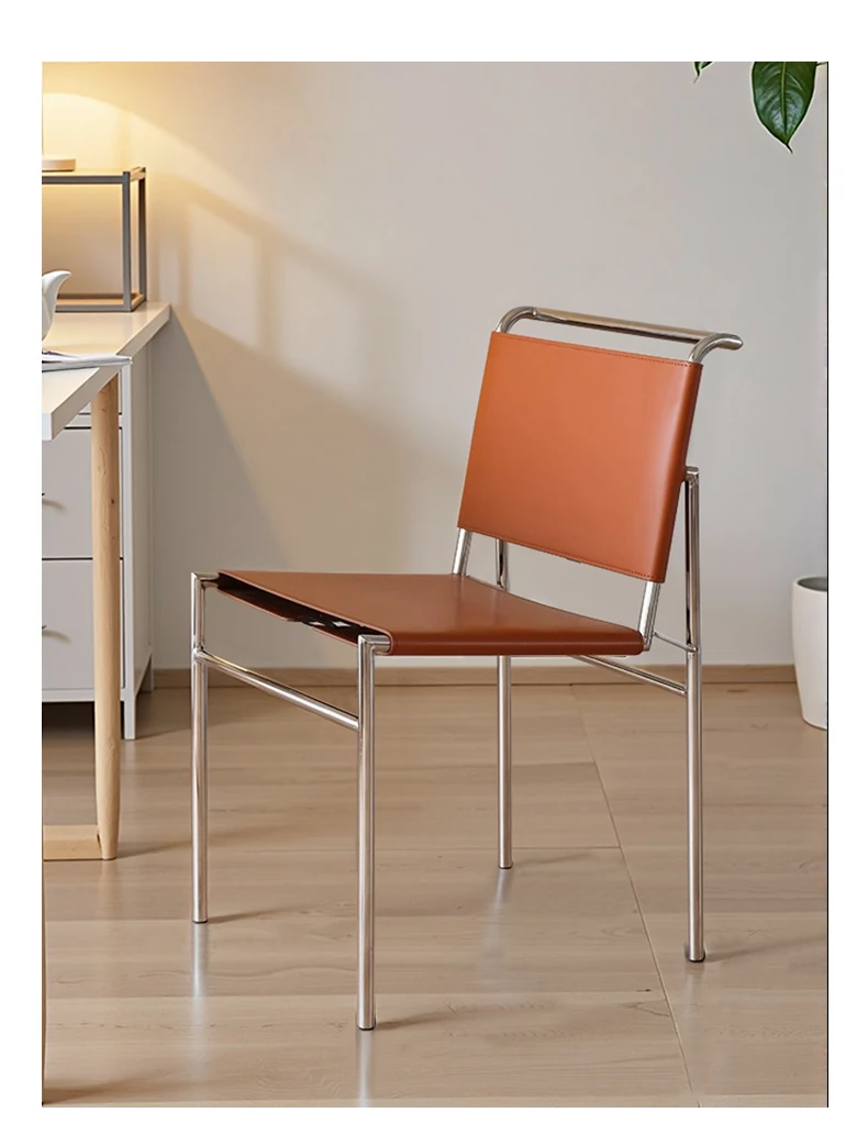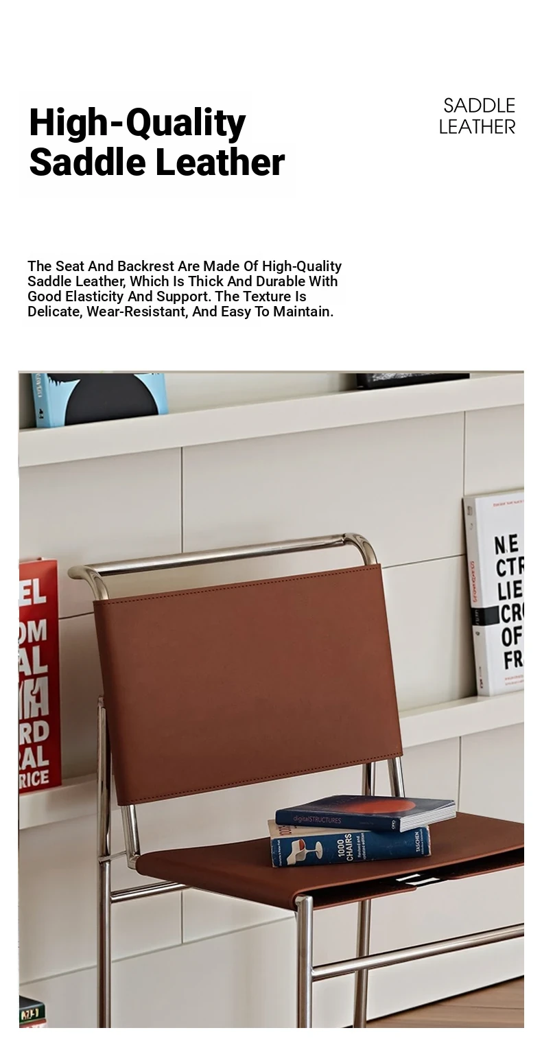 Italian Minimalist Bauhaus-Inspired Designer Saddle Leather Dining Chair - Luxurious Home Rockblen Armchair