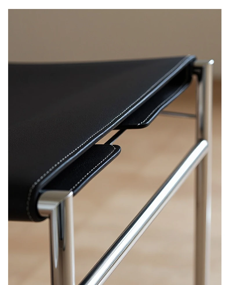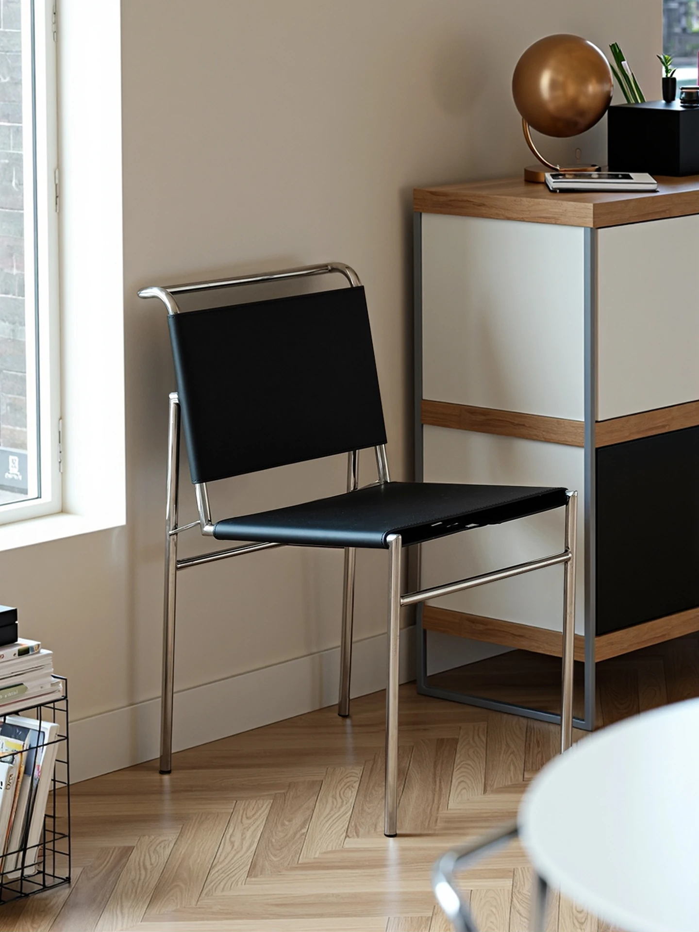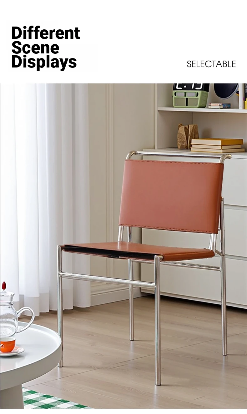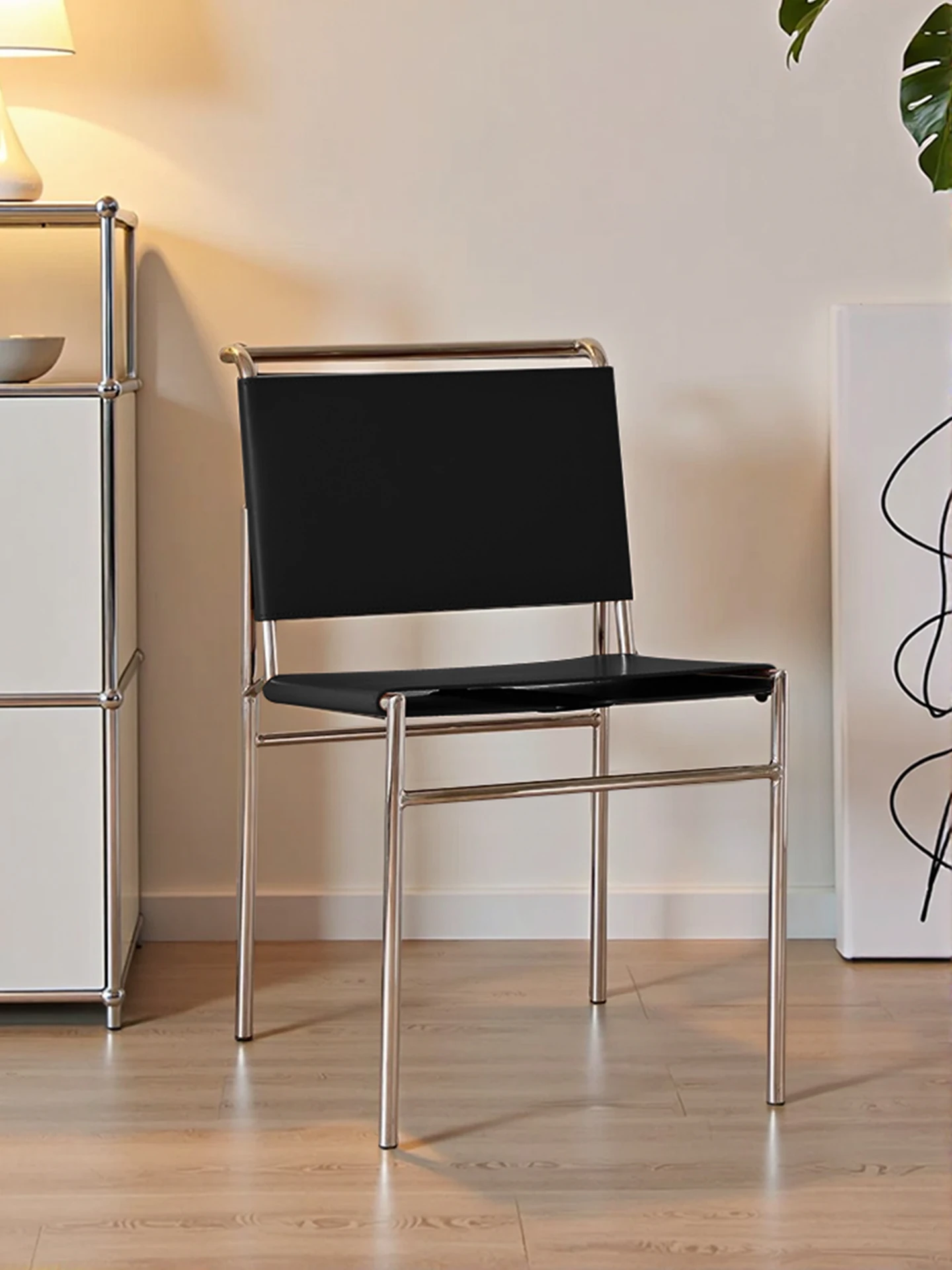 Italian Minimalist Bauhaus-Inspired Designer Saddle Leather Dining Chair - Luxurious Home Rockblen Armchair
