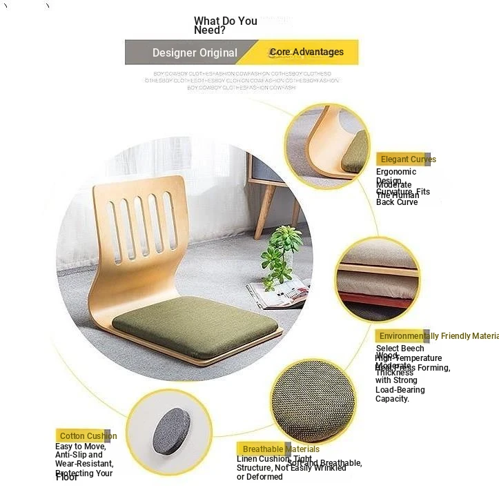 Japanese Tatami Lazy Chair with Backrest - Versatile Floor Cushion for Dorms, Nursing, and Relaxation - Legless Design for Ultimate Comfort in Any Room