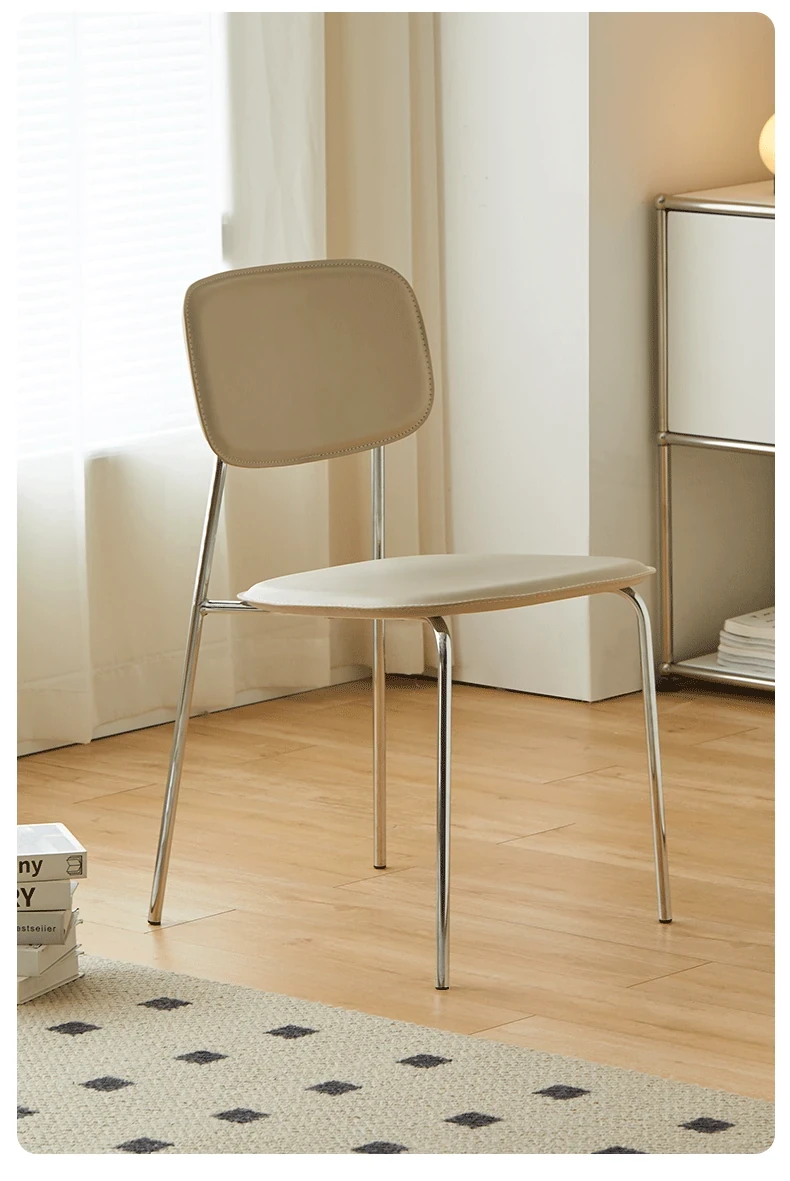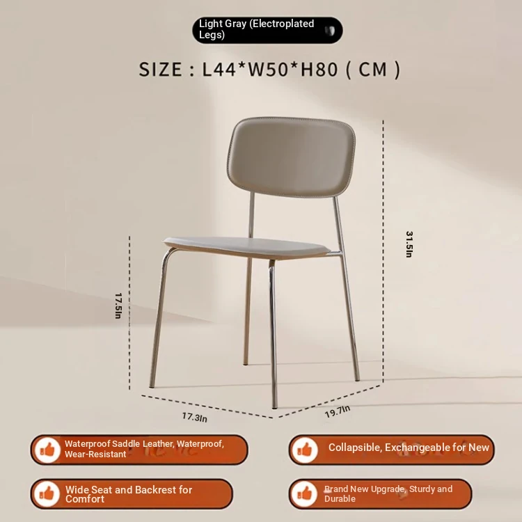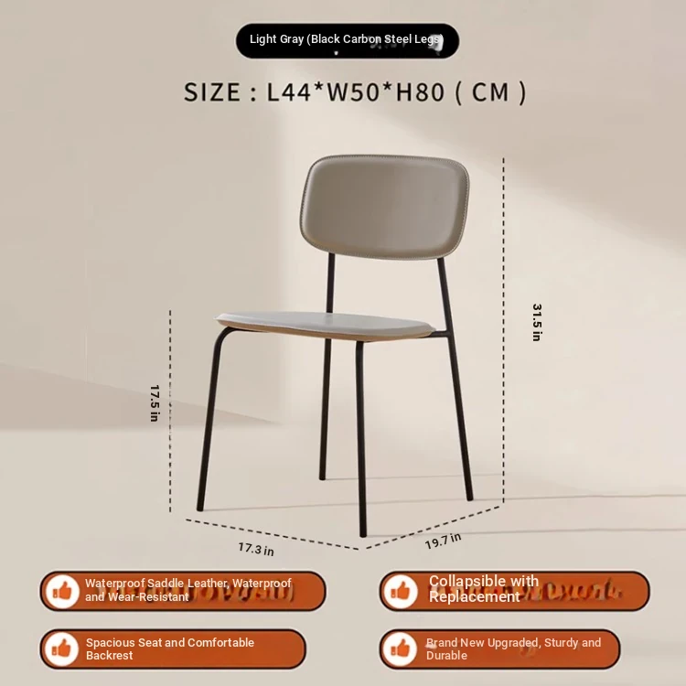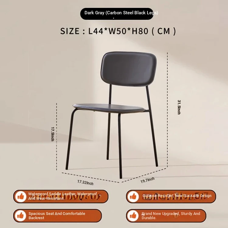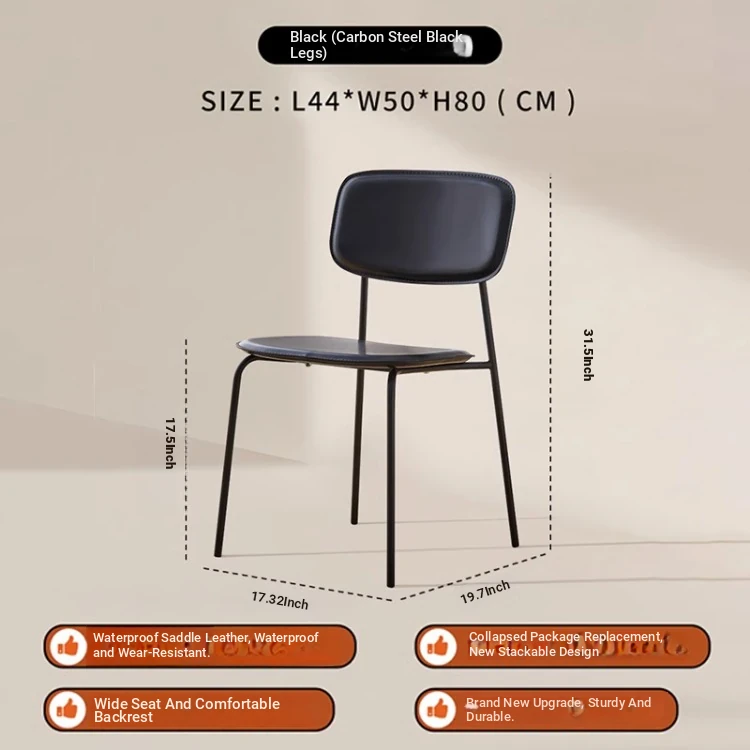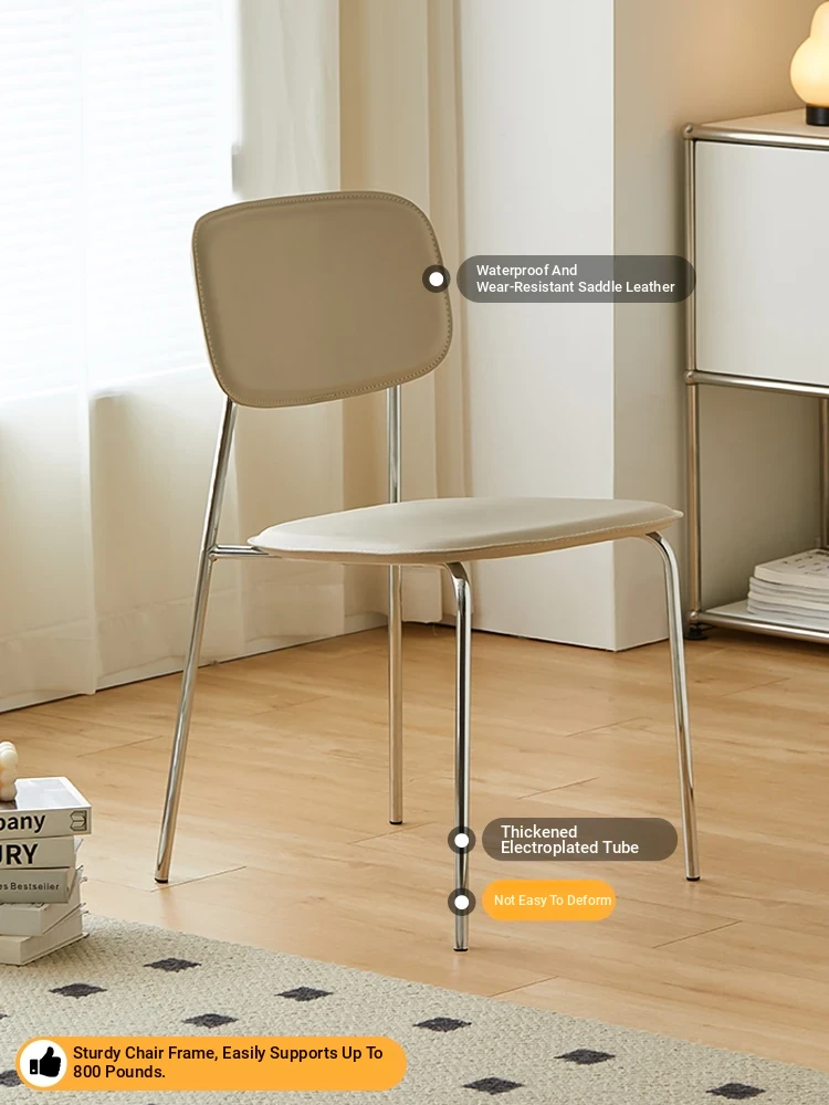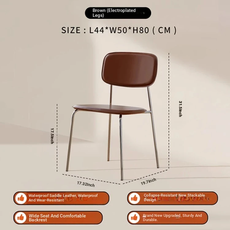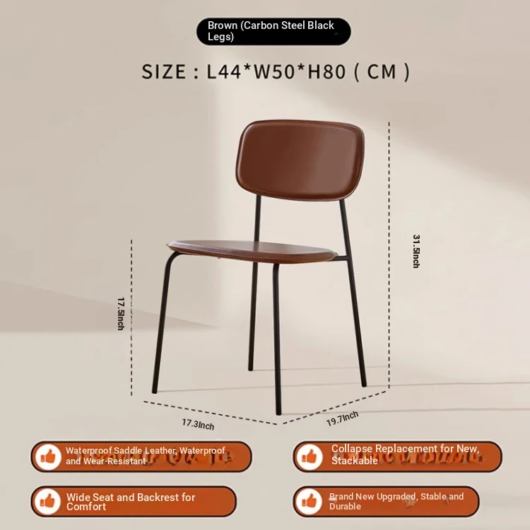 Modern Minimalist Dining Chair - Nordic Style Saddle Leather Chair, Trendy Light Luxury, Stackable Makeup and Desk Chair