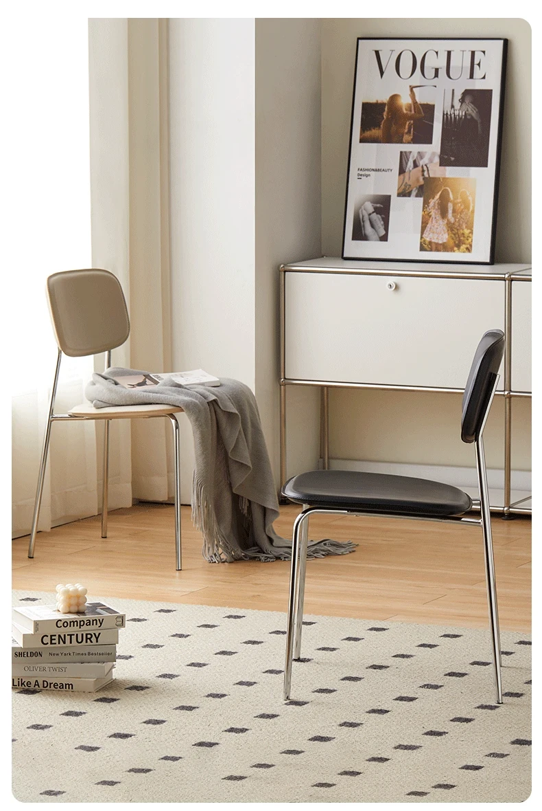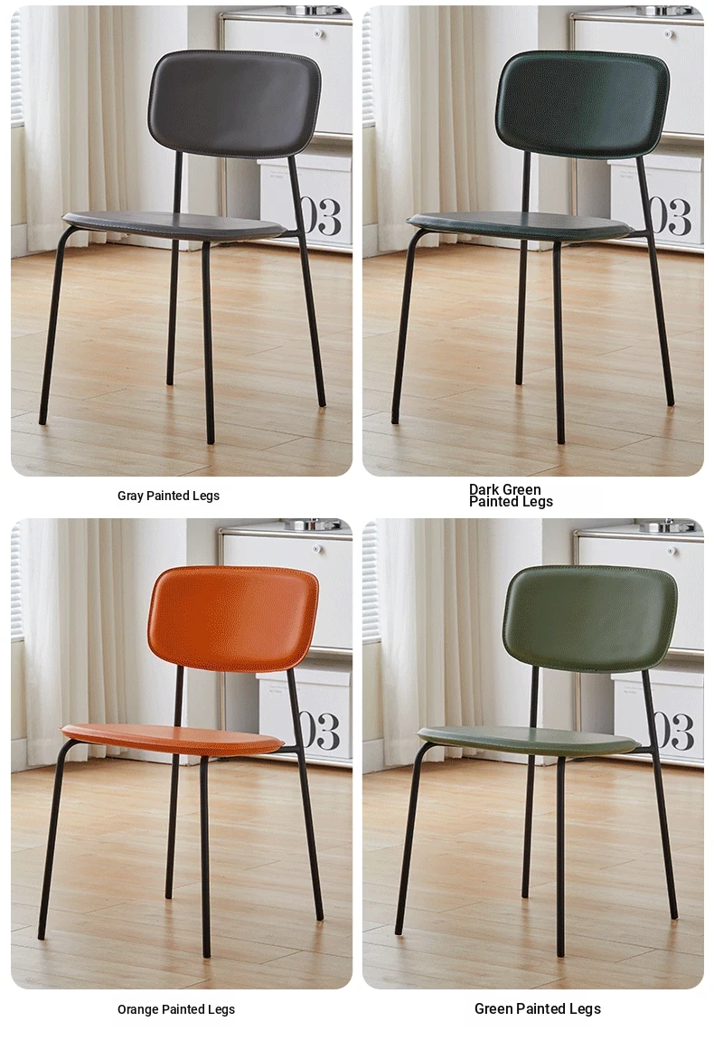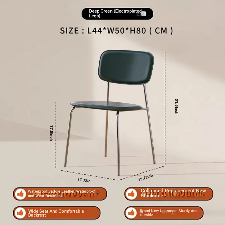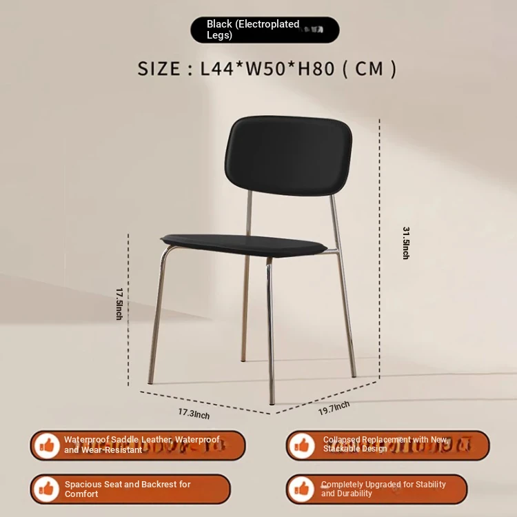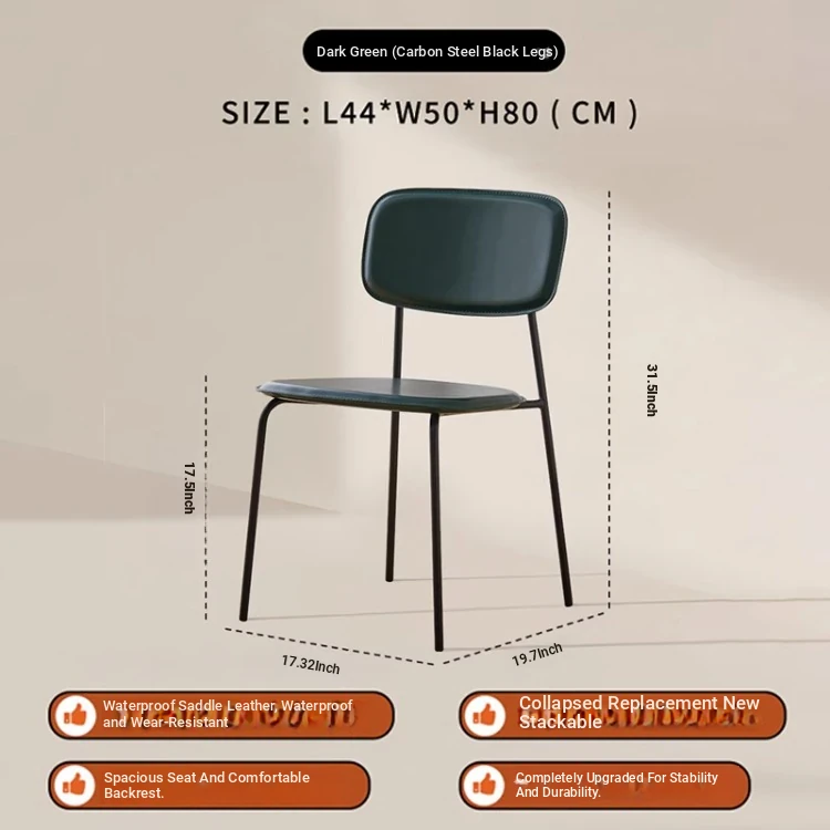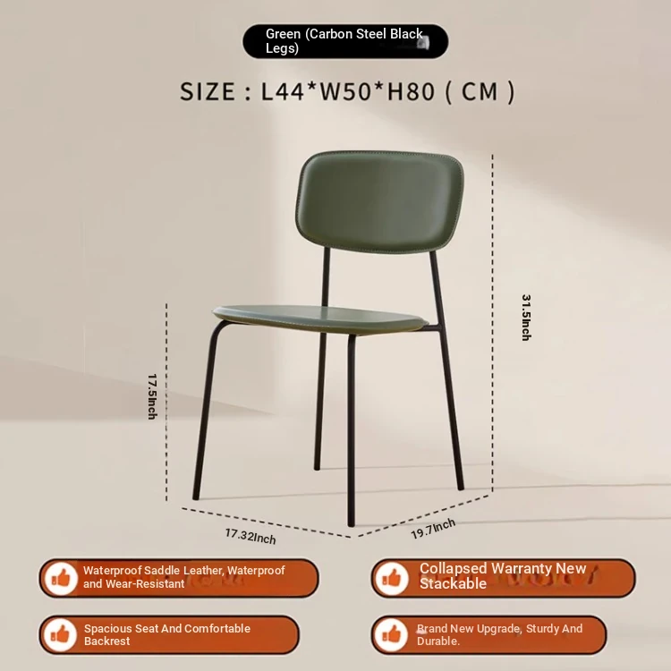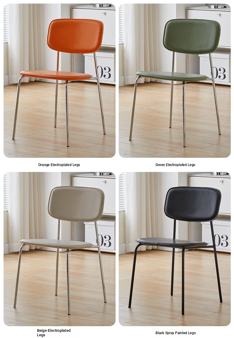 Modern Minimalist Dining Chair - Nordic Style Saddle Leather Chair, Trendy Light Luxury, Stackable Makeup and Desk Chair