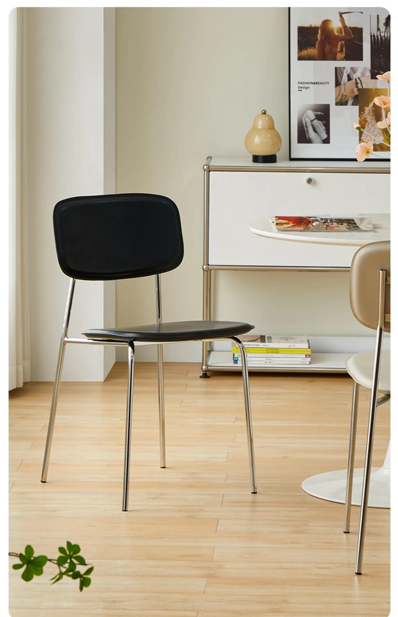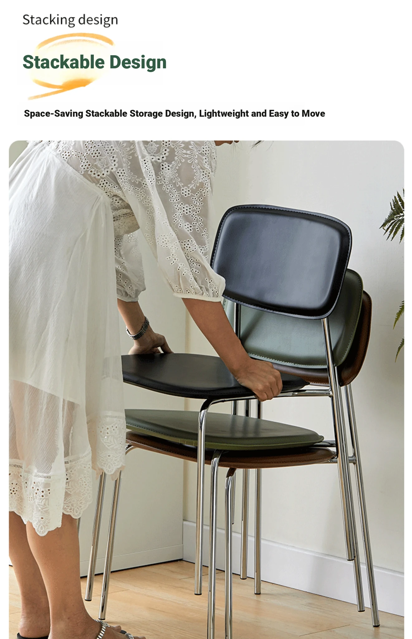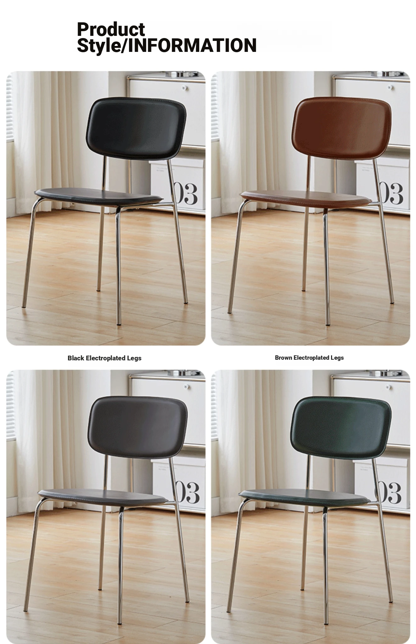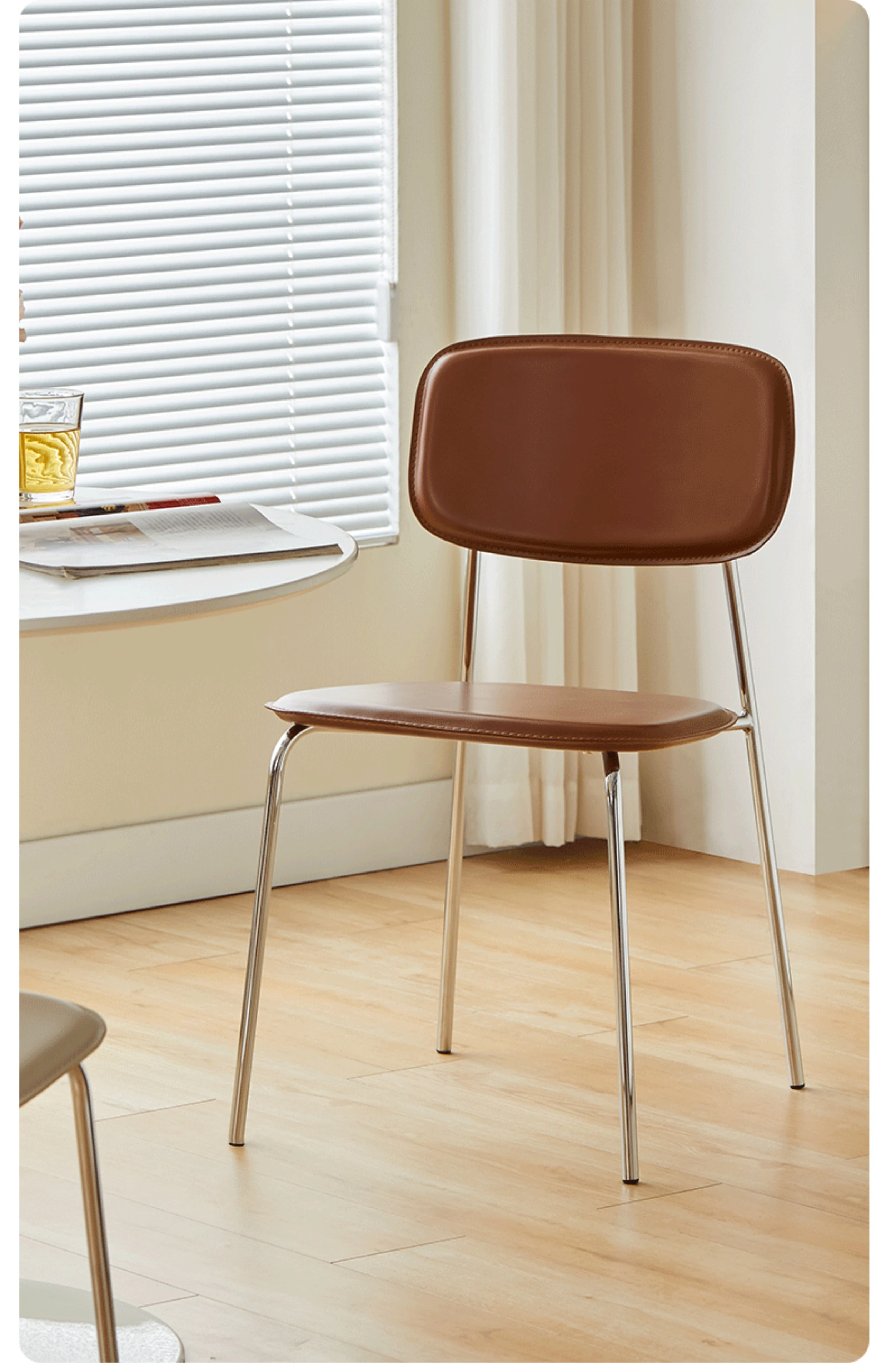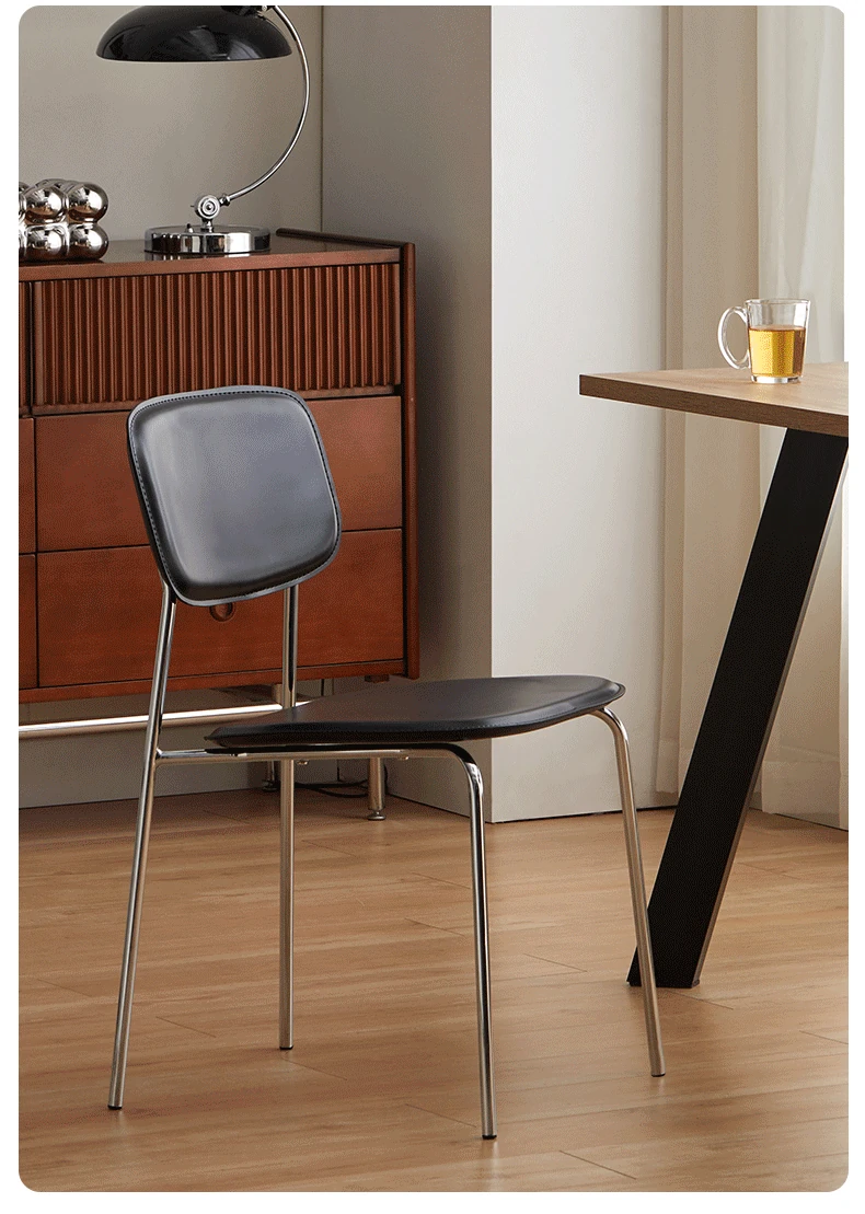 Modern Minimalist Dining Chair - Nordic Style Saddle Leather Chair, Trendy Light Luxury, Stackable Makeup and Desk Chair