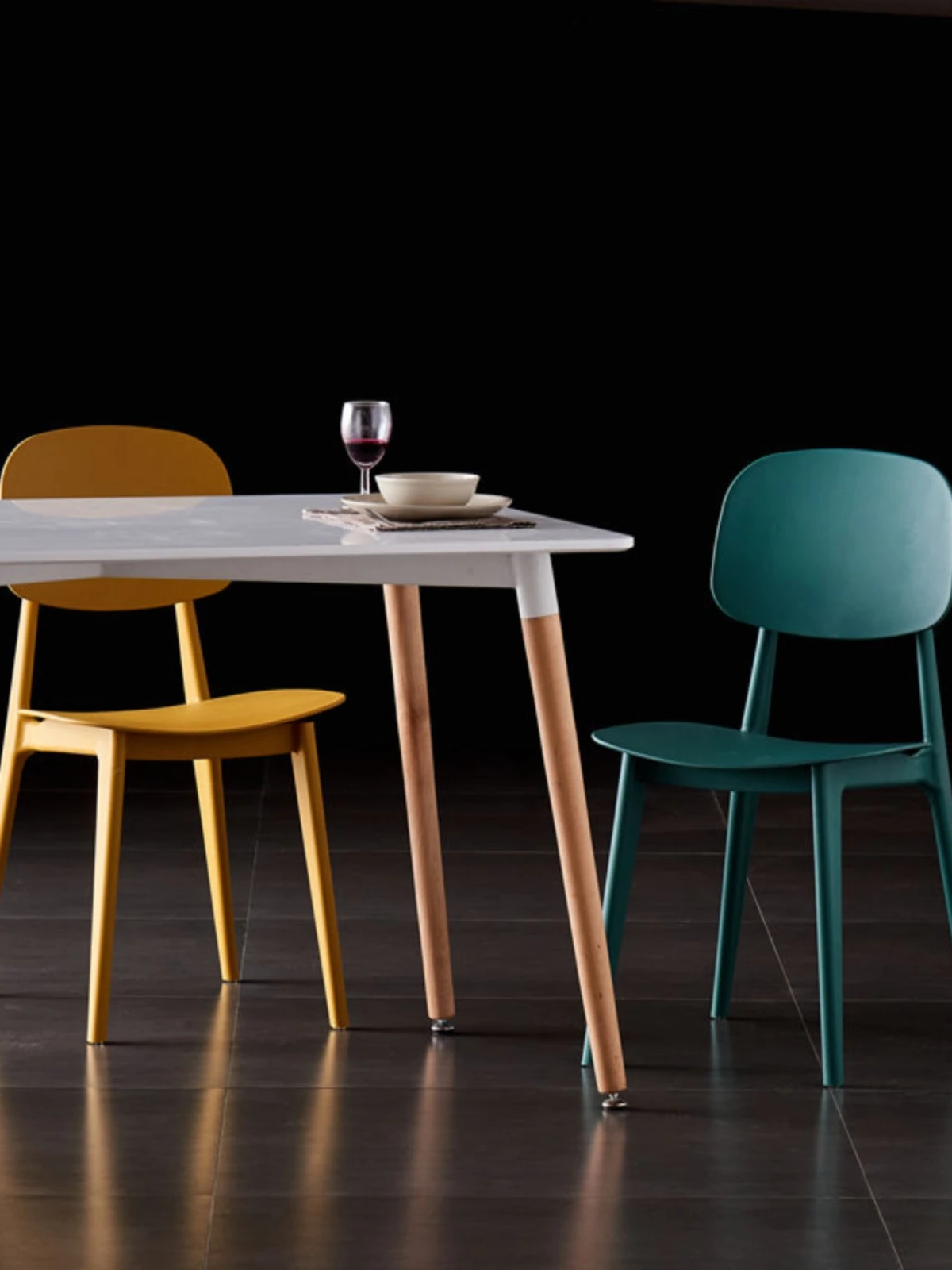 Modern Minimalist Dining Chair - Stylish Plastic Candy Chair, Macaron Restaurant Seating, Comfortable Lounge Chair for Casual Meetings and Dining Spaces.