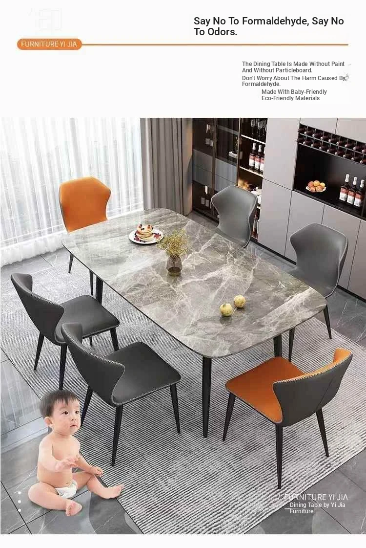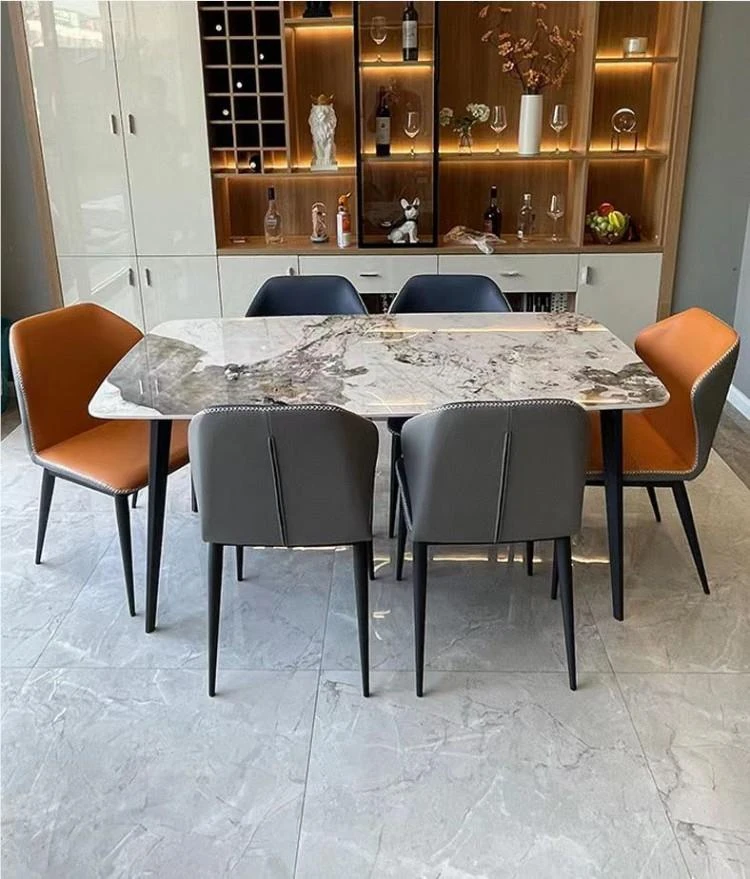 One table and six chairs (factory outlet)-Horse belly type/180*90 (Italian gray bright noodles)