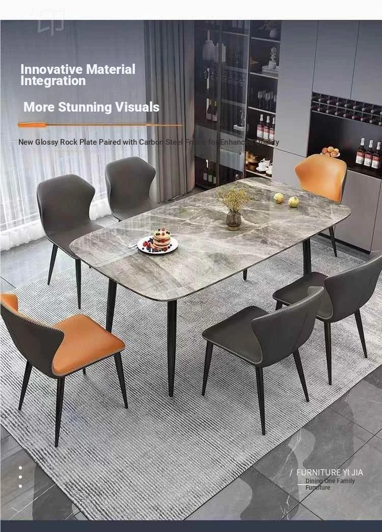 Modern Minimalist Glossy Stone Dining Table and Chair Set - Small Space Friendly, Nordic Luxury Design, Imported Italian Style