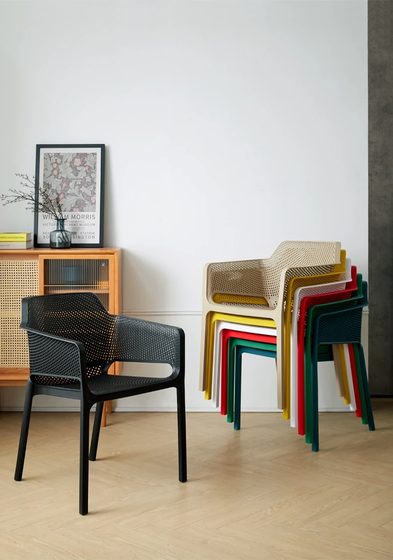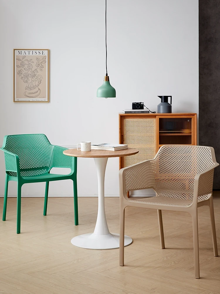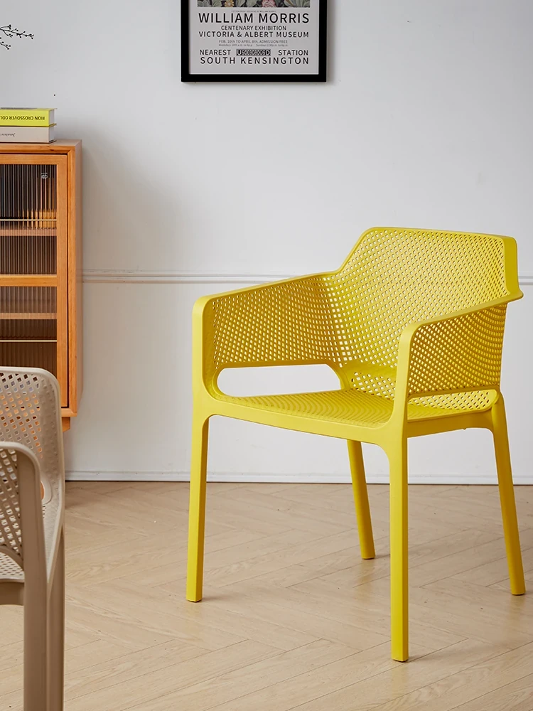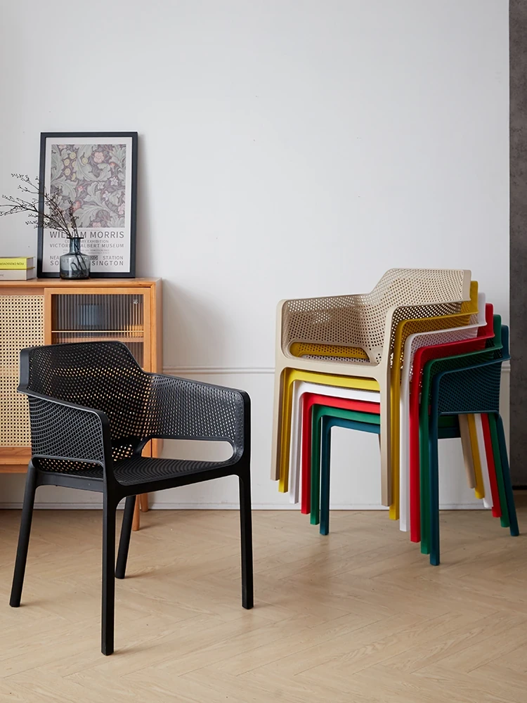 Modern Minimalist Stackable Lounge Chair with Armrests - Thickened Outdoor Dining Chair for Balcony and Home Use, Perfect for Relaxation and Style