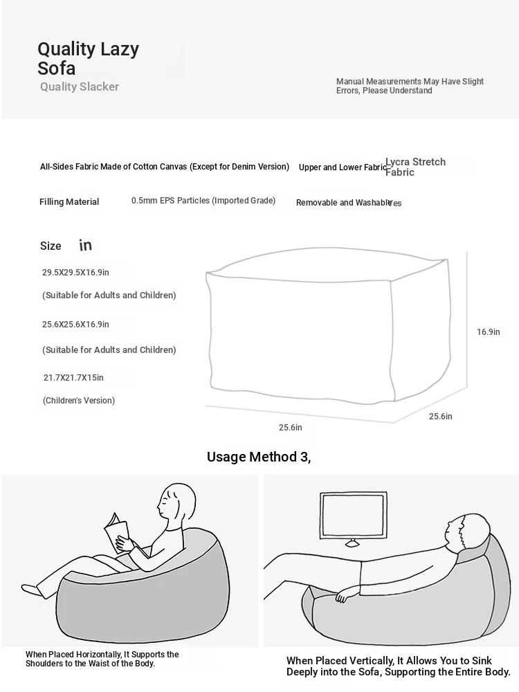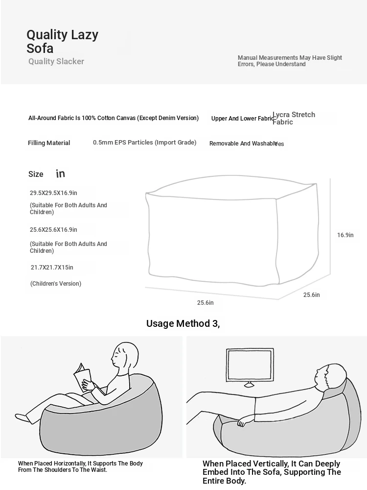 Muji-Inspired Japanese Minimalist Lazy Sofa - Single Tatami Bean Bag for Kids, Washable, Perfect for INS Aesthetic Décor