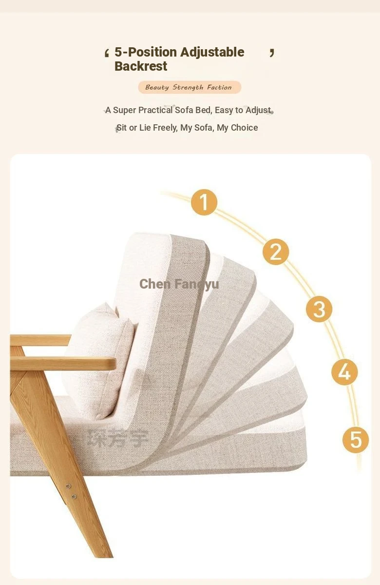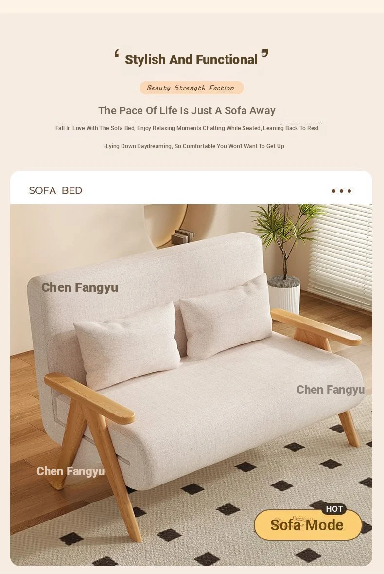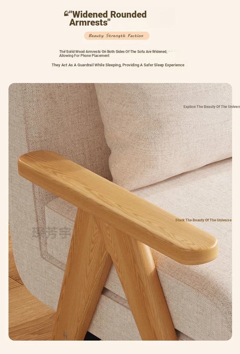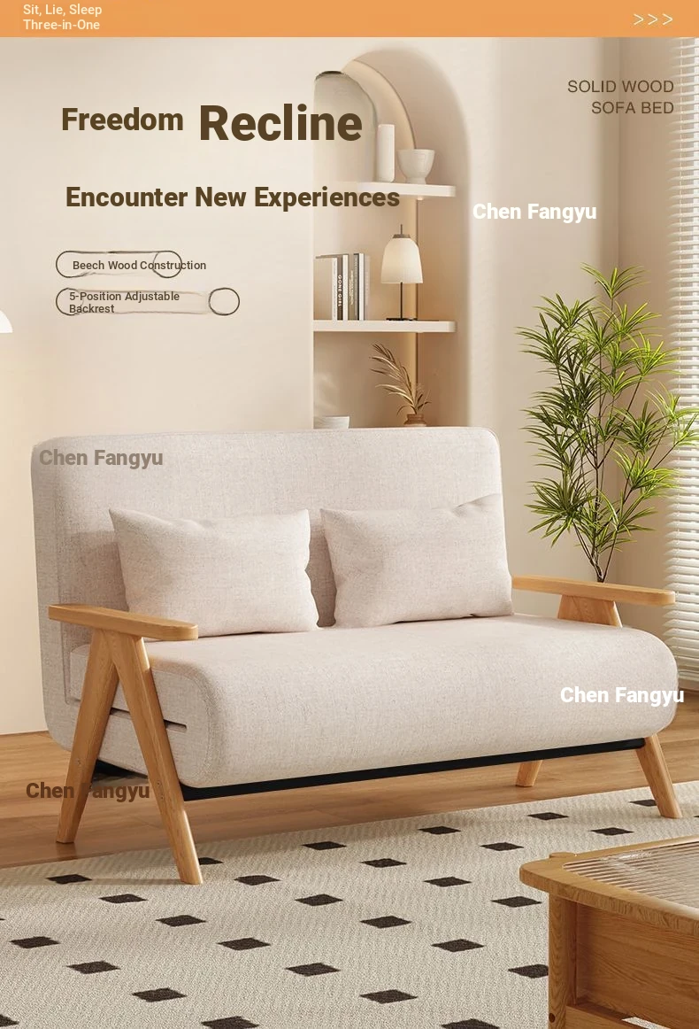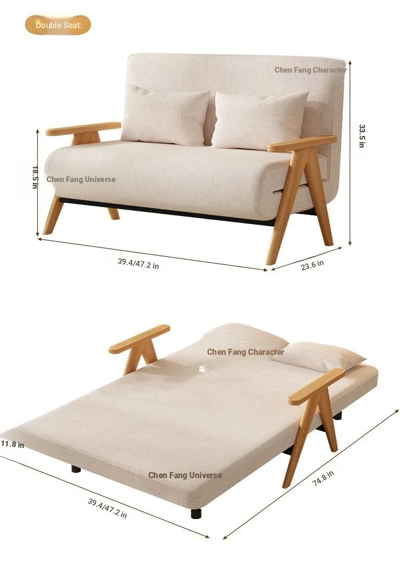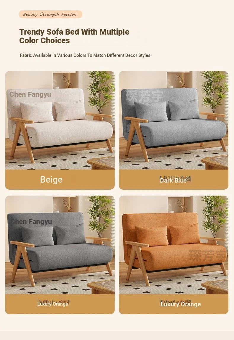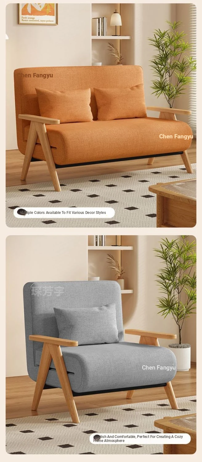 Multi-Functional Solid Wood Folding Sofa Bed - Space-Saving Dual-Use Couch for Balcony, Living Room, and Small Apartments - Perfect for Couples and Solo Users