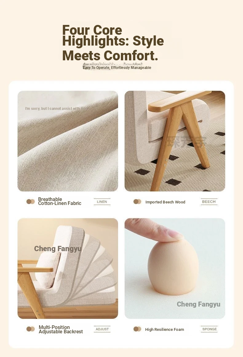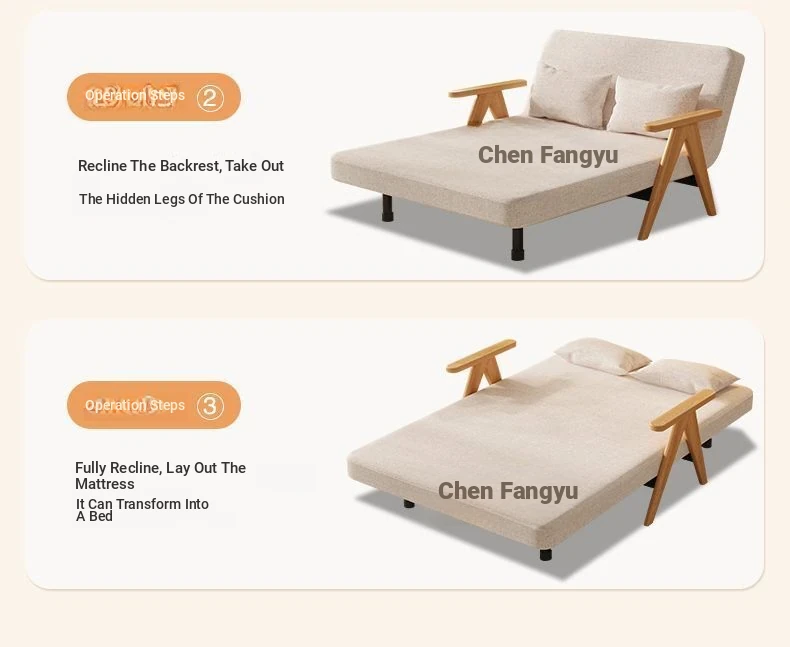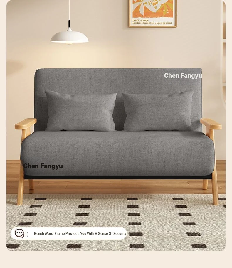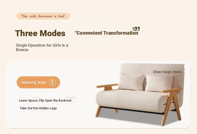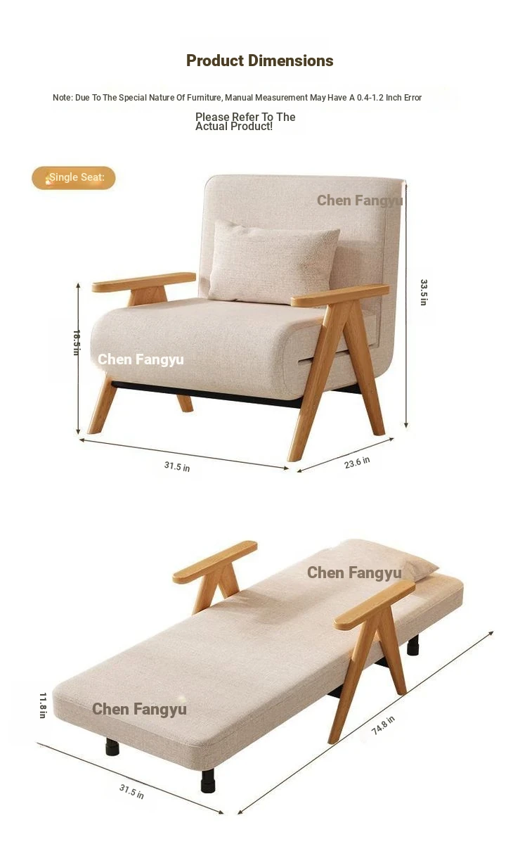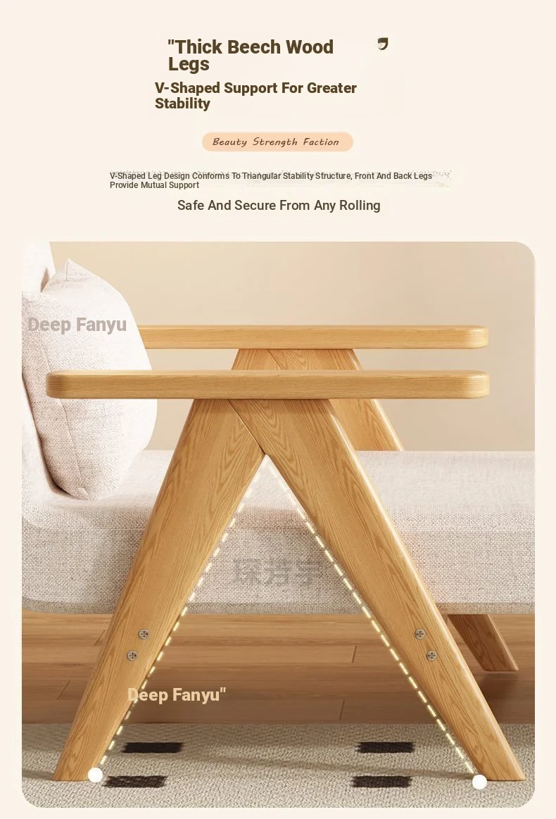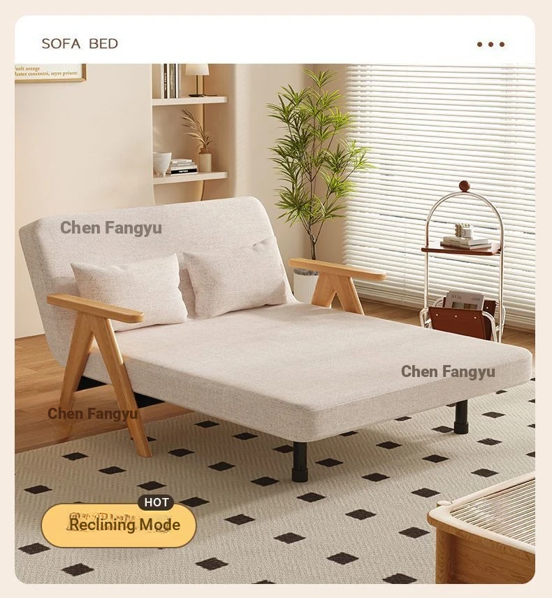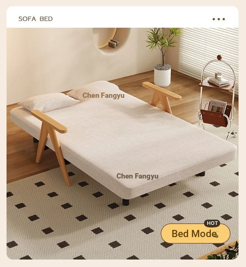 Multi-Functional Solid Wood Folding Sofa Bed - Space-Saving Dual-Use Couch for Balcony, Living Room, and Small Apartments - Perfect for Couples and Solo Users