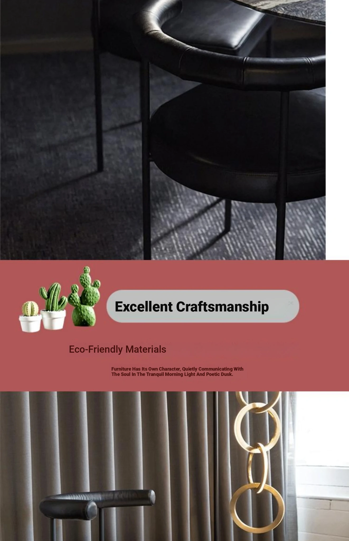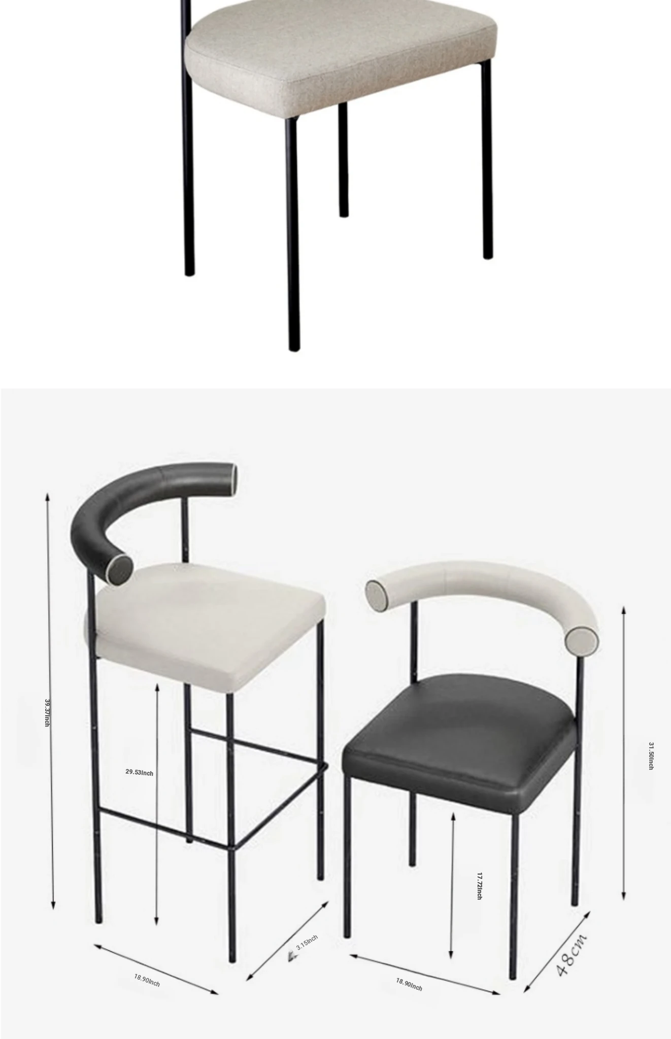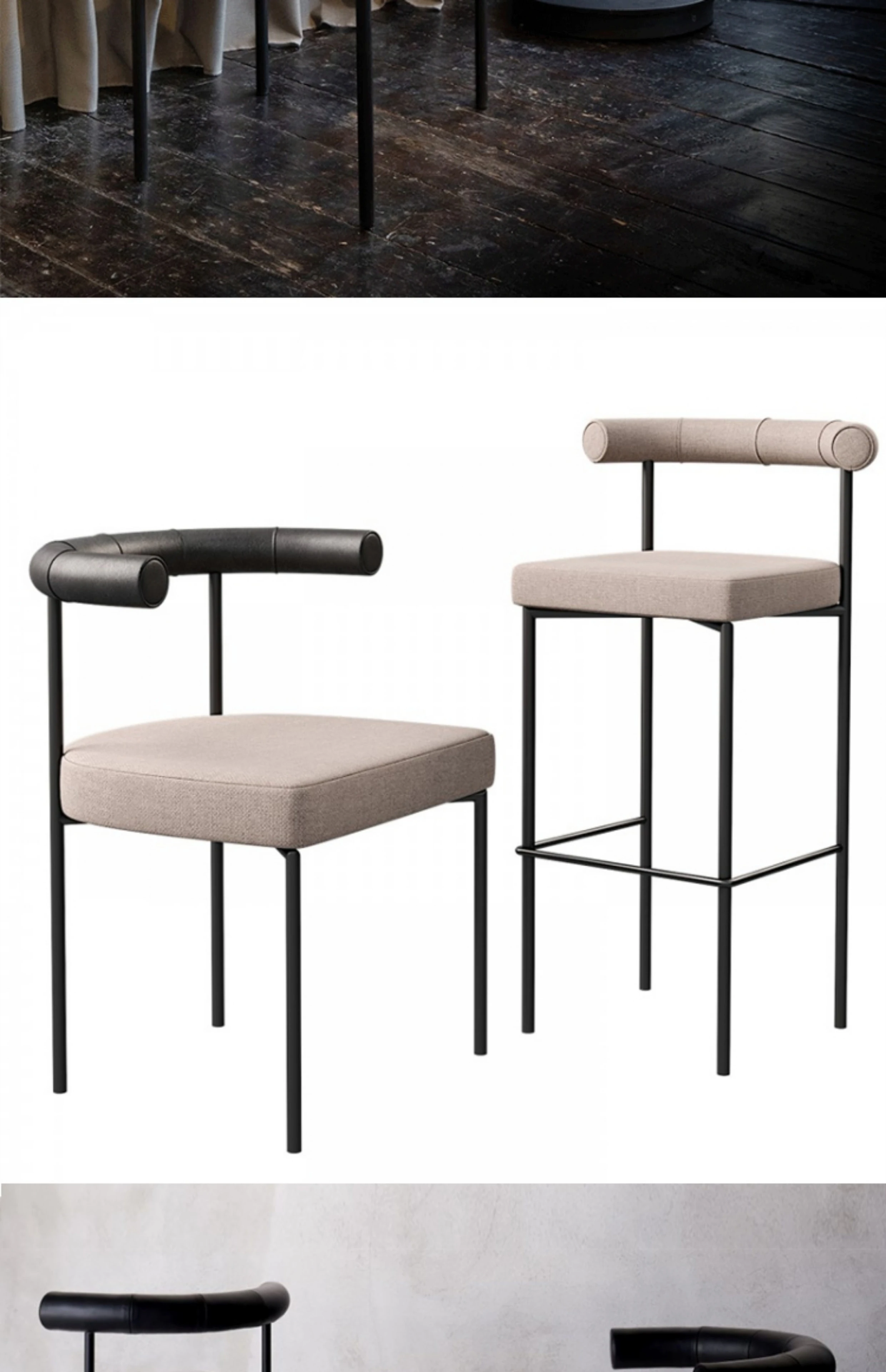 Black leather backrest + beige flannel cushion