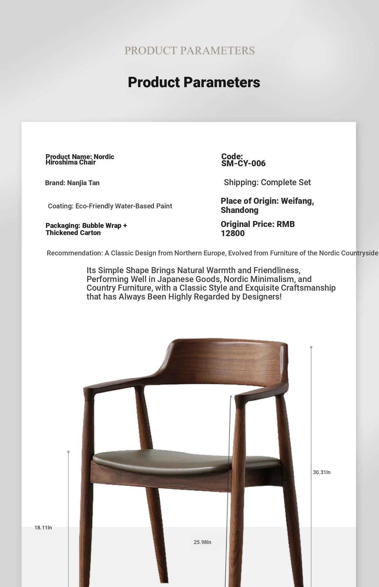 Nordic Solid Wood Dining Chair - Kennedy Presidential Chair, Hiroshima Chair, Ideal for Coffee Shops, Restaurants, and Meeting Rooms - Minimalist Design with Comfortable Backrest