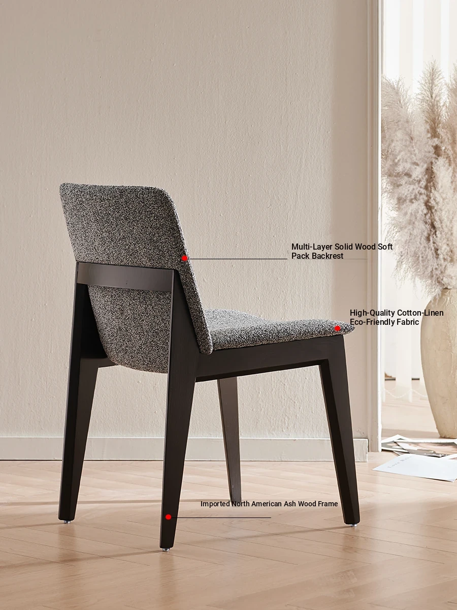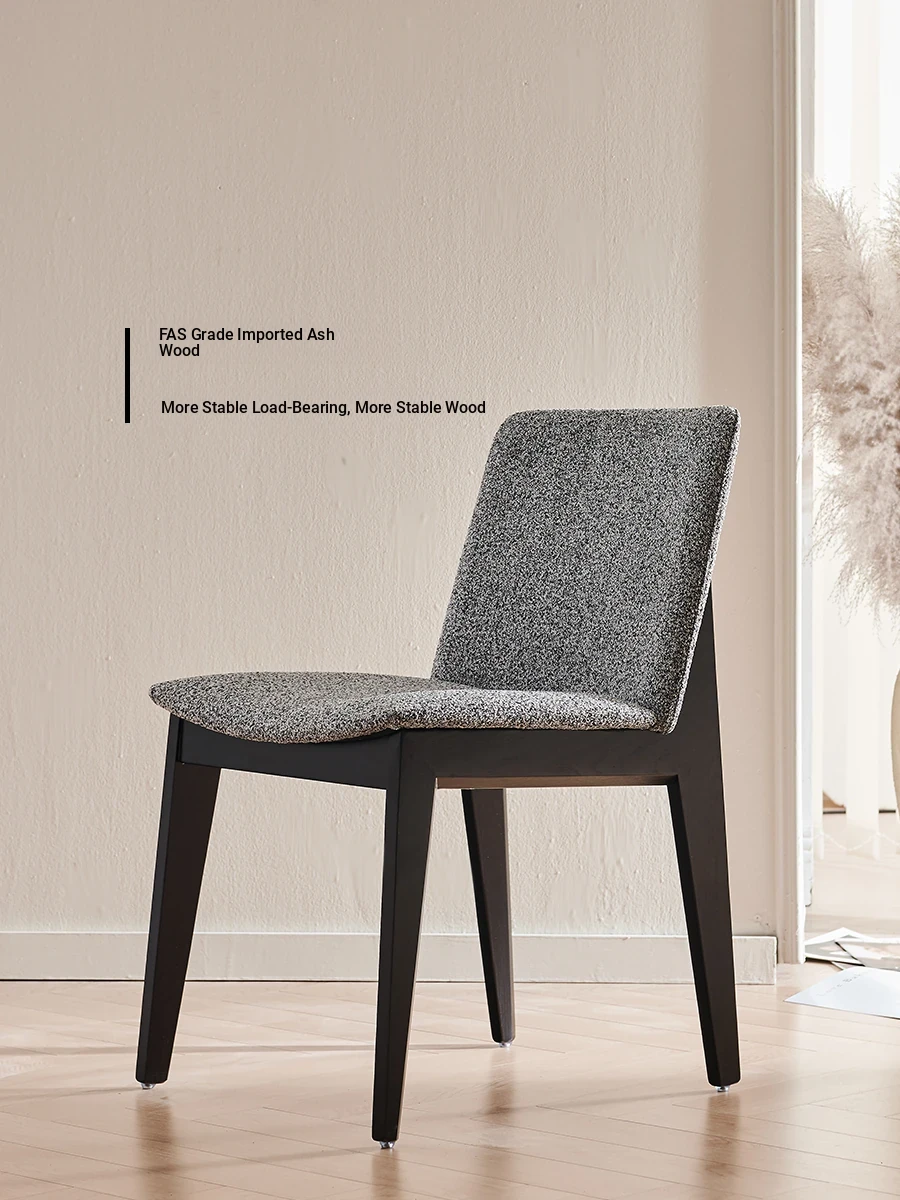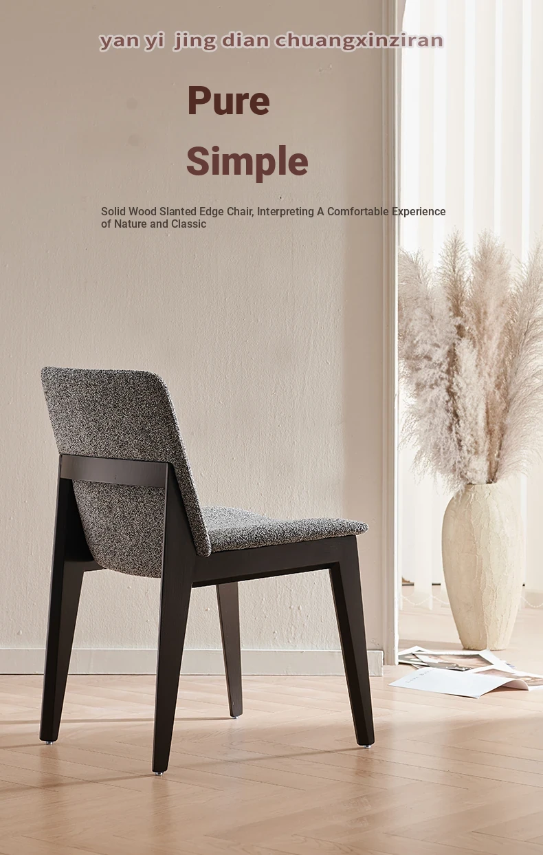 Nordic Solid Wood Dining Chair - Minimalist Cotton Linen Upholstered Stool for Home, Designer Sample Room Seating, Perfect for Cafés and Hotels