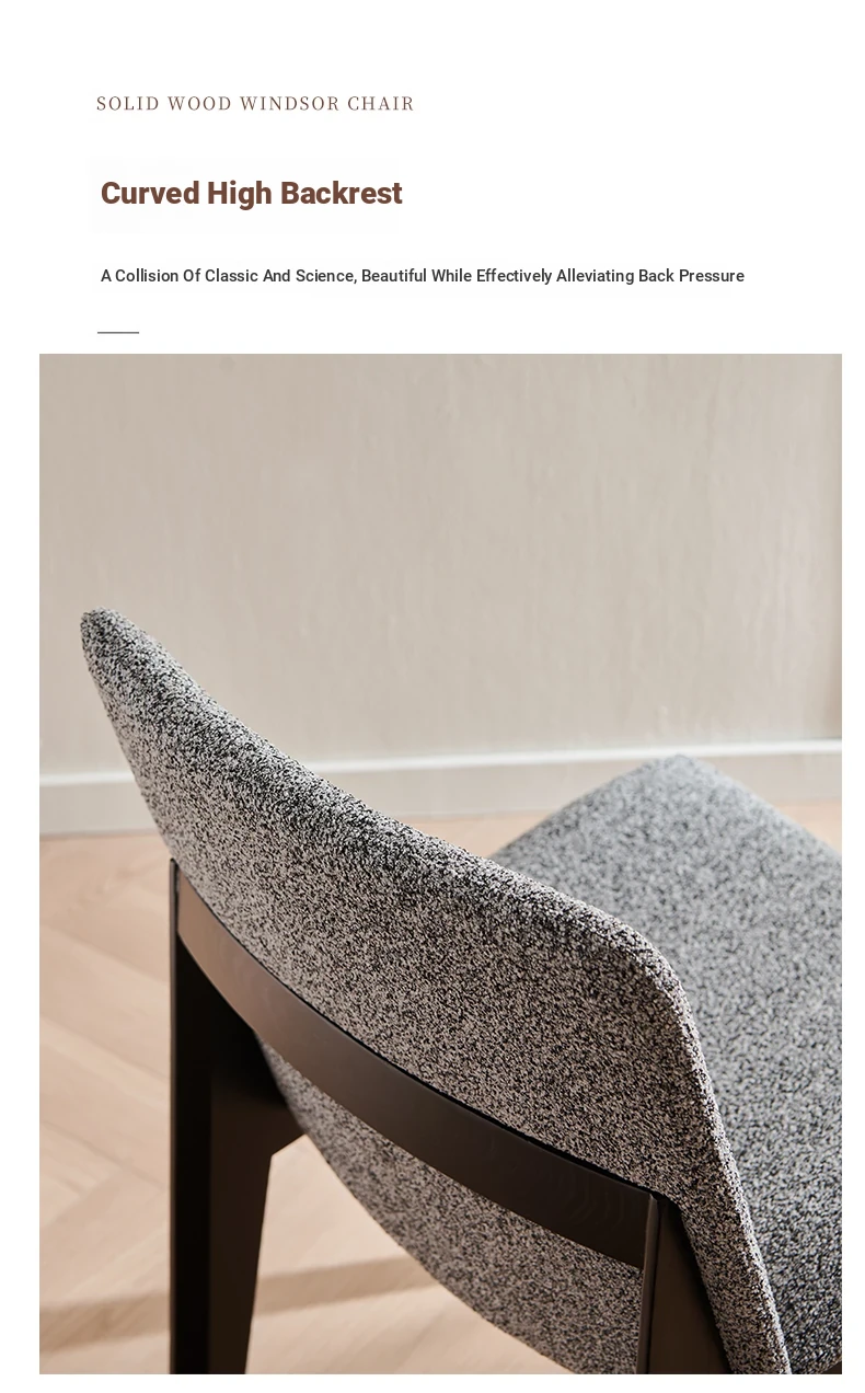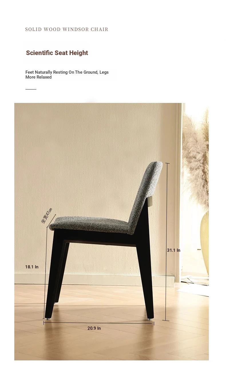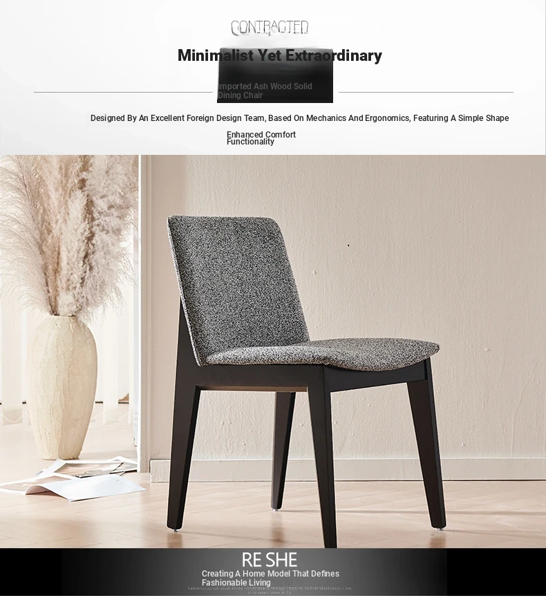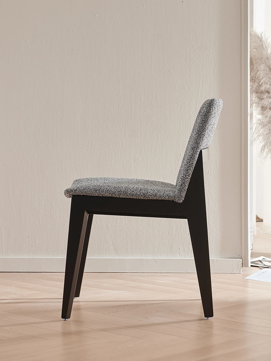 Nordic Solid Wood Dining Chair - Minimalist Cotton Linen Upholstered Stool for Home, Designer Sample Room Seating, Perfect for Cafés and Hotels