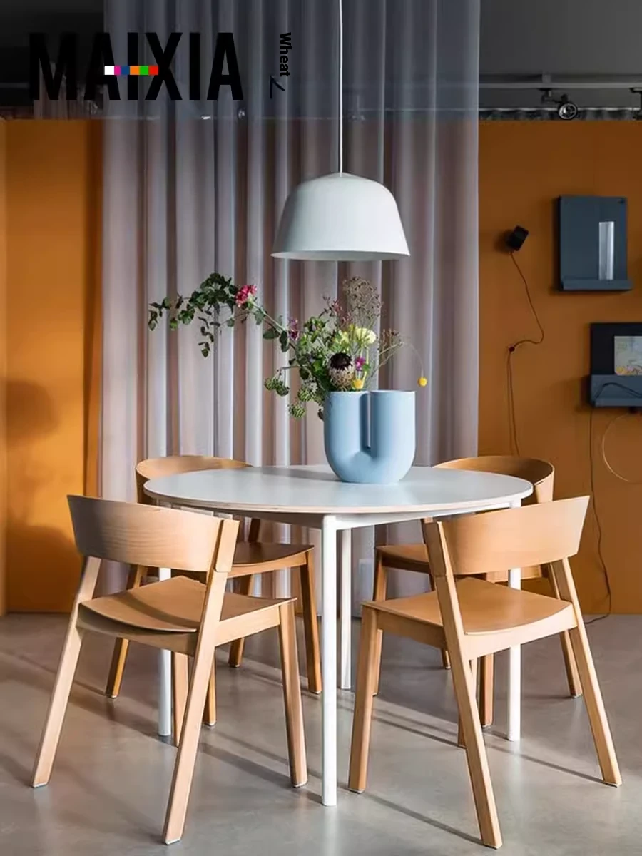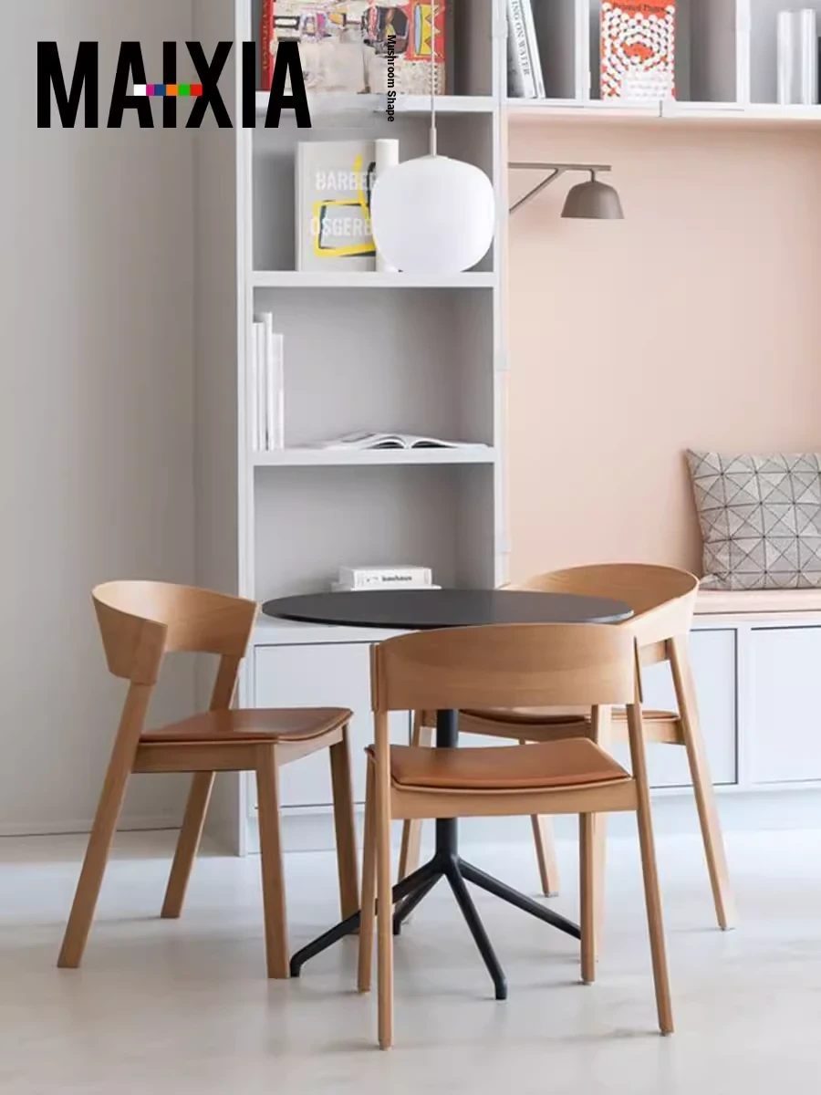 Nordic Solid Wood Dining Chair - Stylish Backrest Chair for Cafés and Tea Shops, Designed by Danish Designers, Minimalist Creative Guest Chair in Natural Wood Finish
