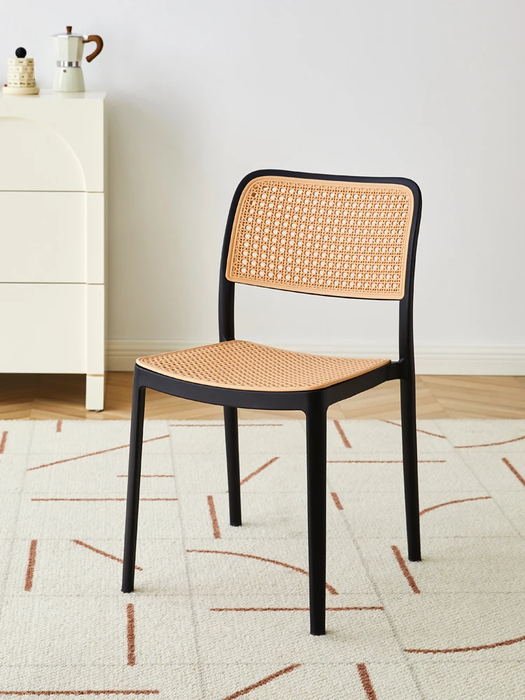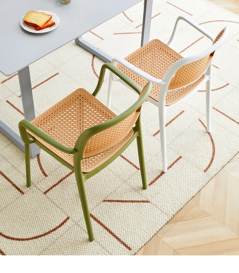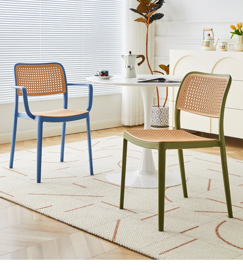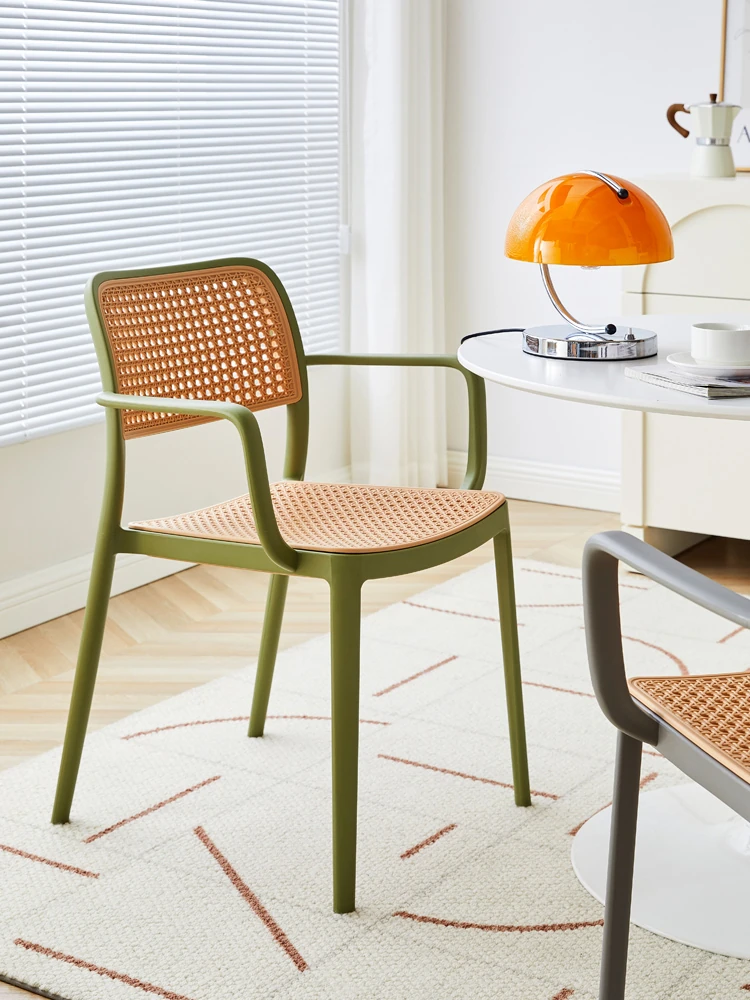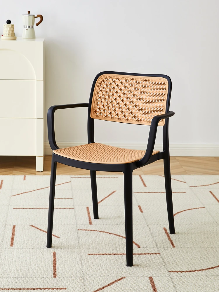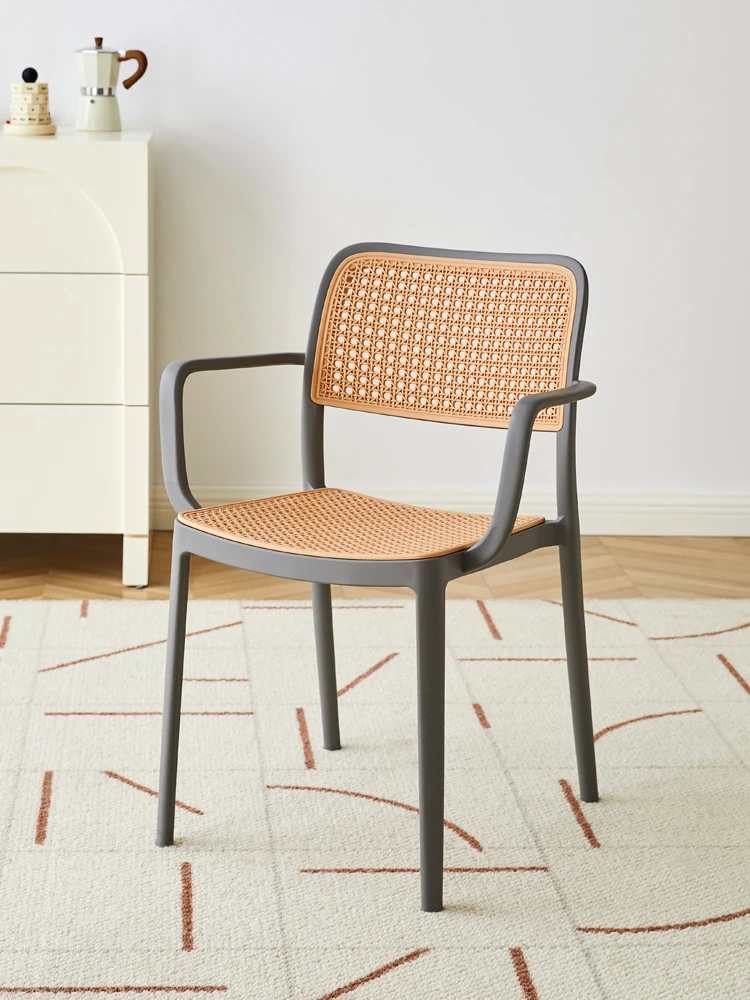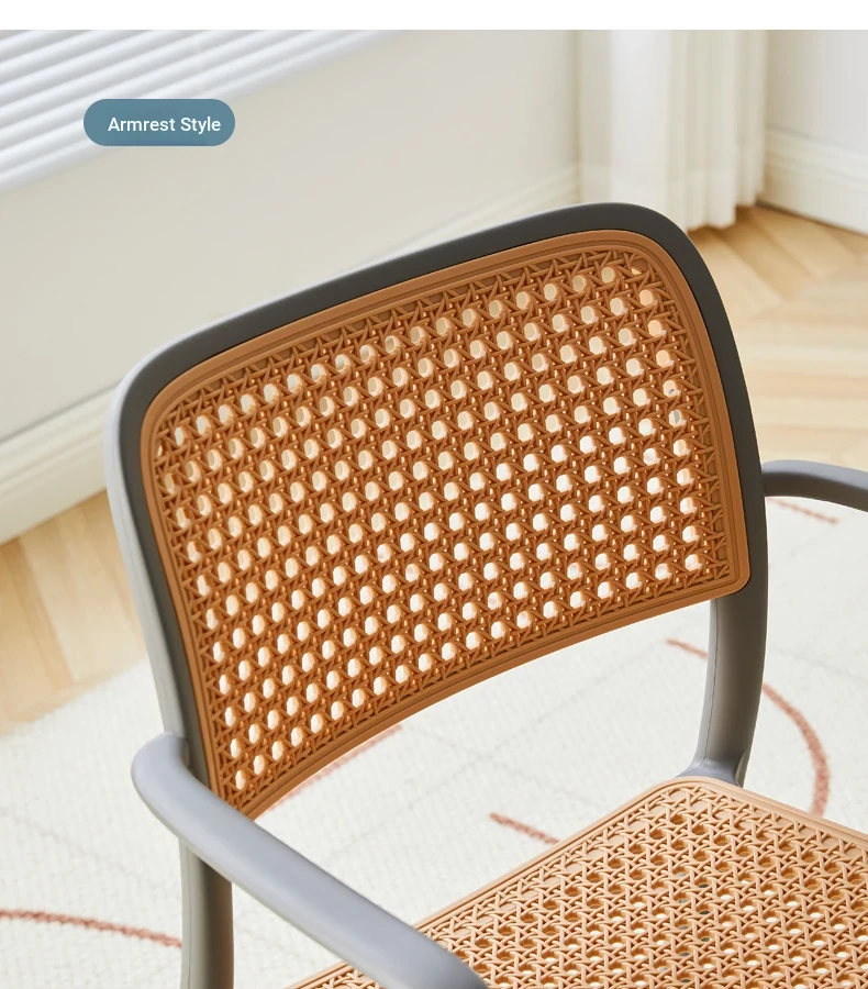 Nordic Style Dining Chair - Trendy Plastic Rattan Armchair for Modern Minimalist Homes, Perfect for Small Spaces, Comfortable Backrest Dining Seat