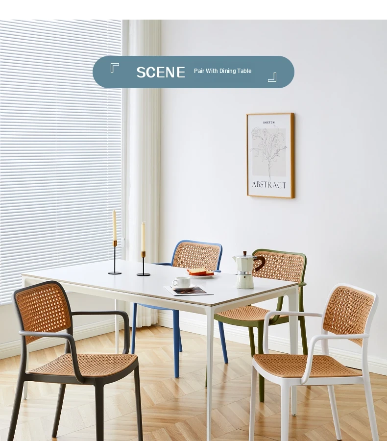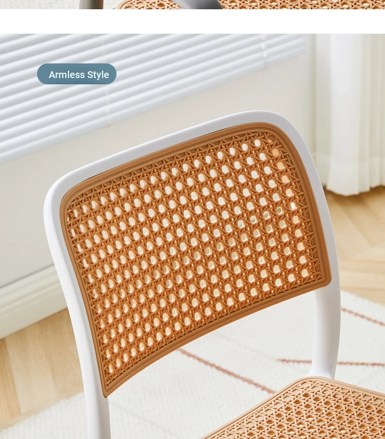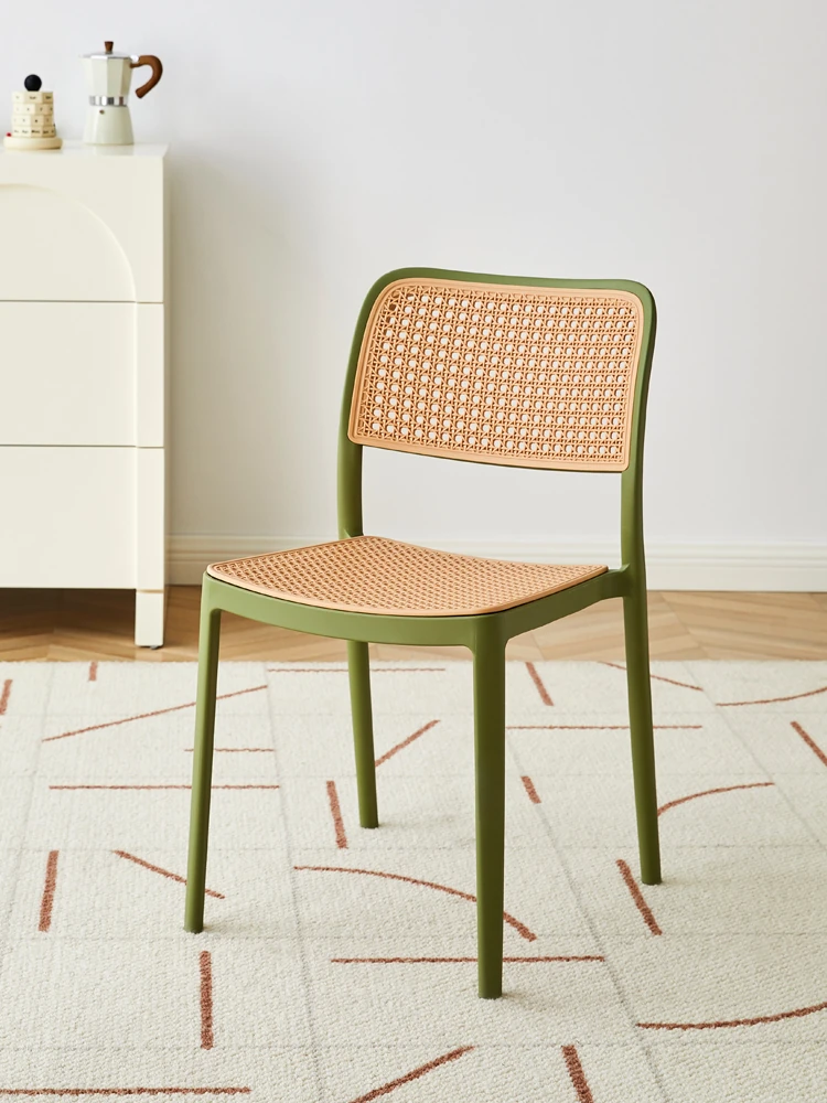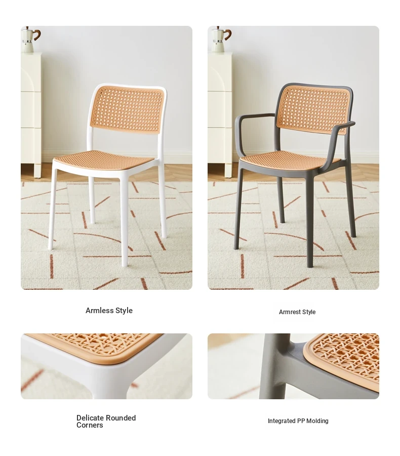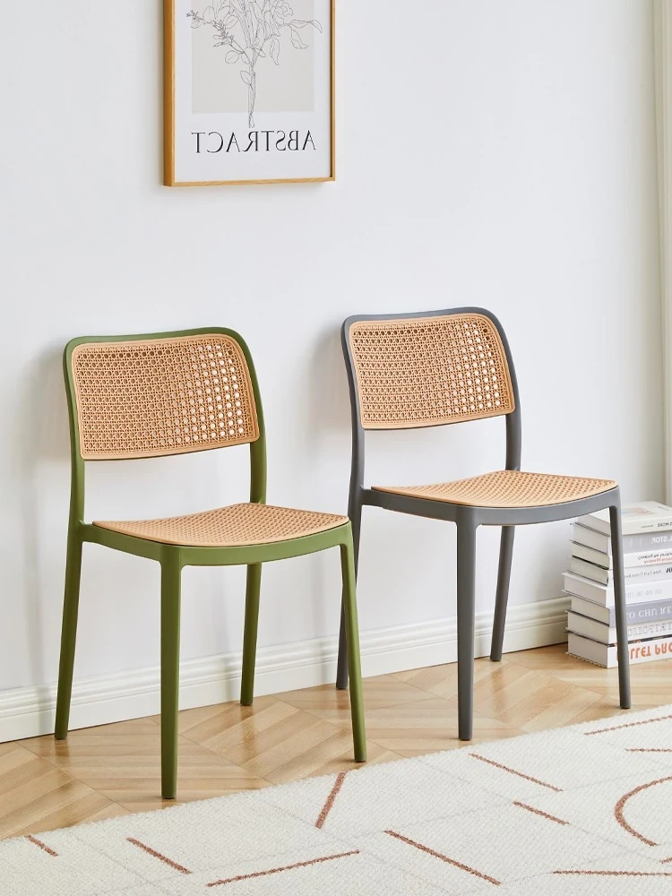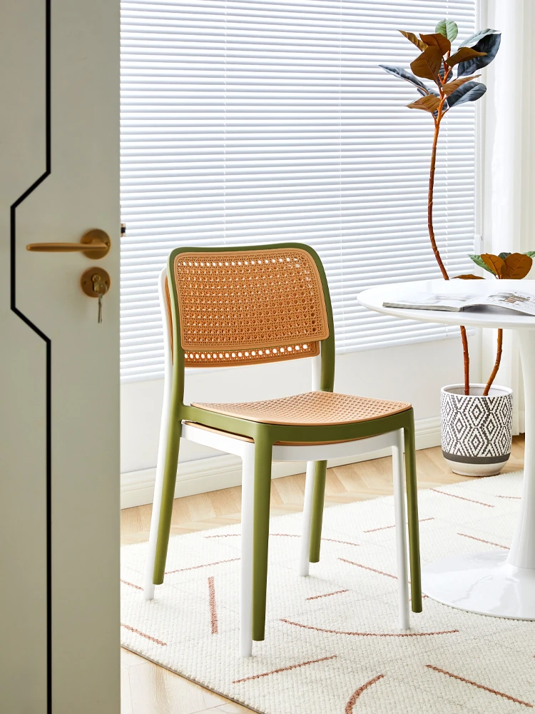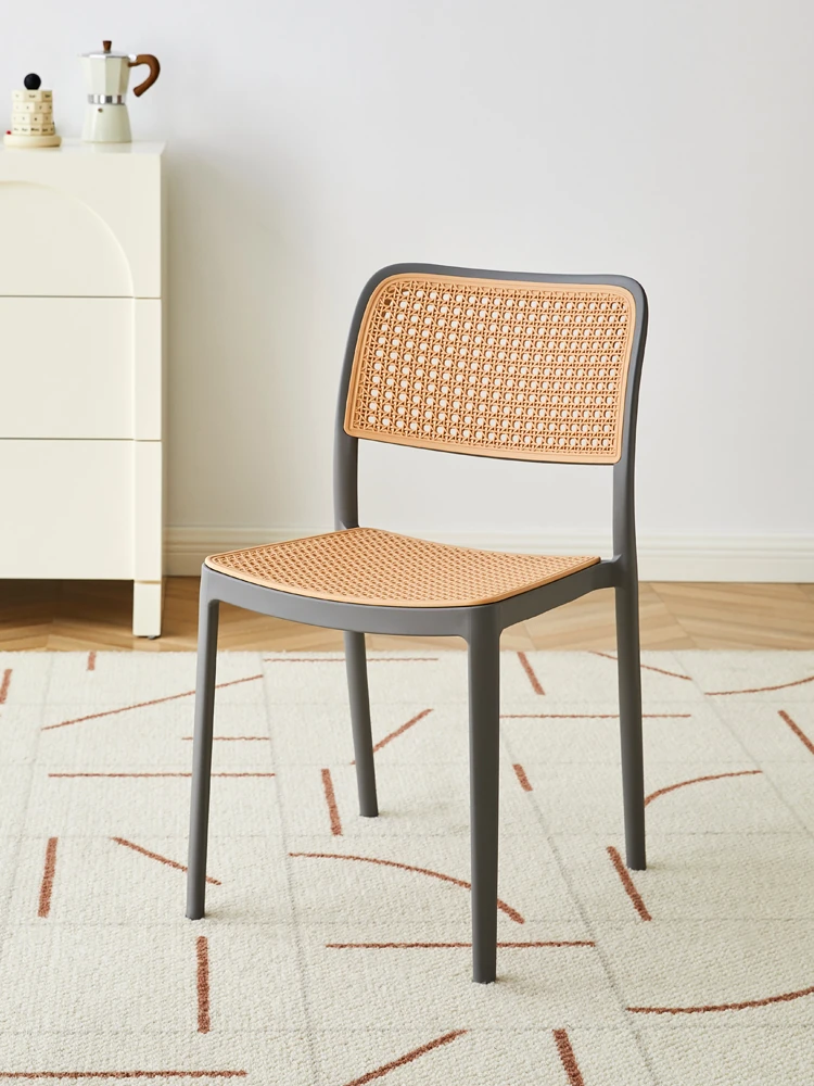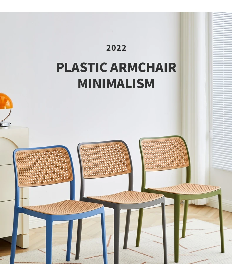 Nordic Style Dining Chair - Trendy Plastic Rattan Armchair for Modern Minimalist Homes, Perfect for Small Spaces, Comfortable Backrest Dining Seat