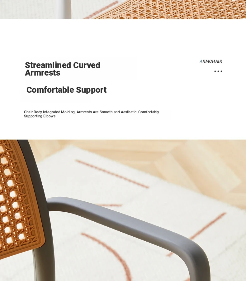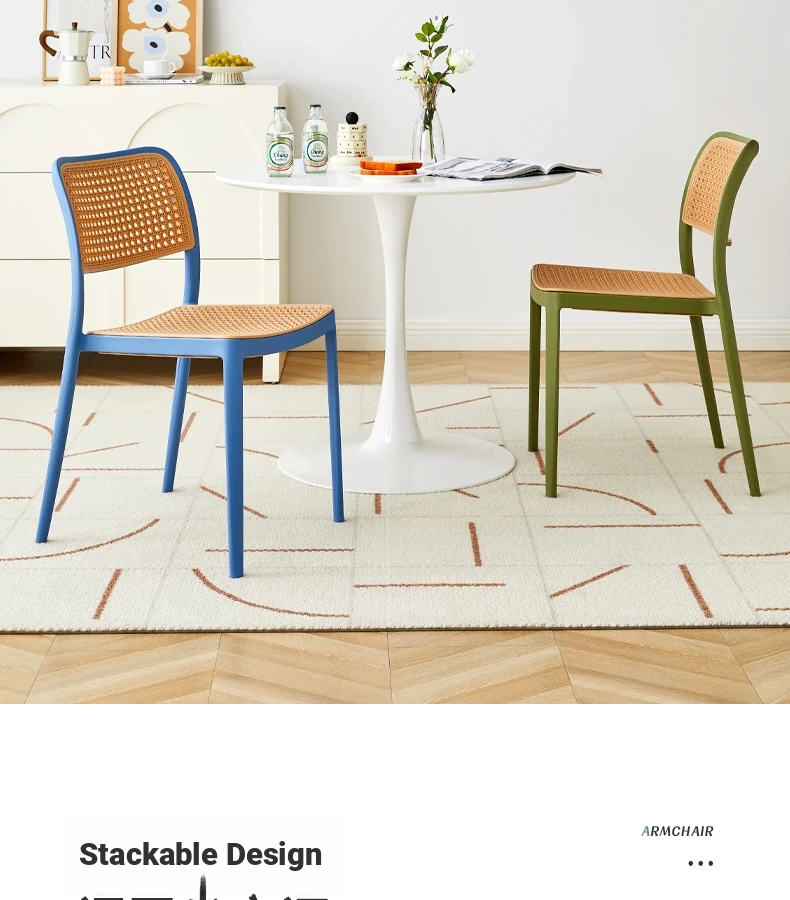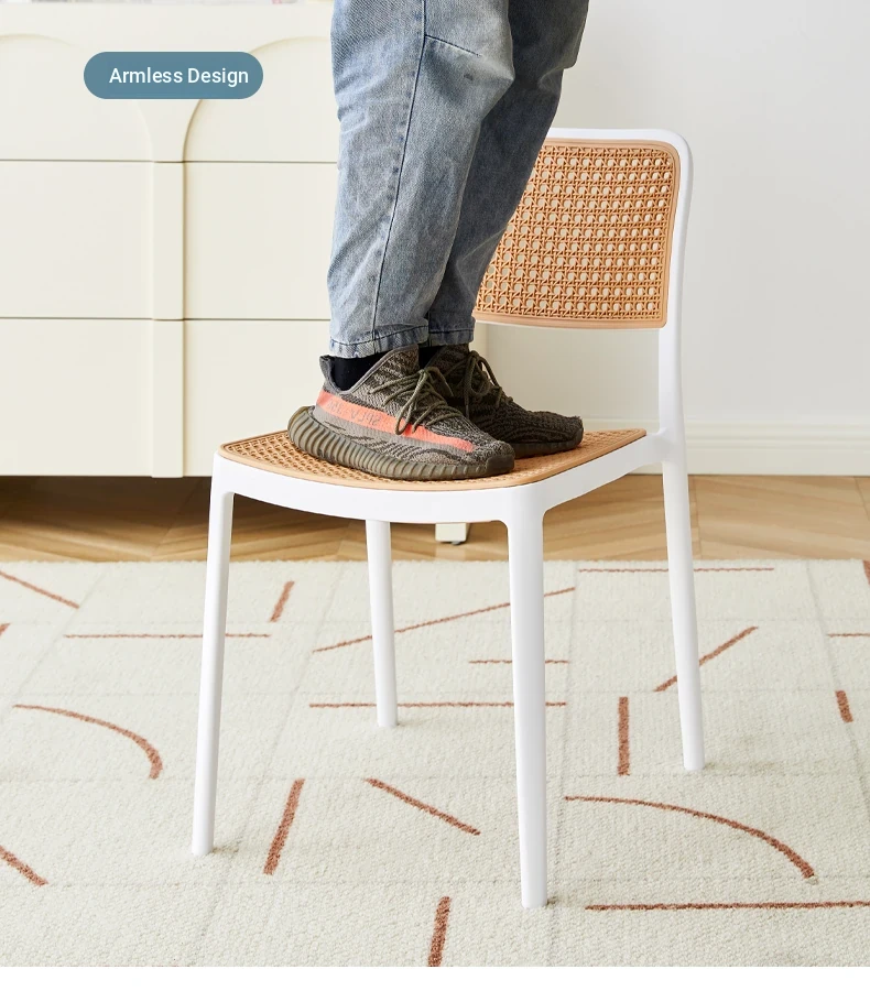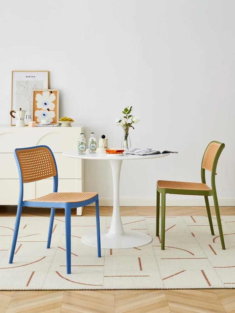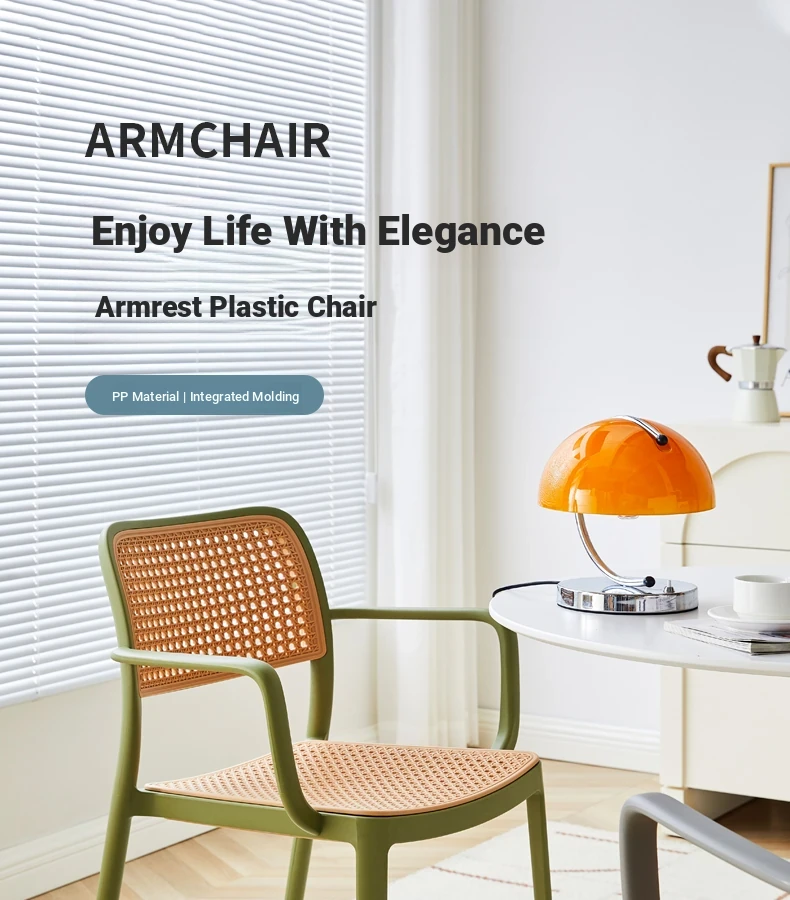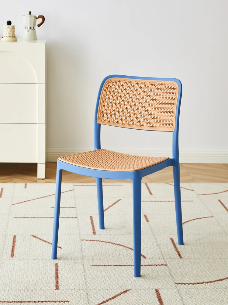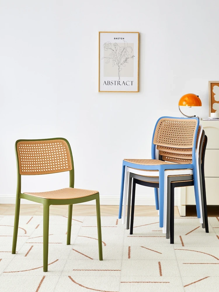 Nordic Style Dining Chair - Trendy Plastic Rattan Armchair for Modern Minimalist Homes, Perfect for Small Spaces, Comfortable Backrest Dining Seat
