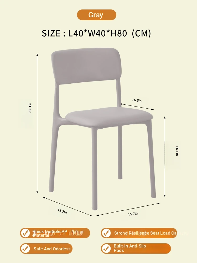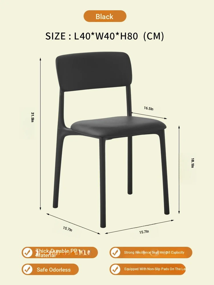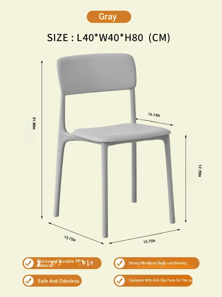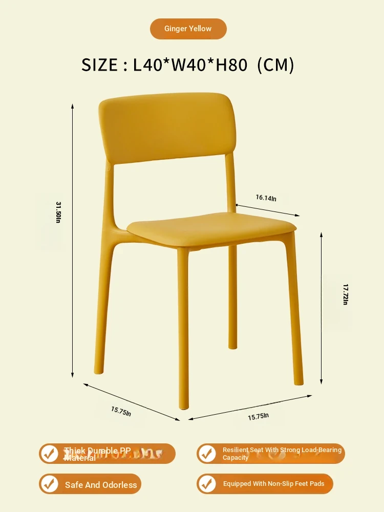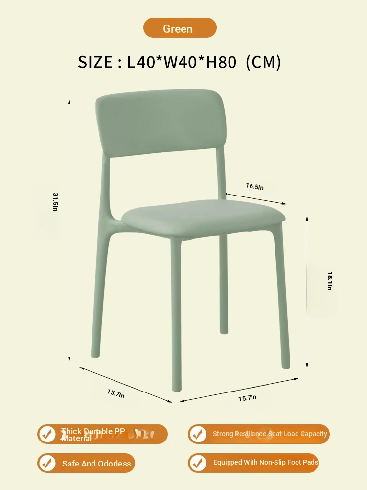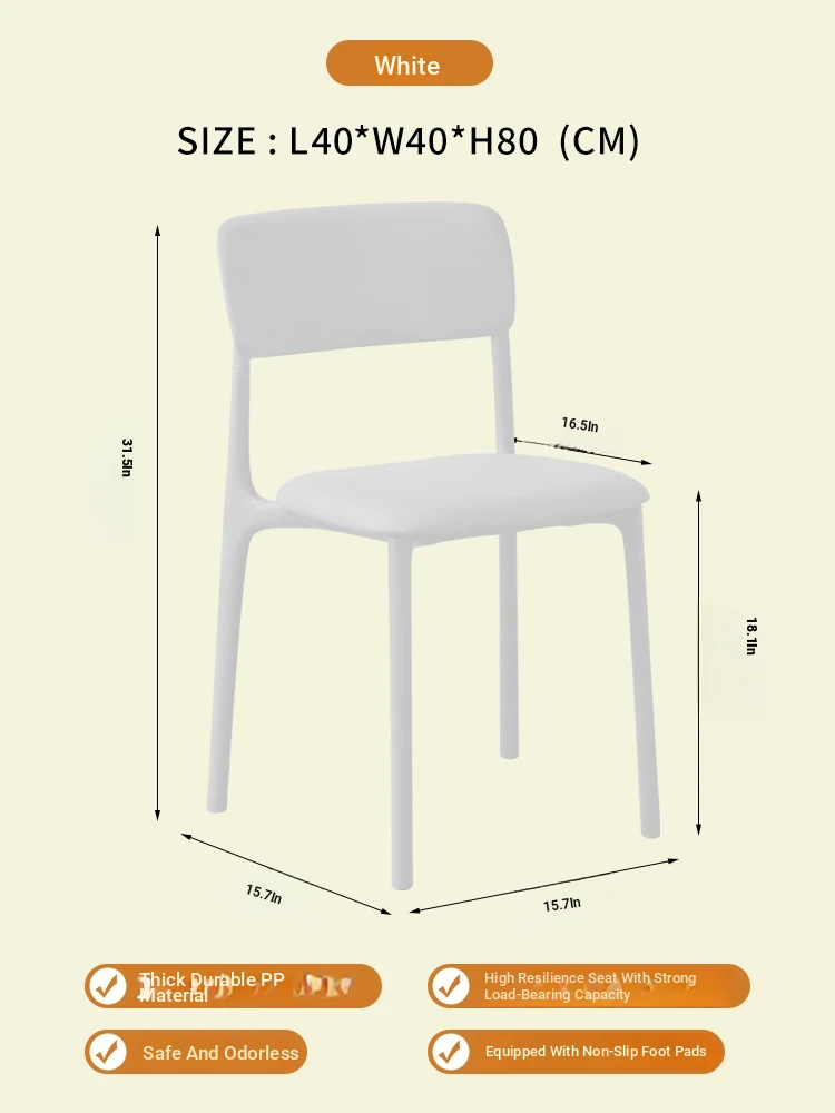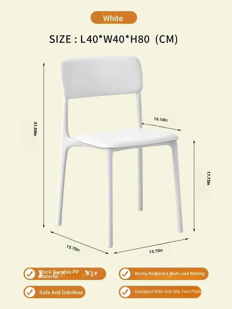 Nordic Style Plastic Dining Chair - Modern Minimalist Design, Trendy Ins-Inspired High-Back Seat, Thickened Leisure Stool for Home Dining Room