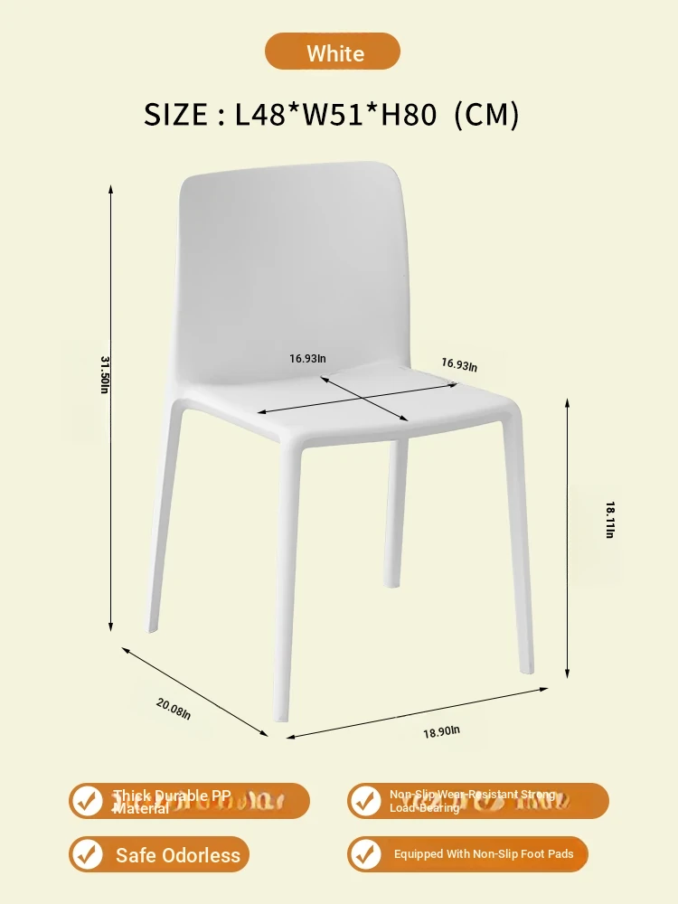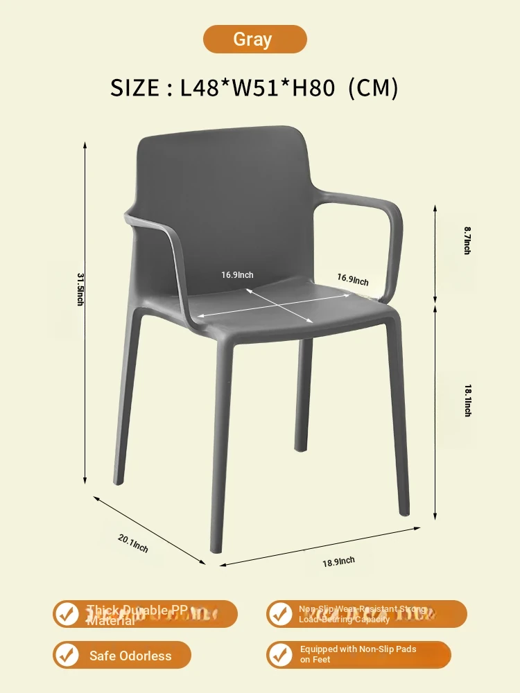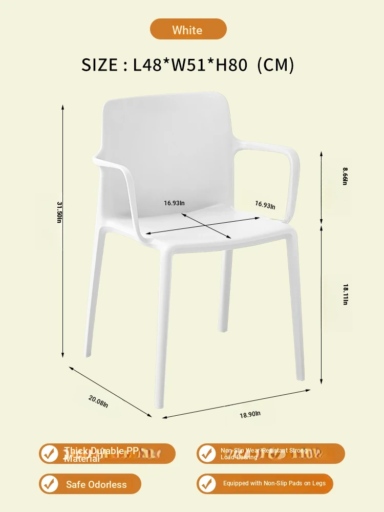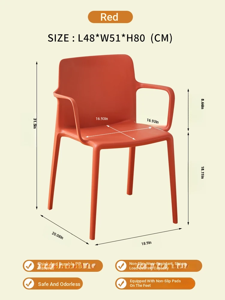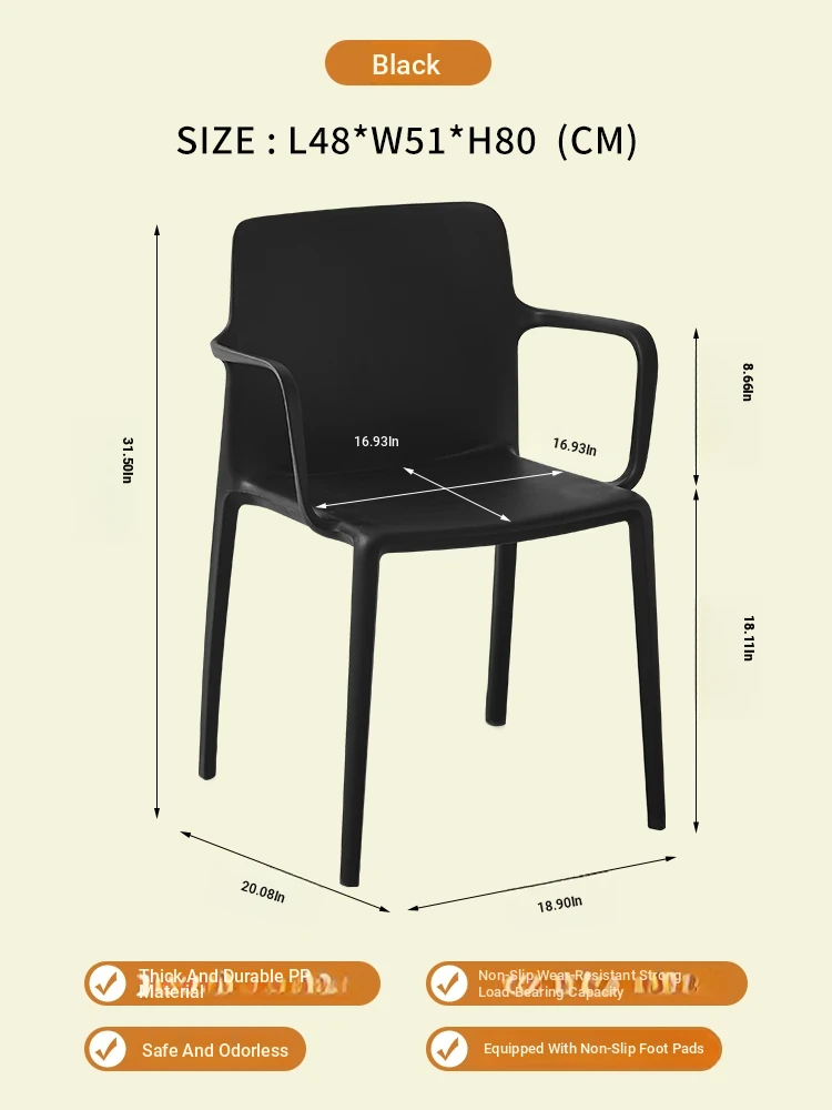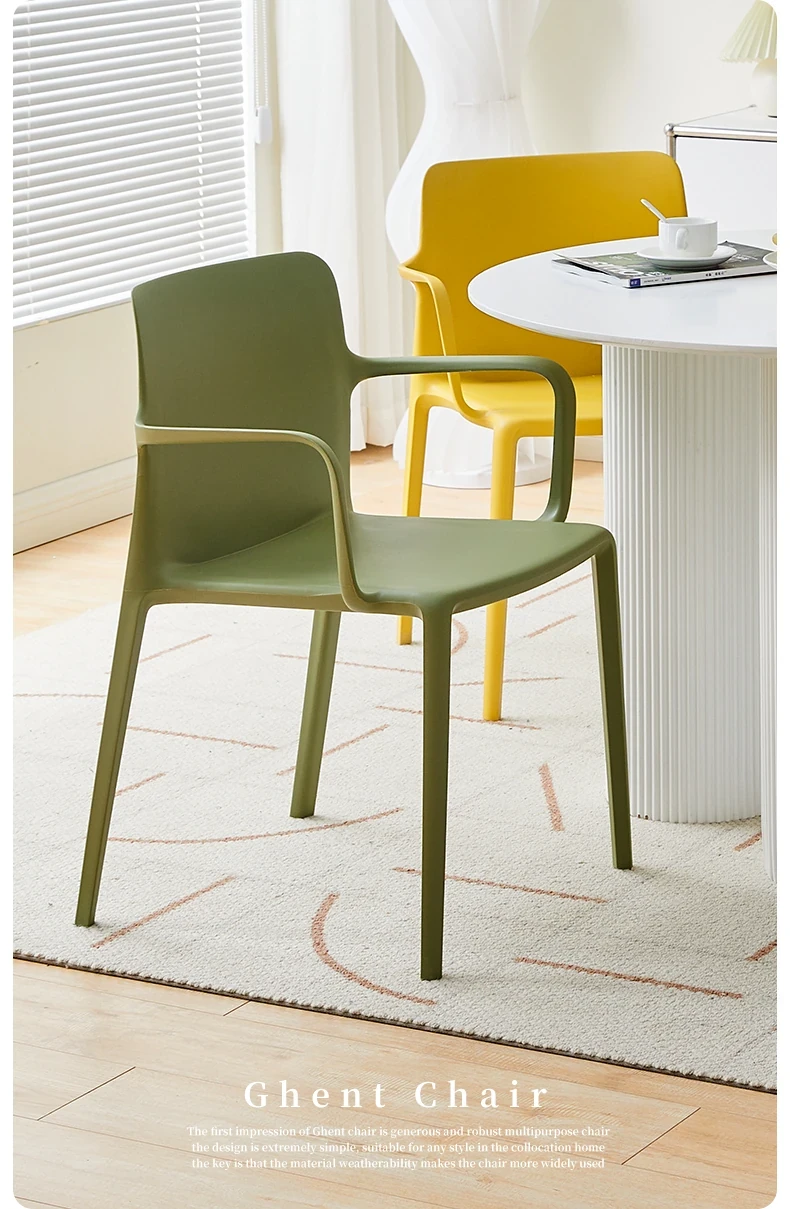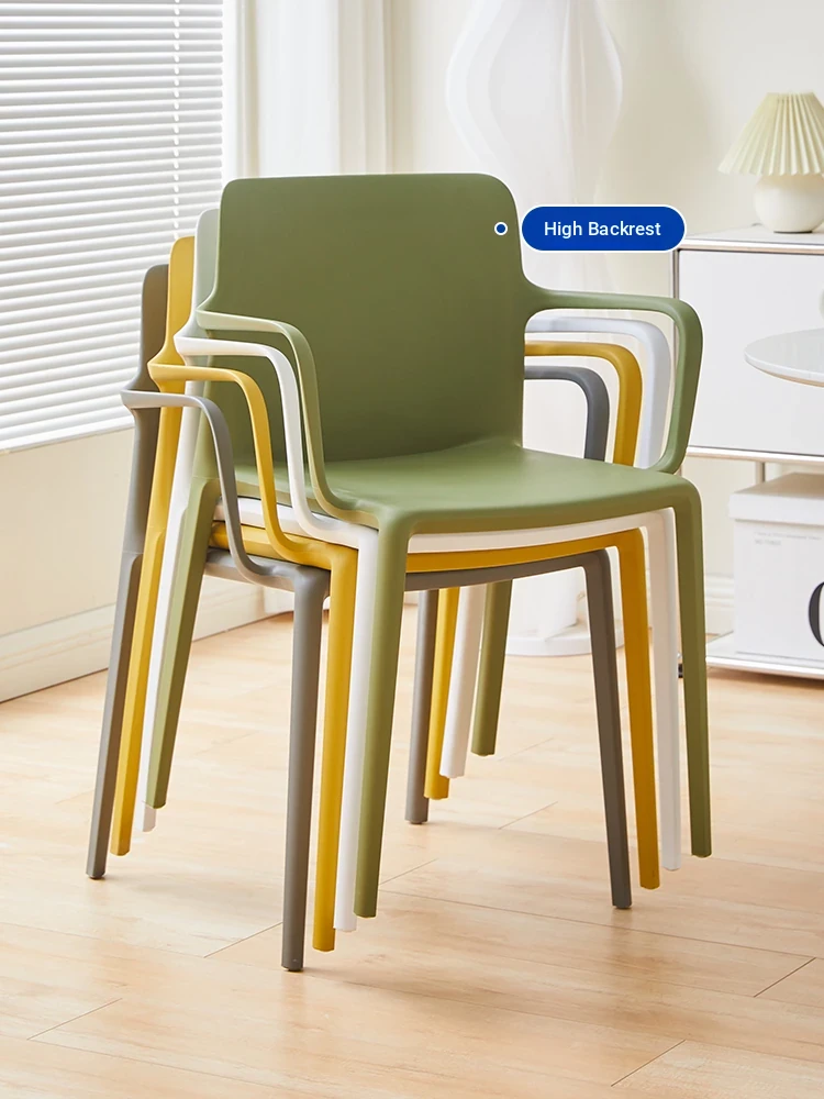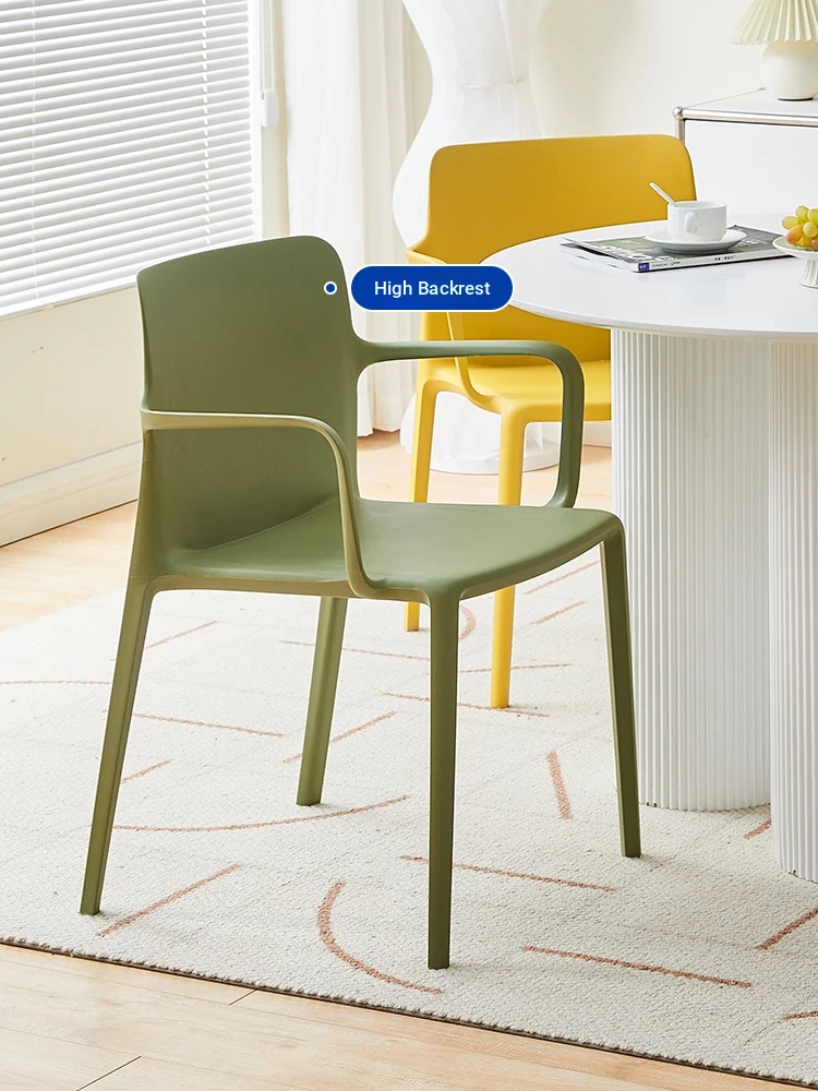 Nordic Style Plastic Dining Chair Set - Modern Minimalist Armrest and Backrest Chairs for Home Use, Thickened Design for Long Sitting Comfort, Perfect for Trendy Dining Rooms