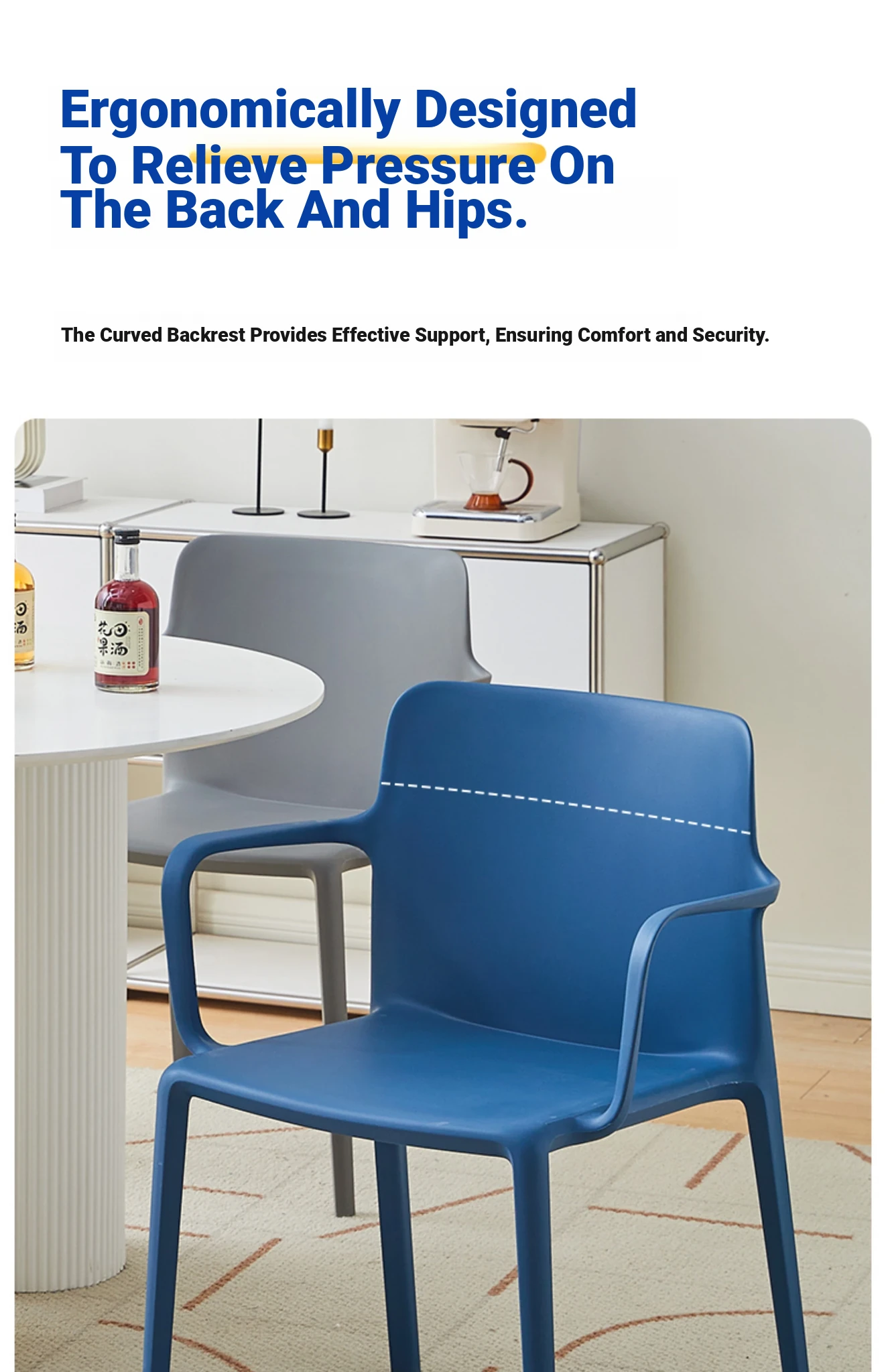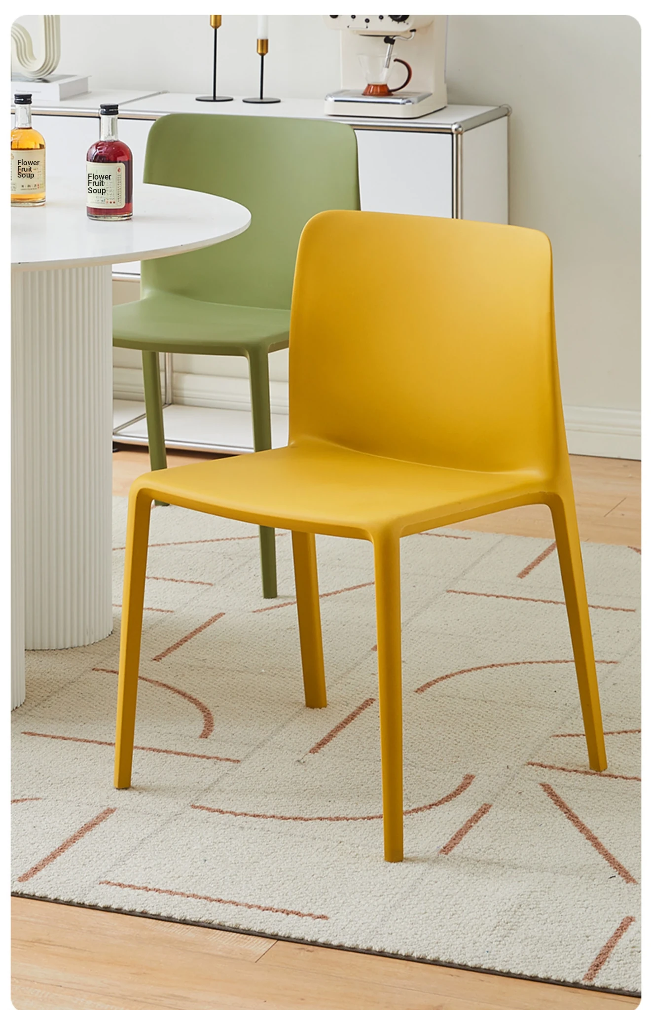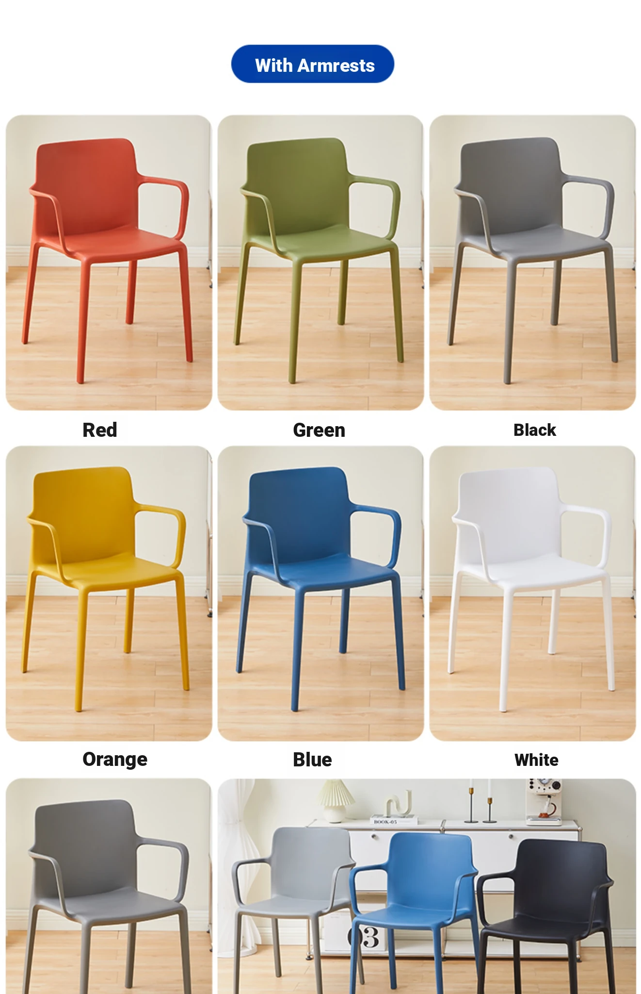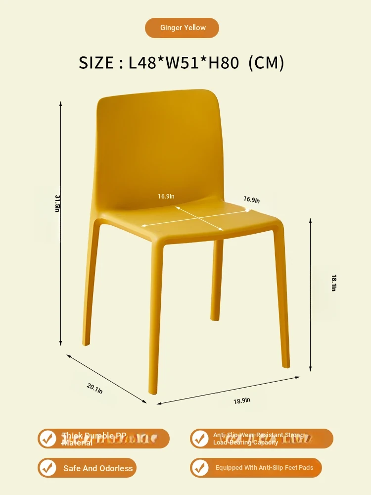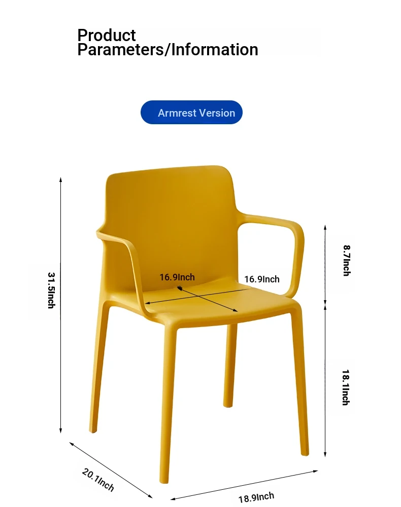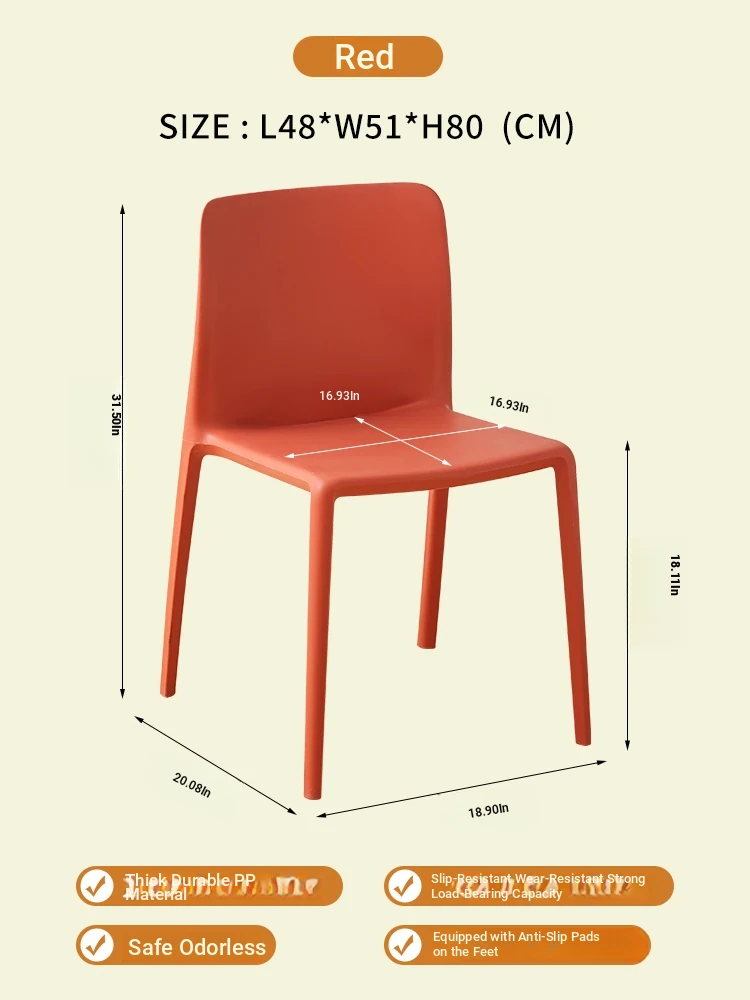Nordic Style Plastic Dining Chair Set - Modern Minimalist Armrest and Backrest Chairs for Home Use, Thickened Design for Long Sitting Comfort, Perfect for Trendy Dining Rooms