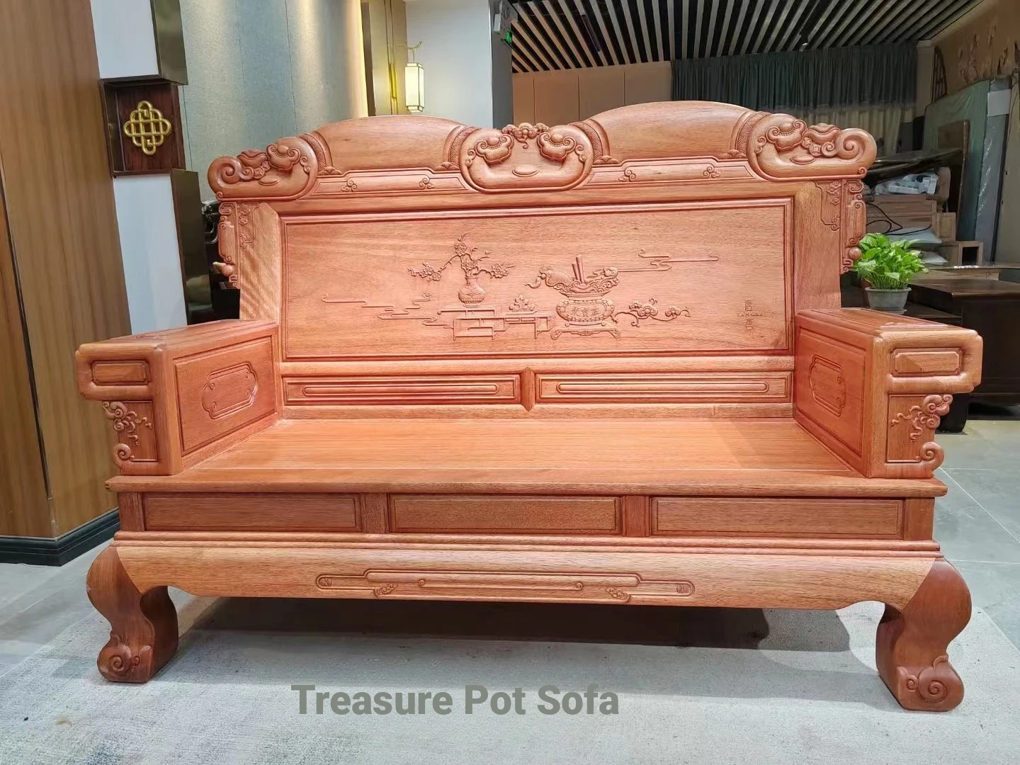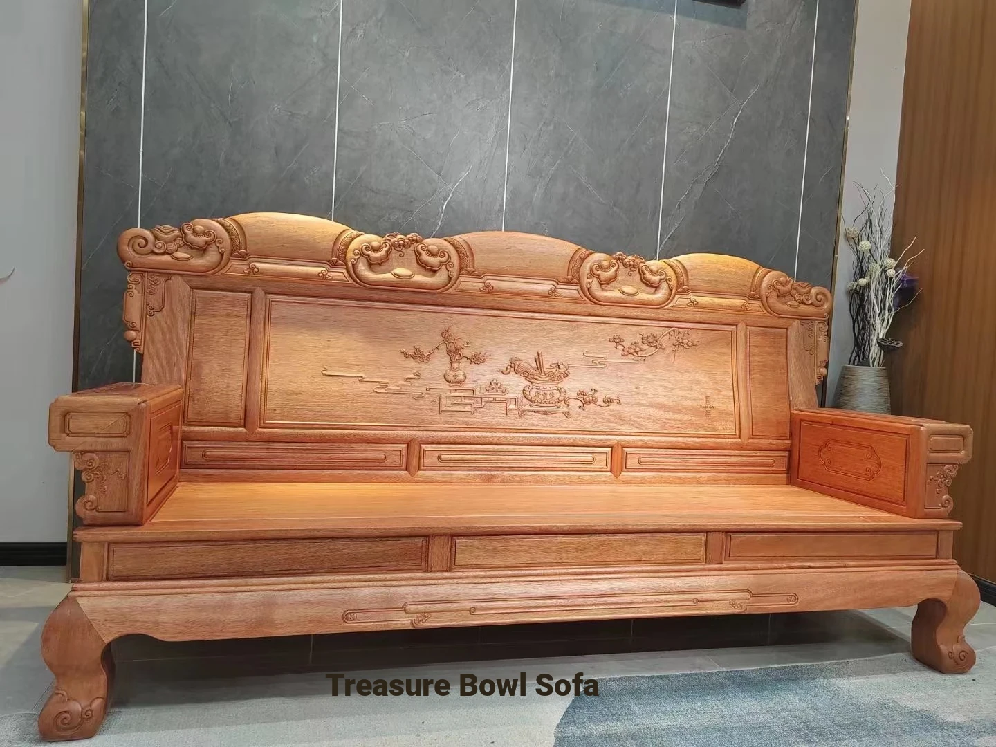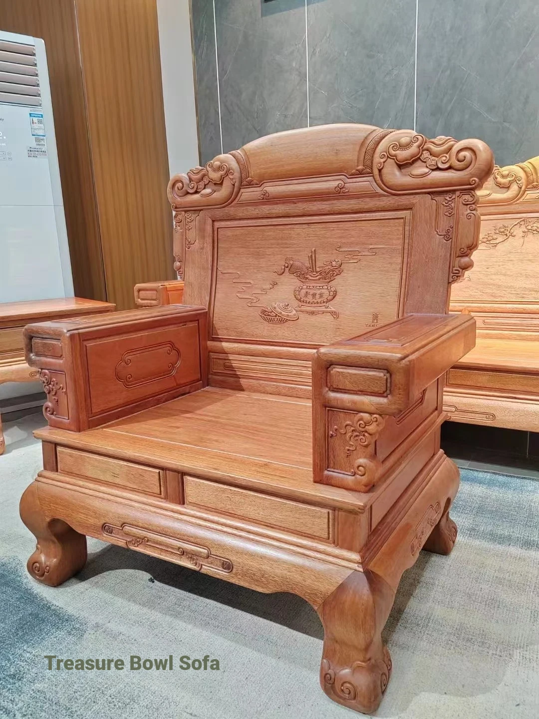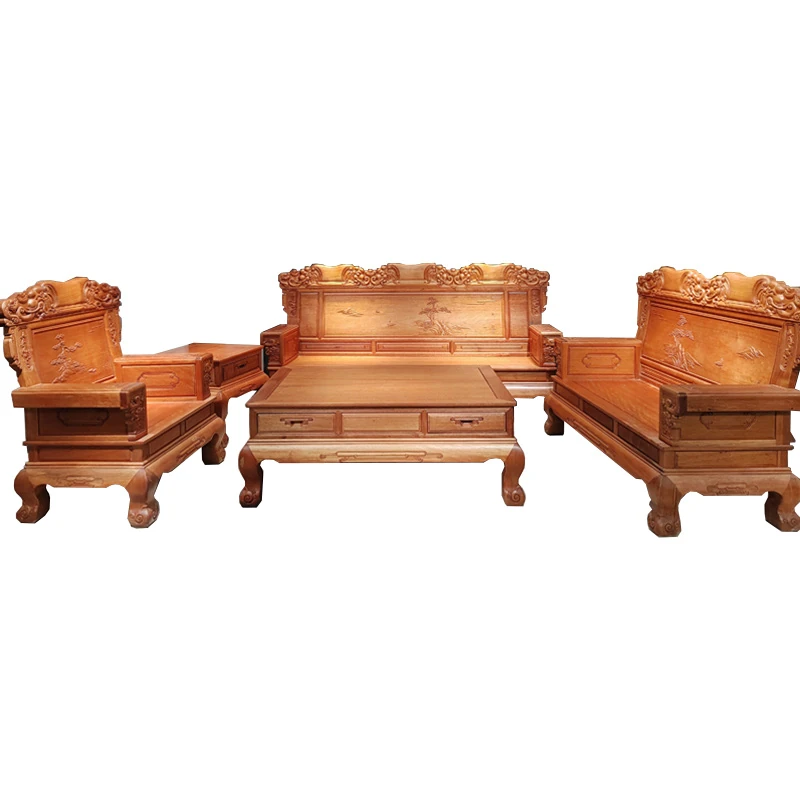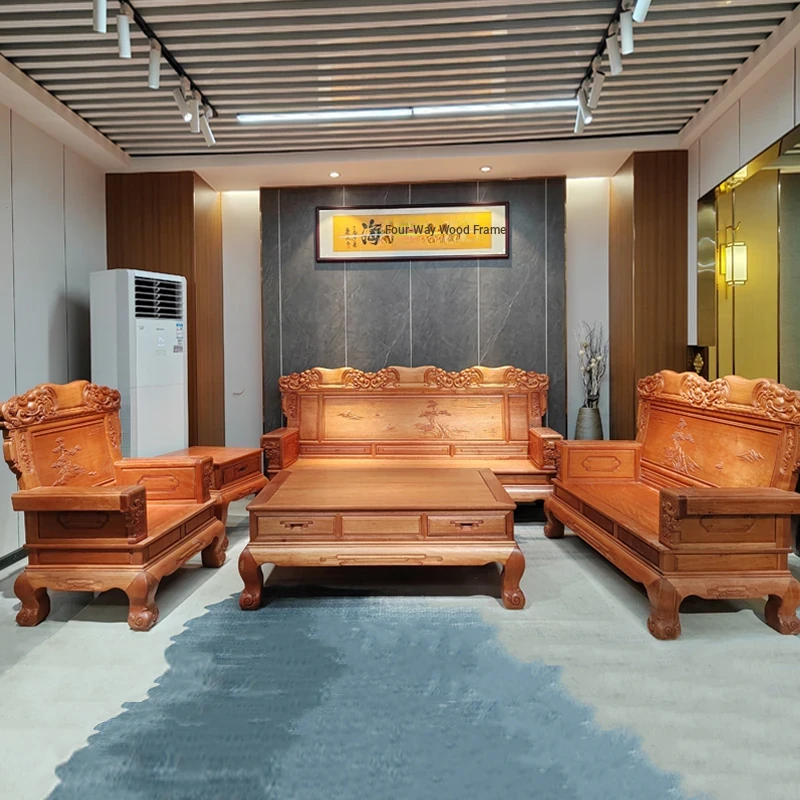 Premium Rosewood Sofa Set - Elegant Golden Pear Wood Furniture with Solid Pineapple Pattern Design - Traditional Chinese Style Living Room Elephant Sofa Chair Combo - Free Shipping!
