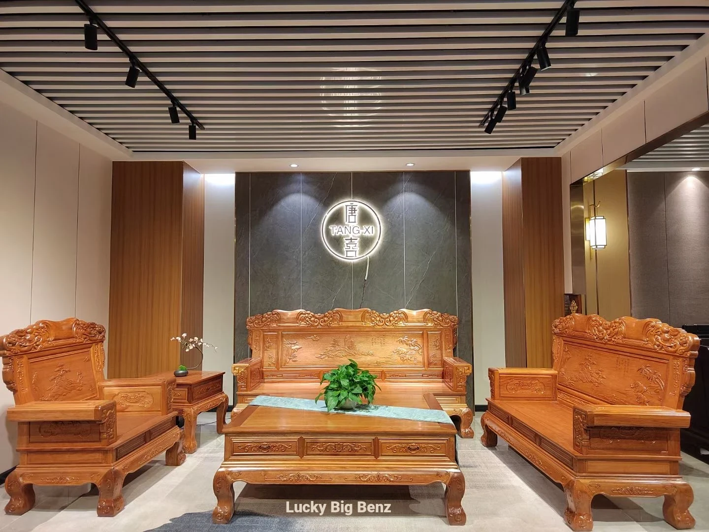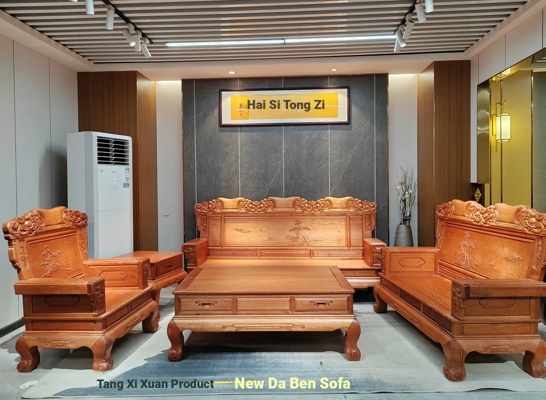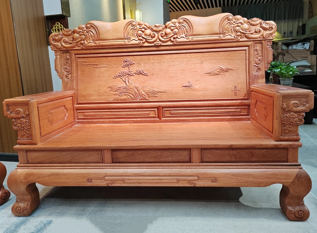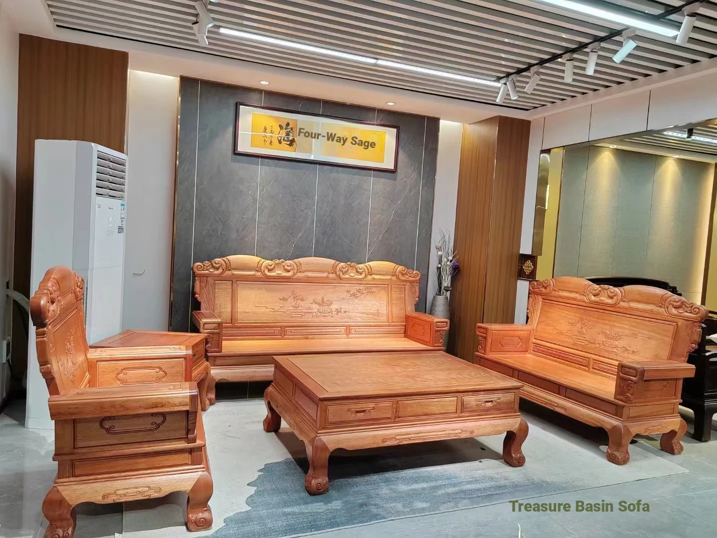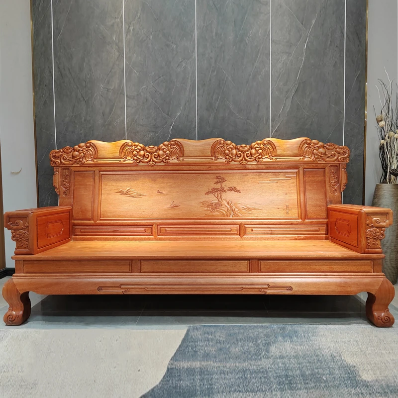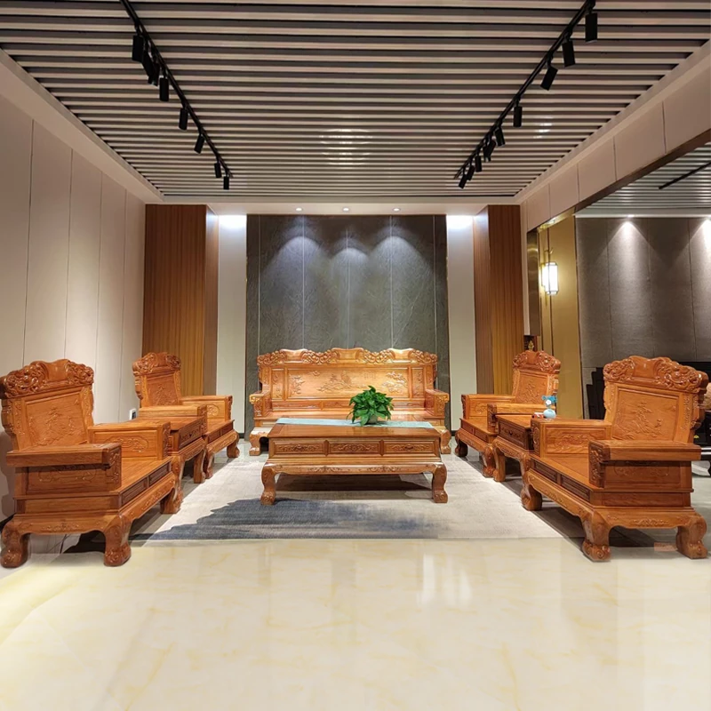 Premium Rosewood Sofa Set - Elegant Golden Pear Wood Furniture with Solid Pineapple Pattern Design - Traditional Chinese Style Living Room Elephant Sofa Chair Combo - Free Shipping!