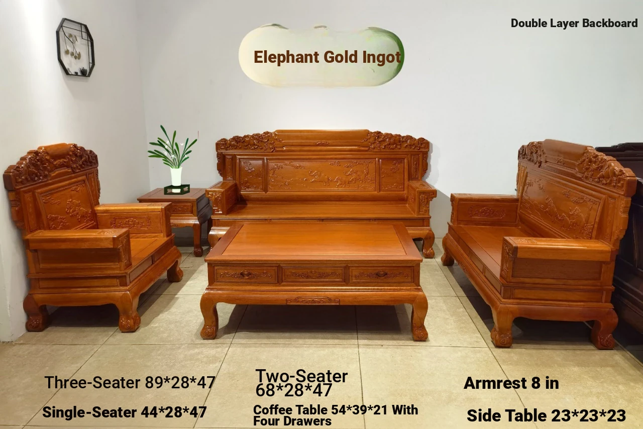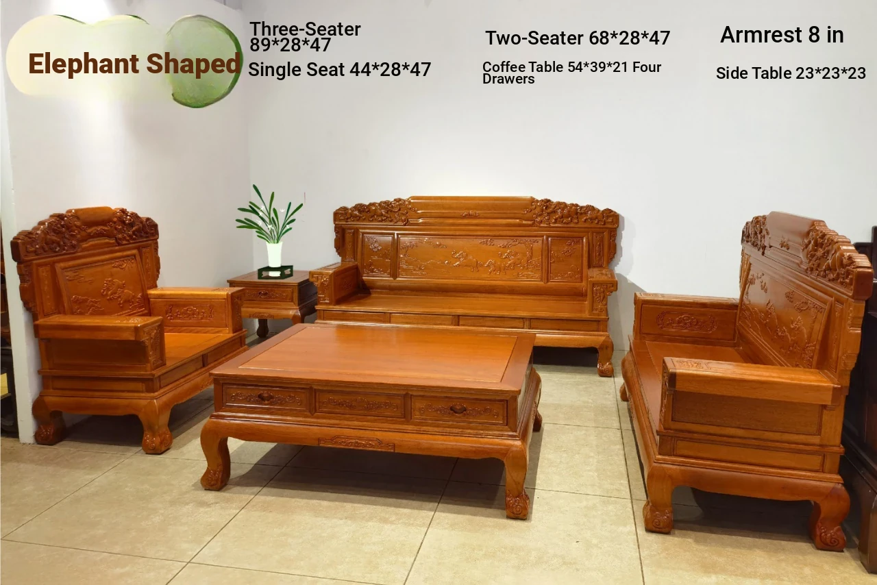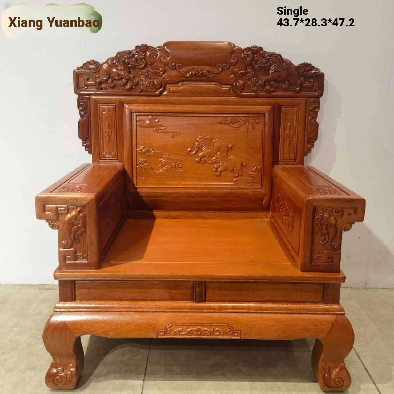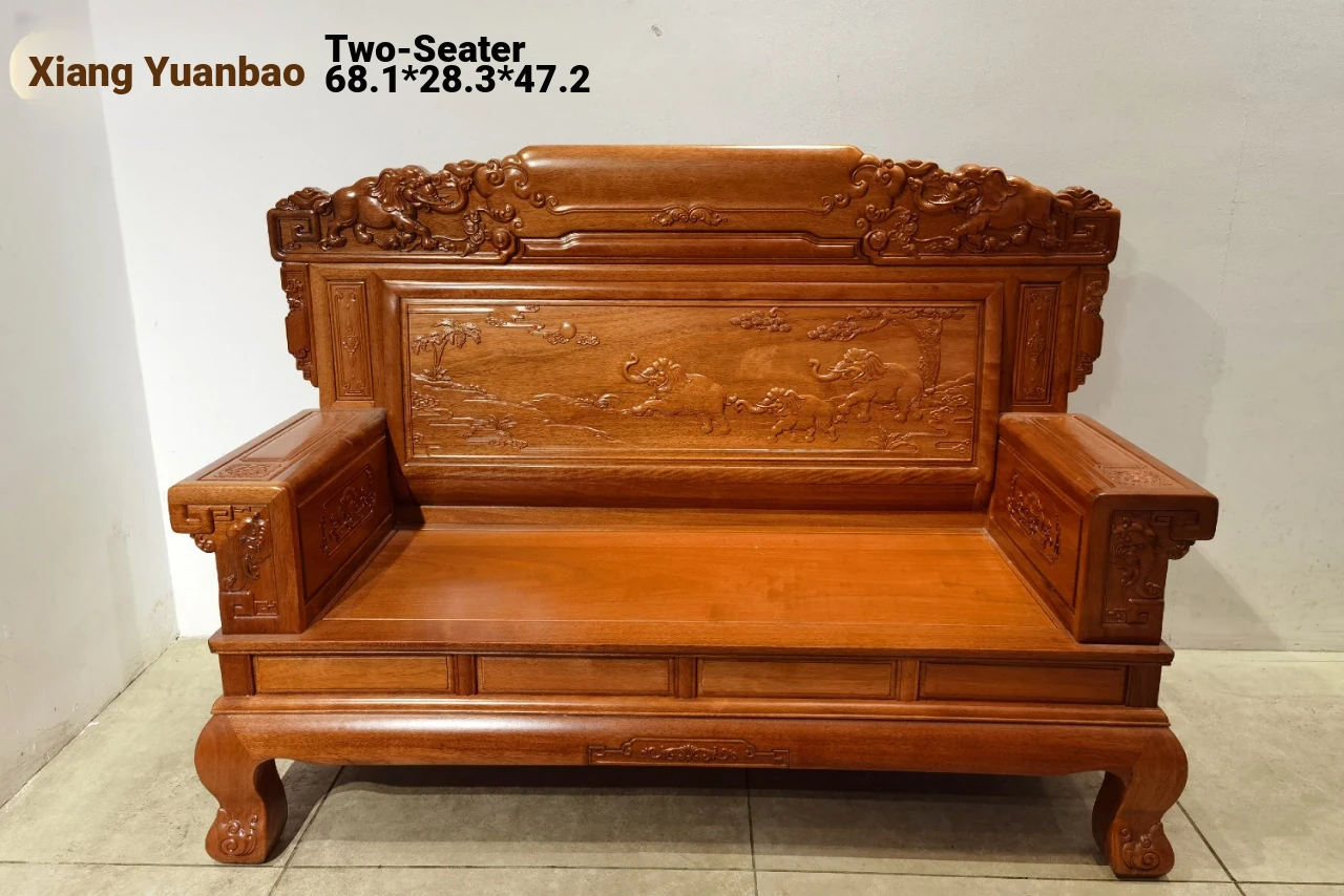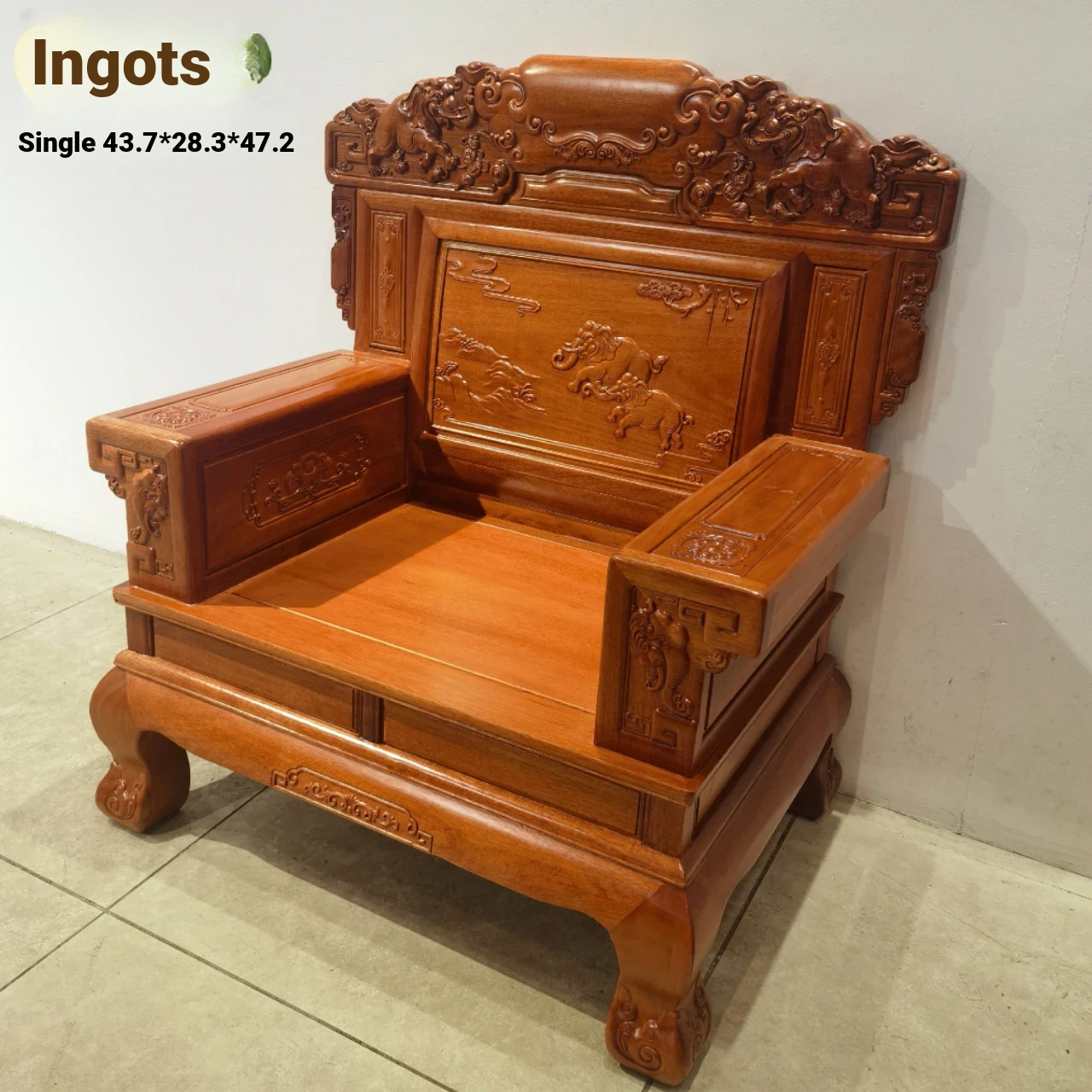 Solid Wood Jinhua Pear Sofa Set - New Chinese Style, Antique Carved Red Wood Living Room Furniture, Complete Rural Set for Elegant Home Decor