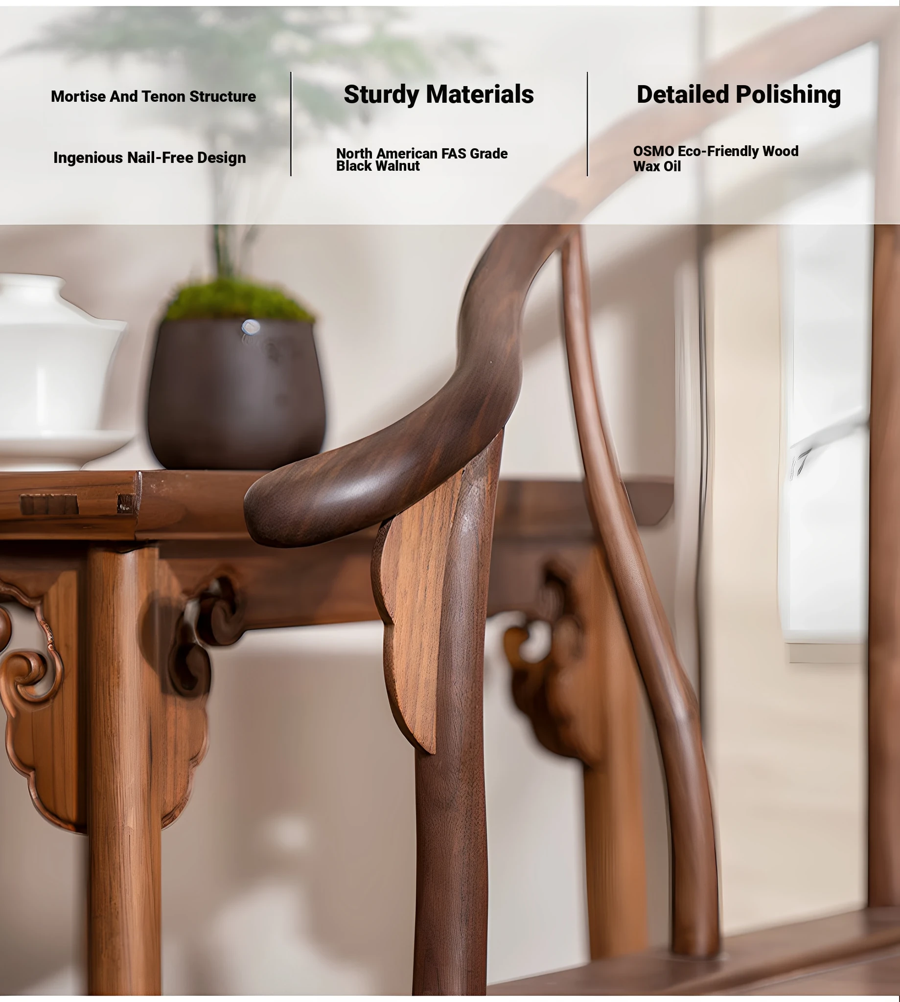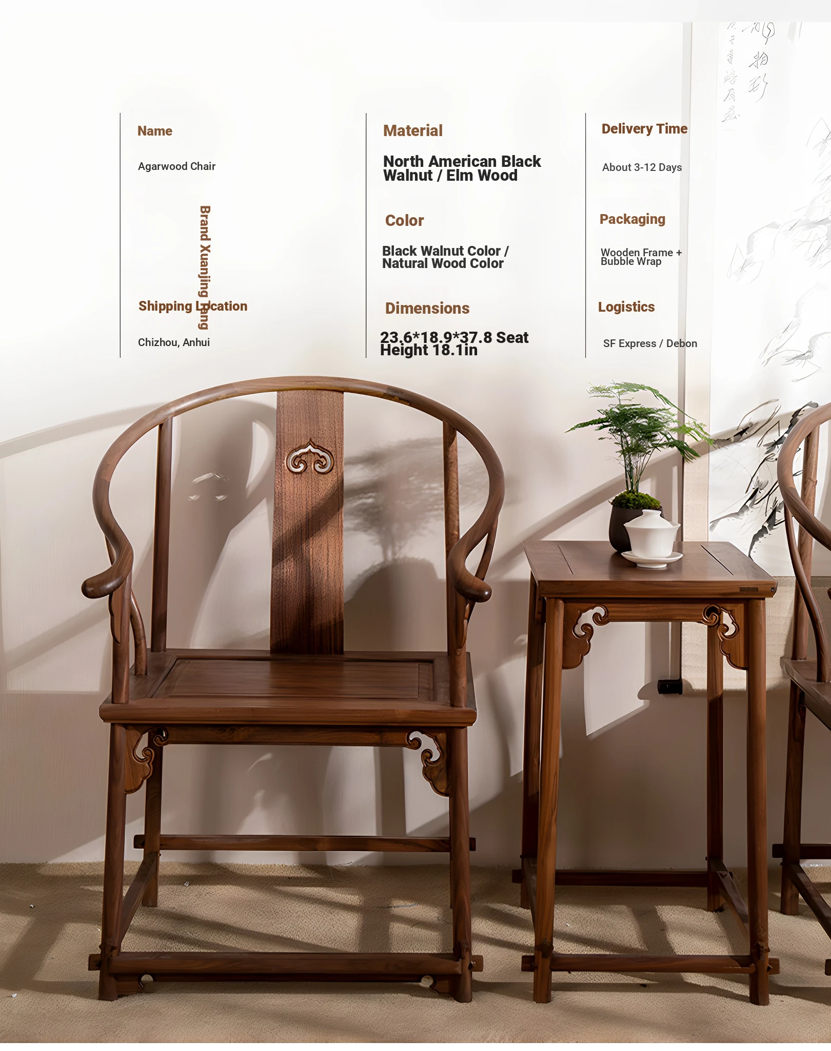 North American black walnut chair three-piece set (no auxiliary material)