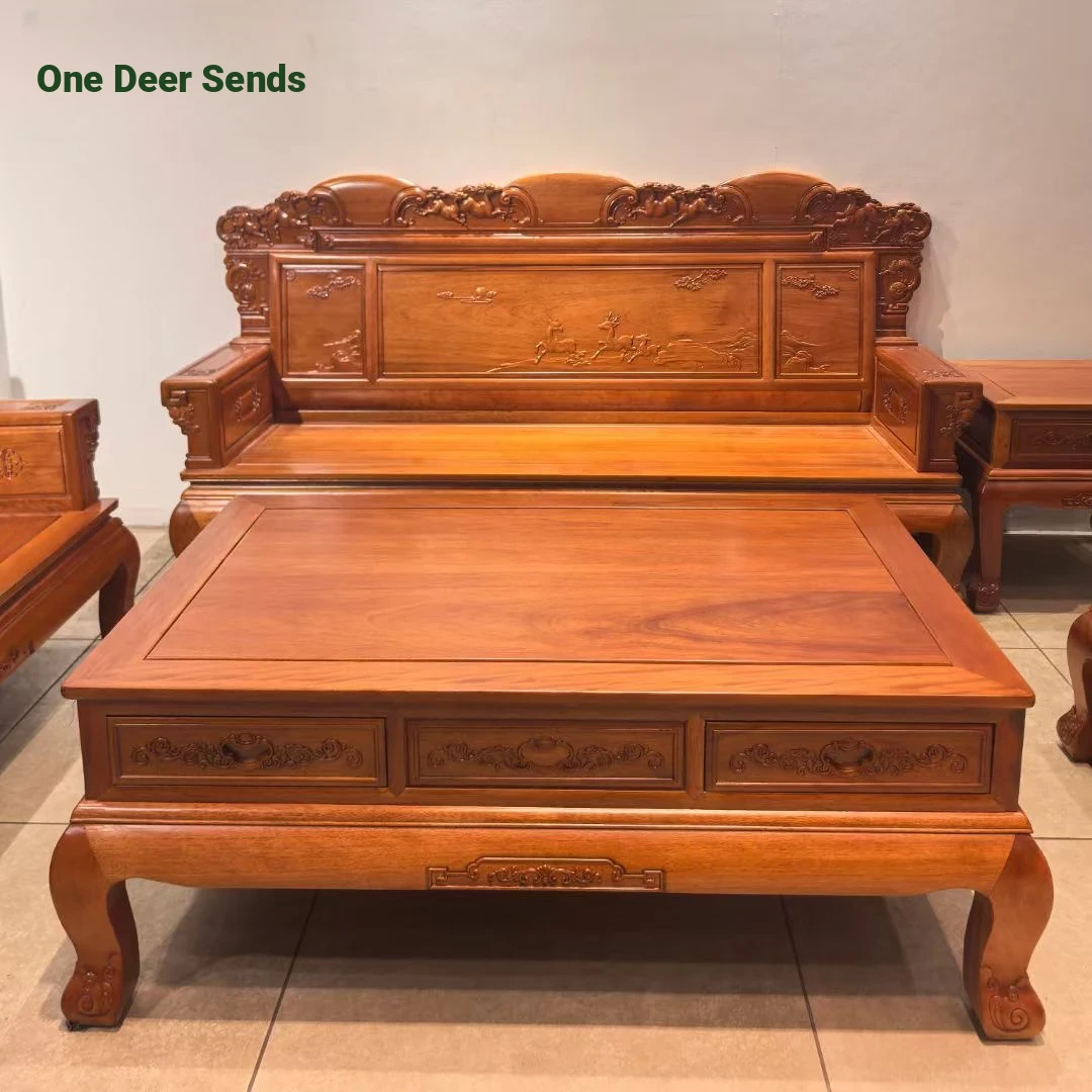 Solid Wood Rosewood Coffee Table - Elegant Minimalist Design for Living Room - Featuring Golden Pear Wood and Pineapple Wood - Perfect for Your Modern Chinese Home Decor