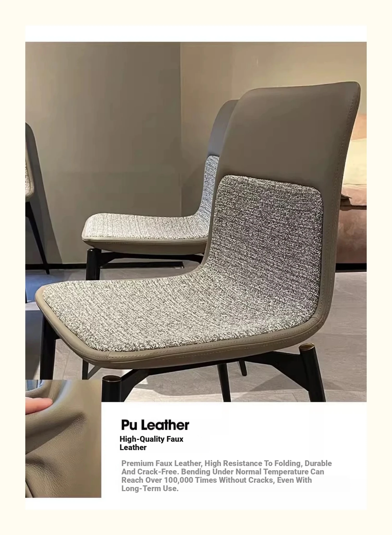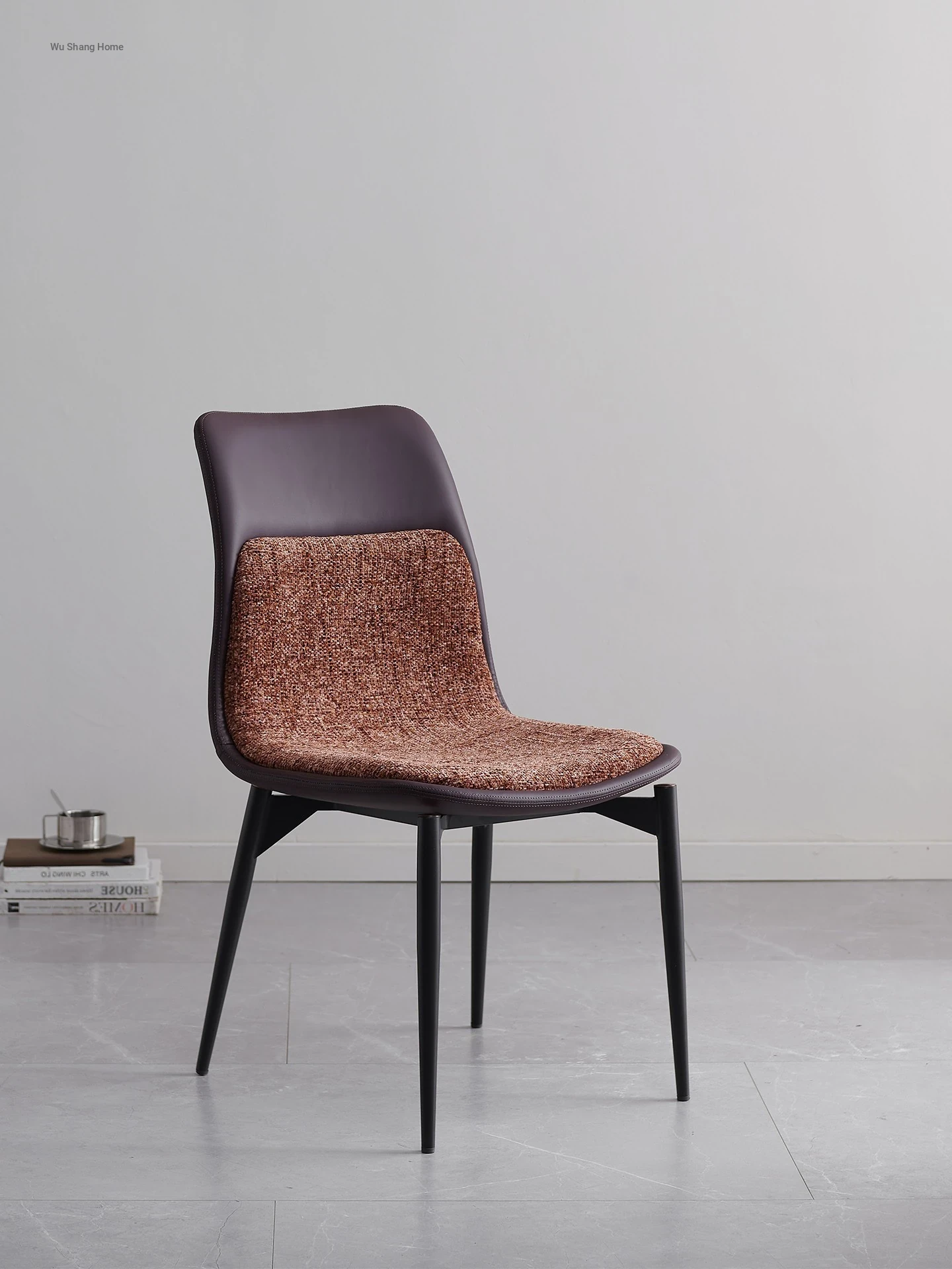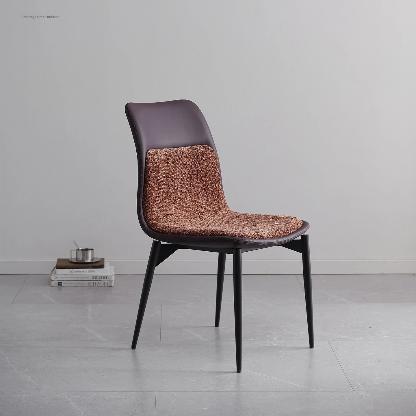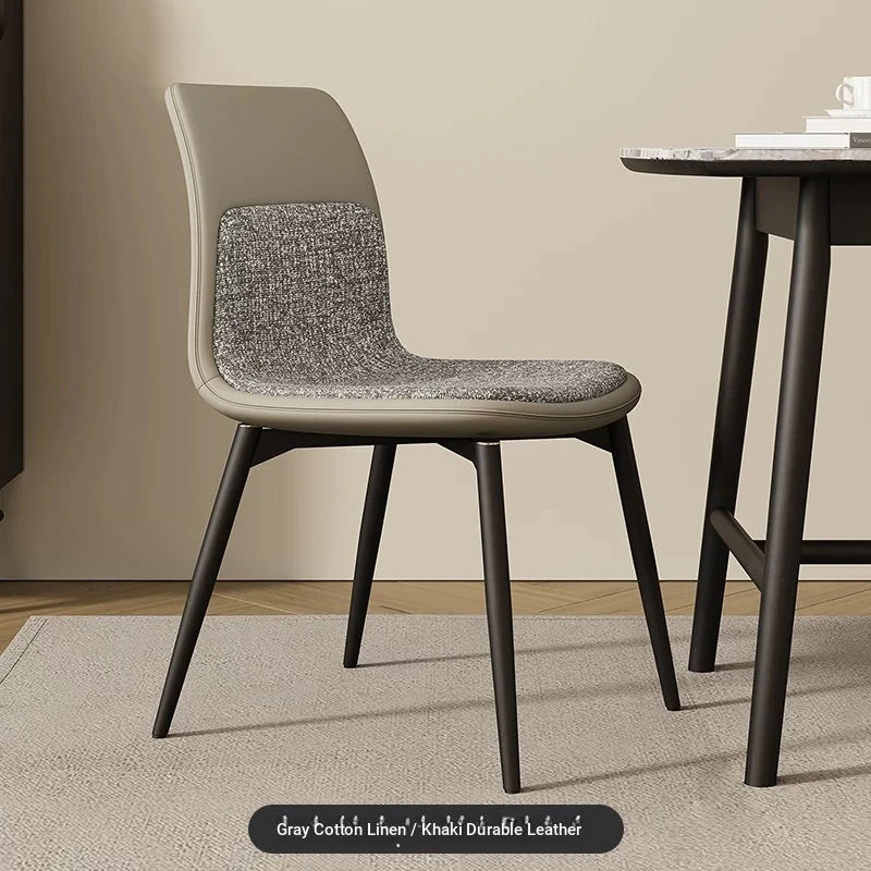Stylish Italian Minimalist Leather Lounge Chair for Home - Designer Cotton-Linen Upholstered Backrest with Sturdy Metal Legs, Perfect for Dining and Living Spaces