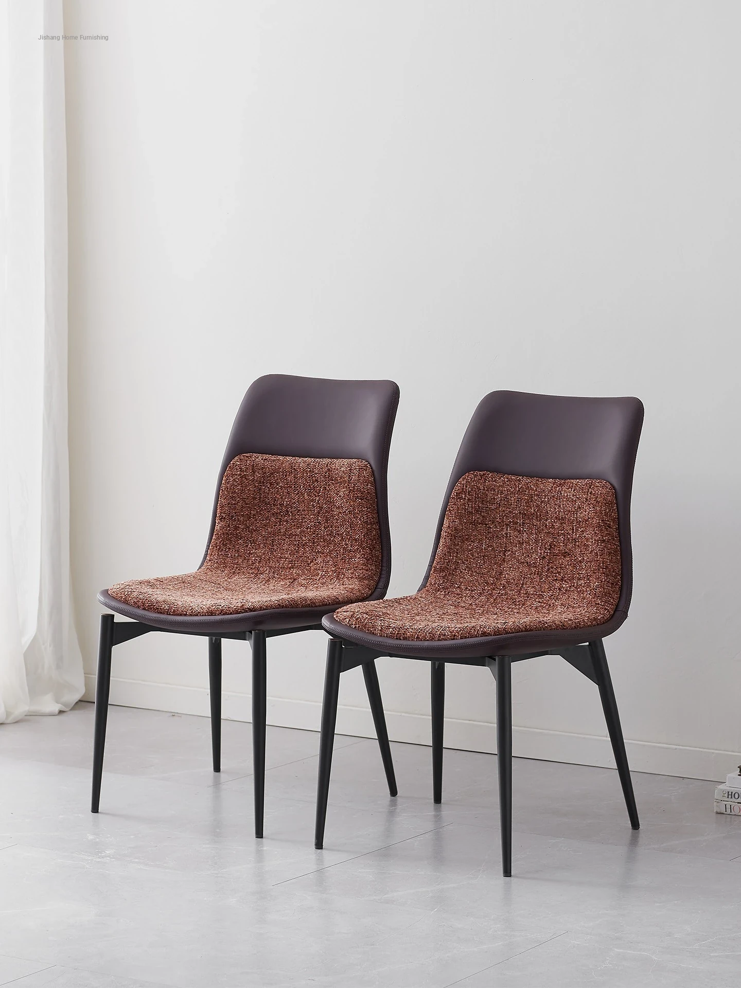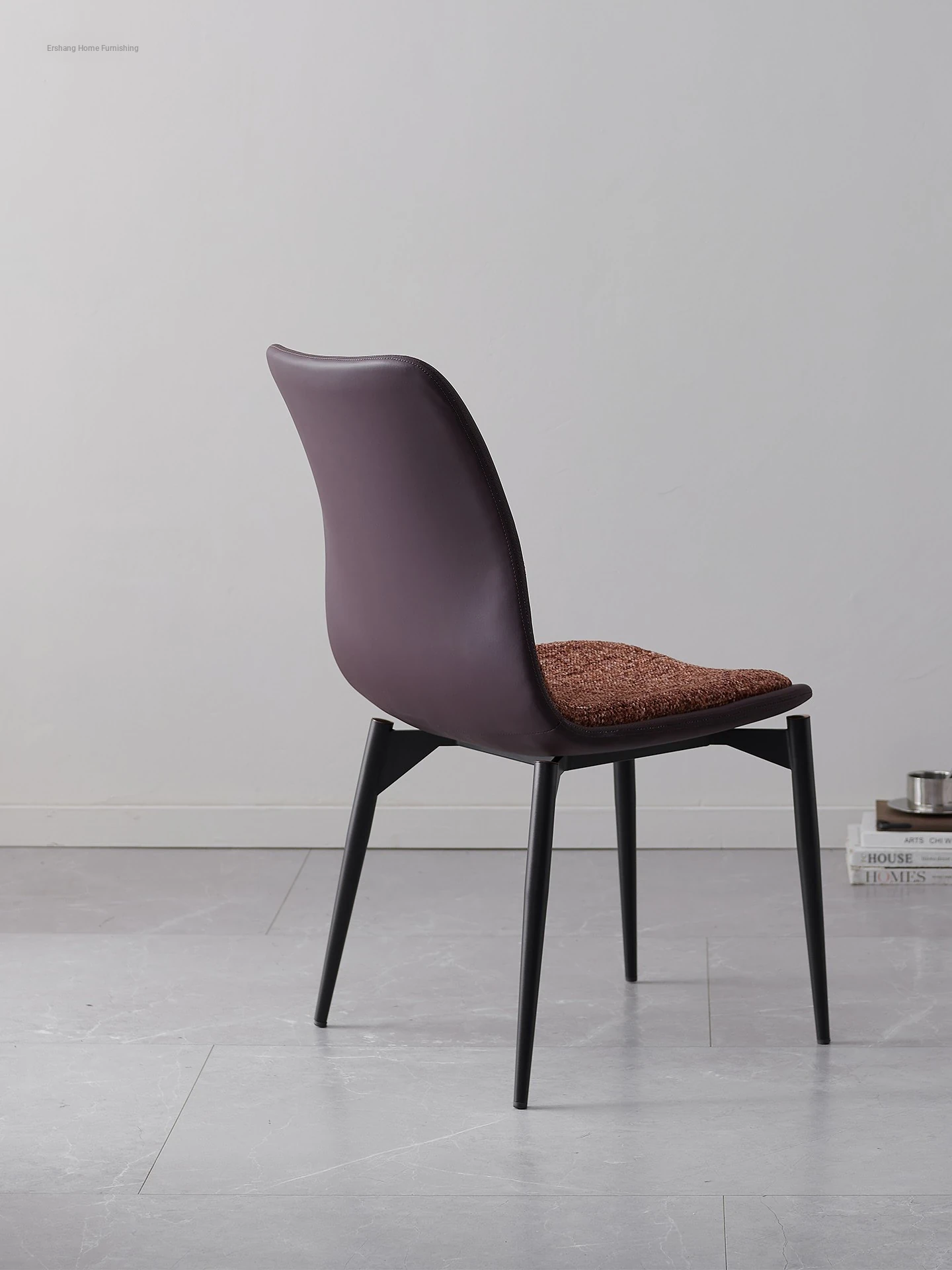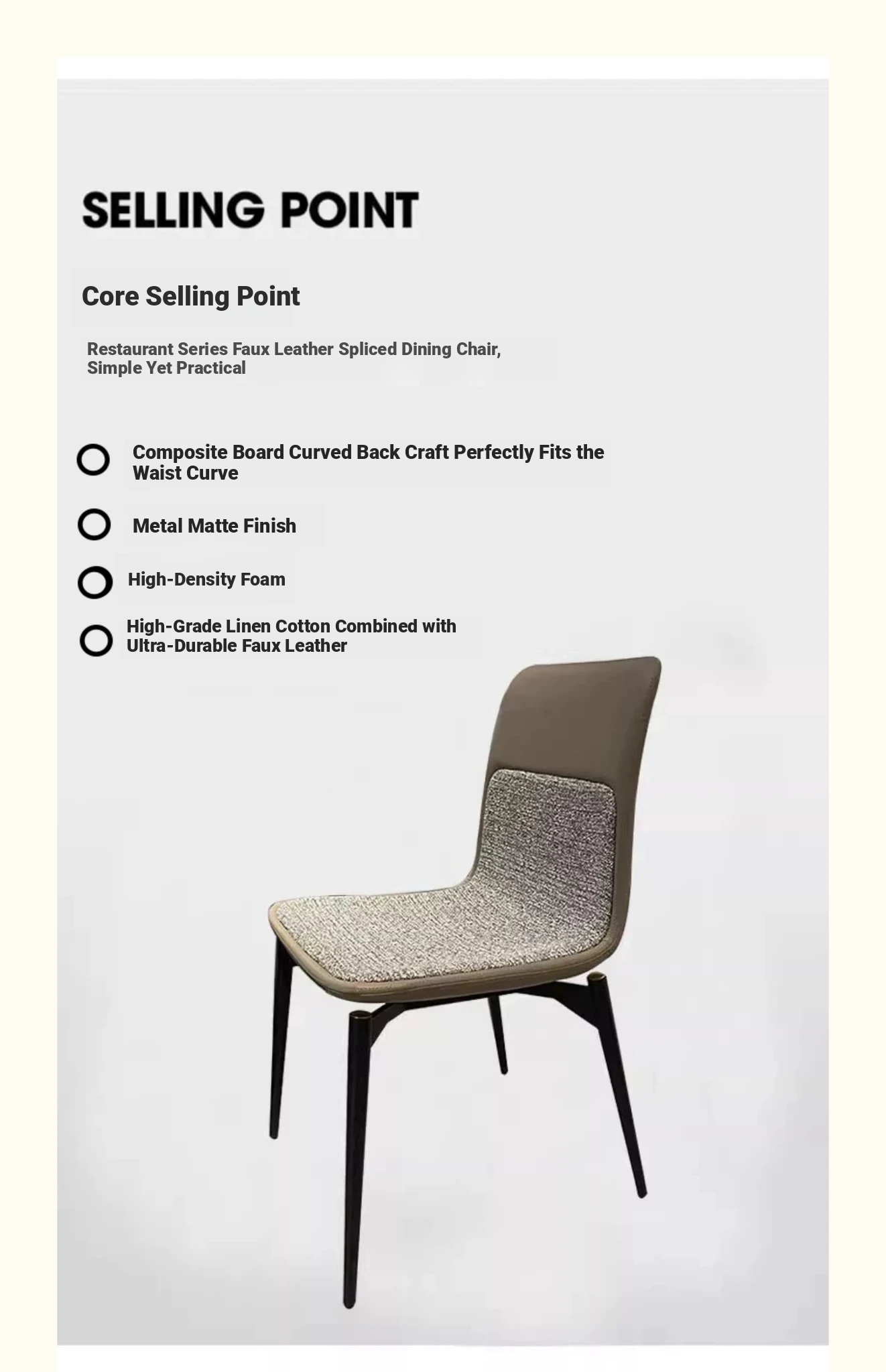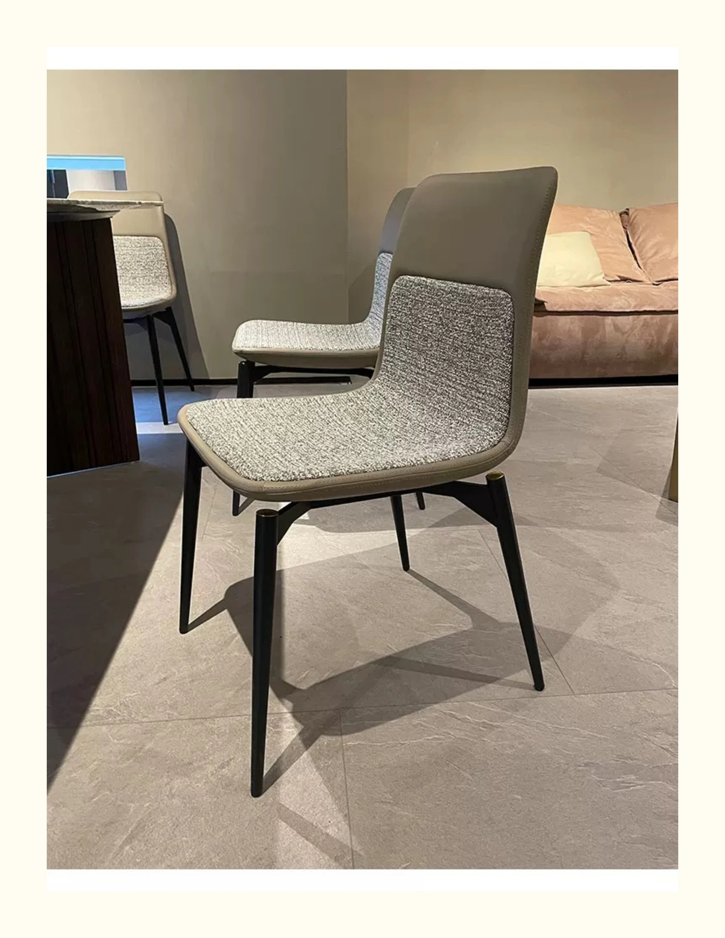 Stylish Italian Minimalist Leather Lounge Chair for Home - Designer Cotton-Linen Upholstered Backrest with Sturdy Metal Legs, Perfect for Dining and Living Spaces