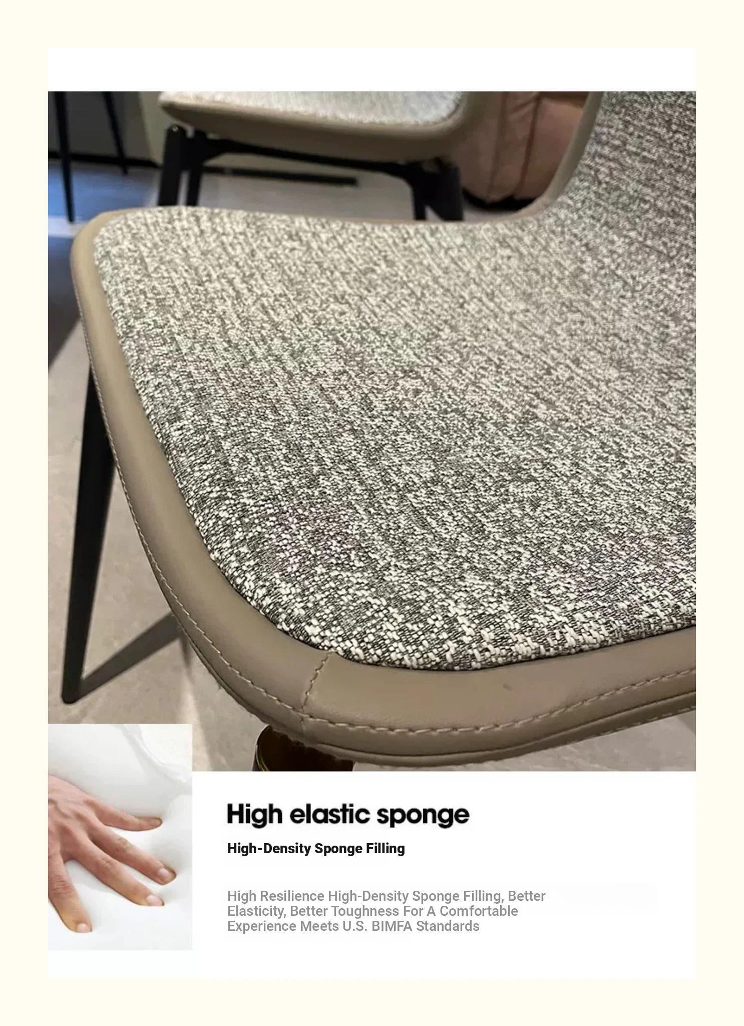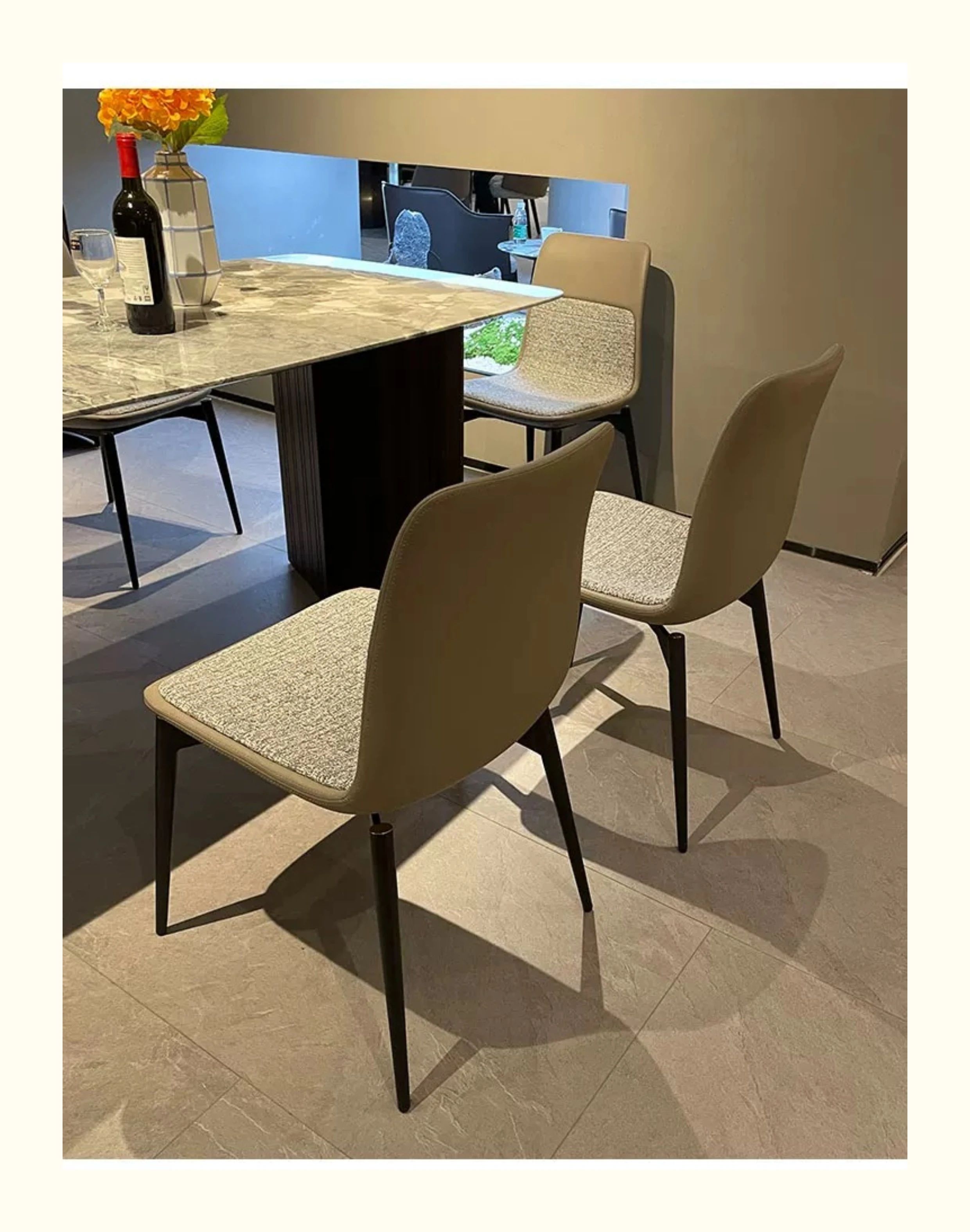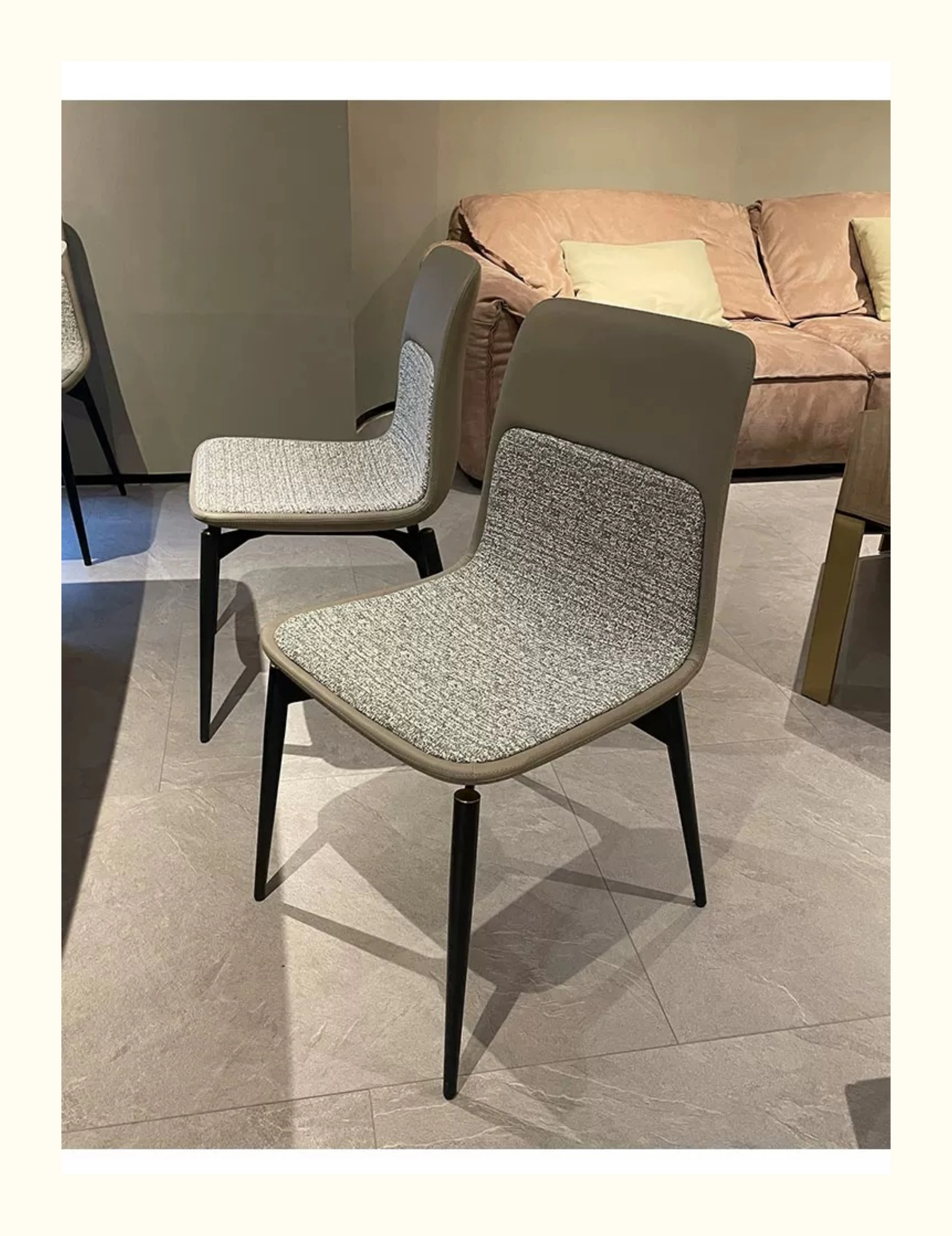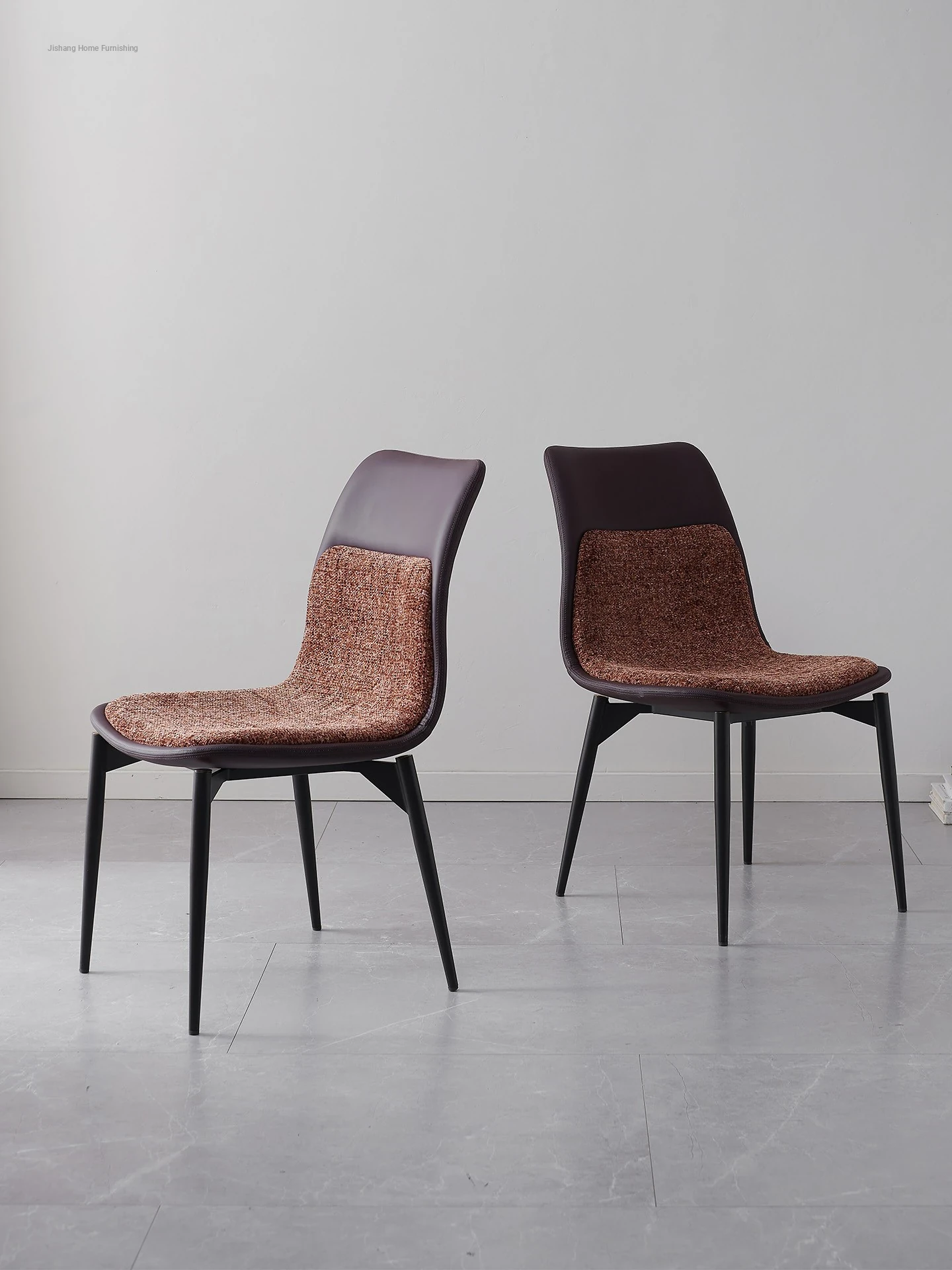 Stylish Italian Minimalist Leather Lounge Chair for Home - Designer Cotton-Linen Upholstered Backrest with Sturdy Metal Legs, Perfect for Dining and Living Spaces