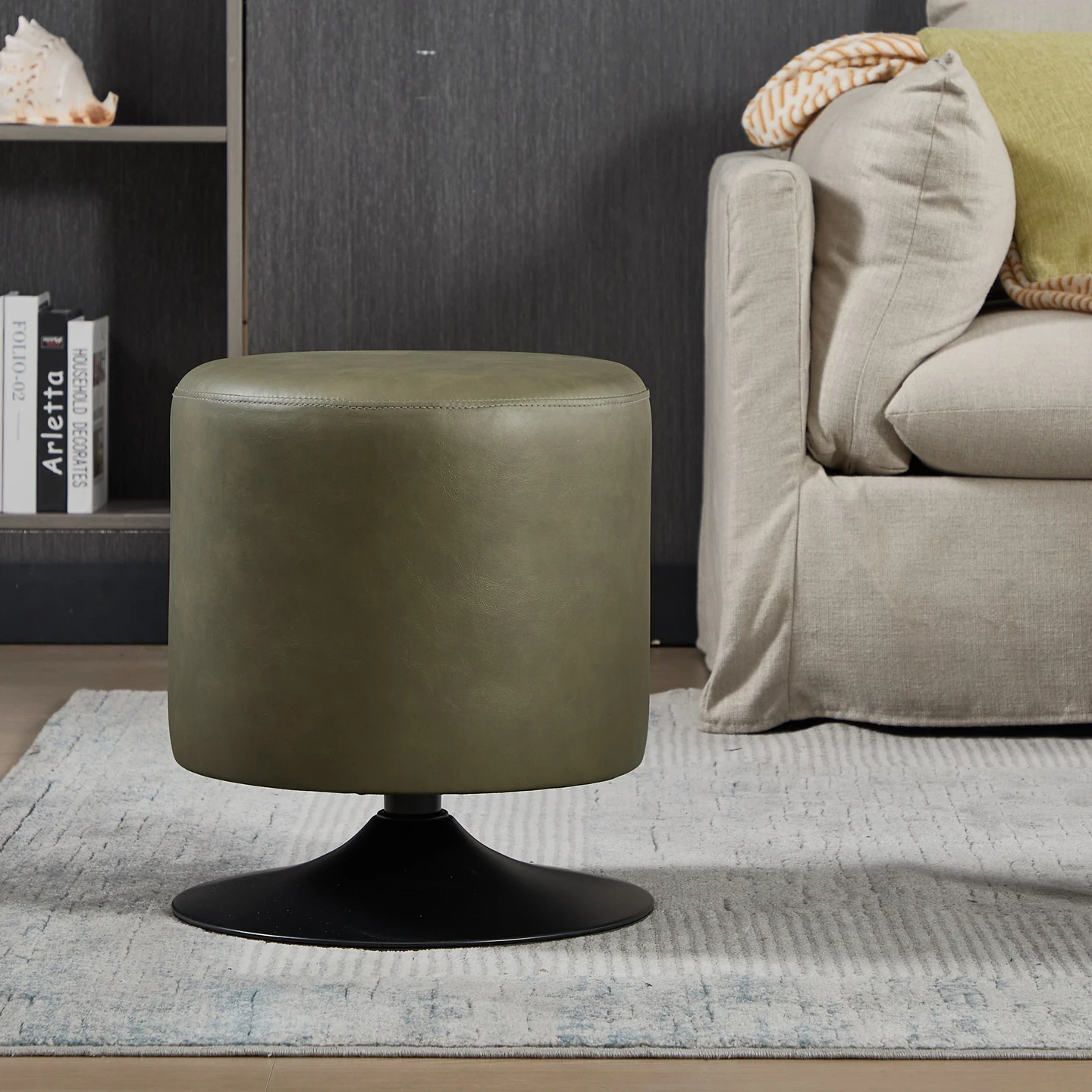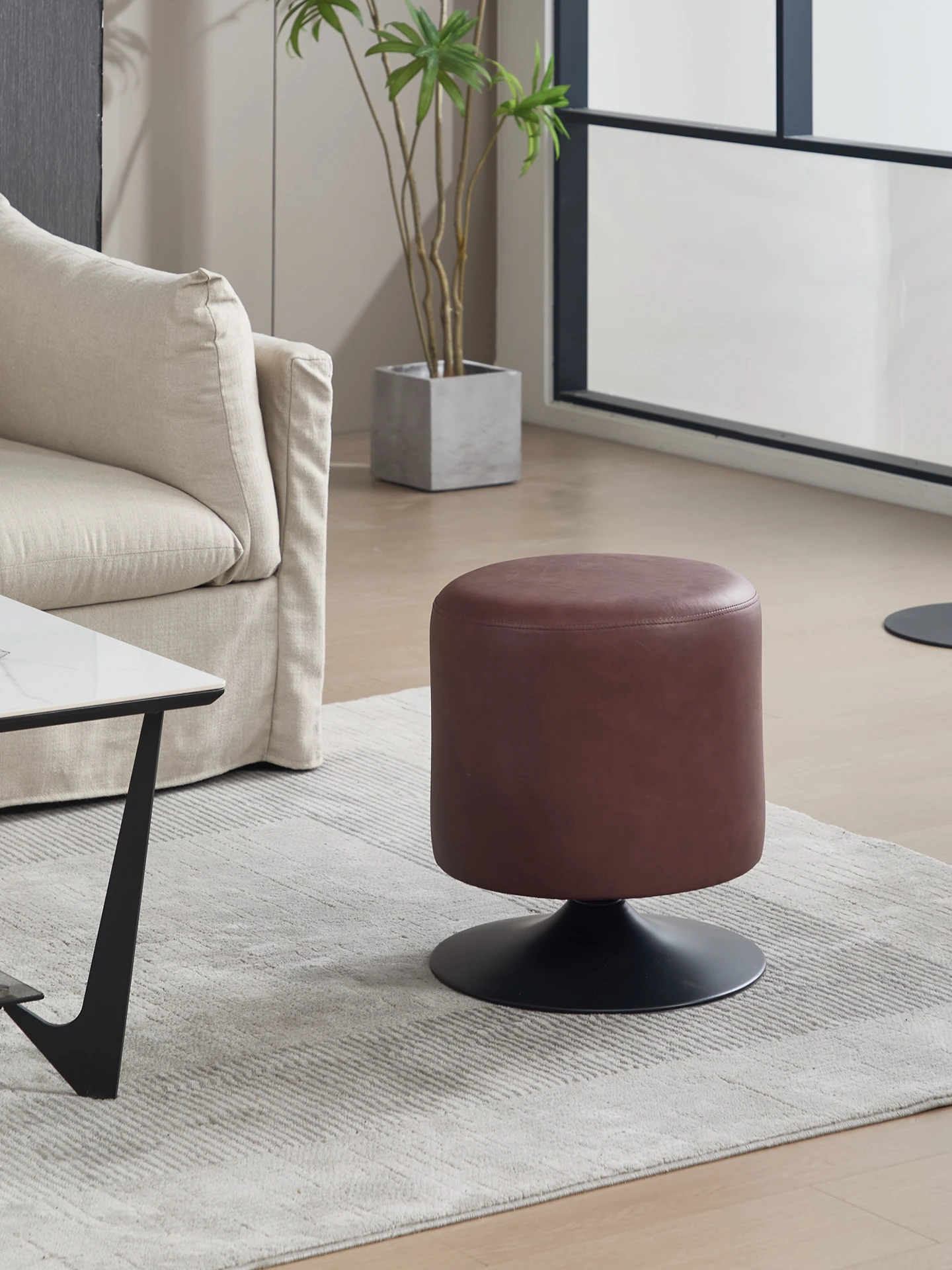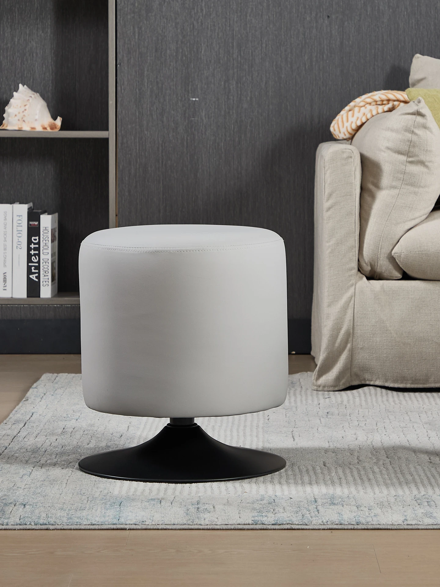 Stylish Round Makeup Vanity Stool - Rotating Single Sofa Seat for Living Room, Trendy Leather Ottoman, Perfect Shoe Changing Stool, Ideal Makeup Chair, Chic Café Swivel Chair