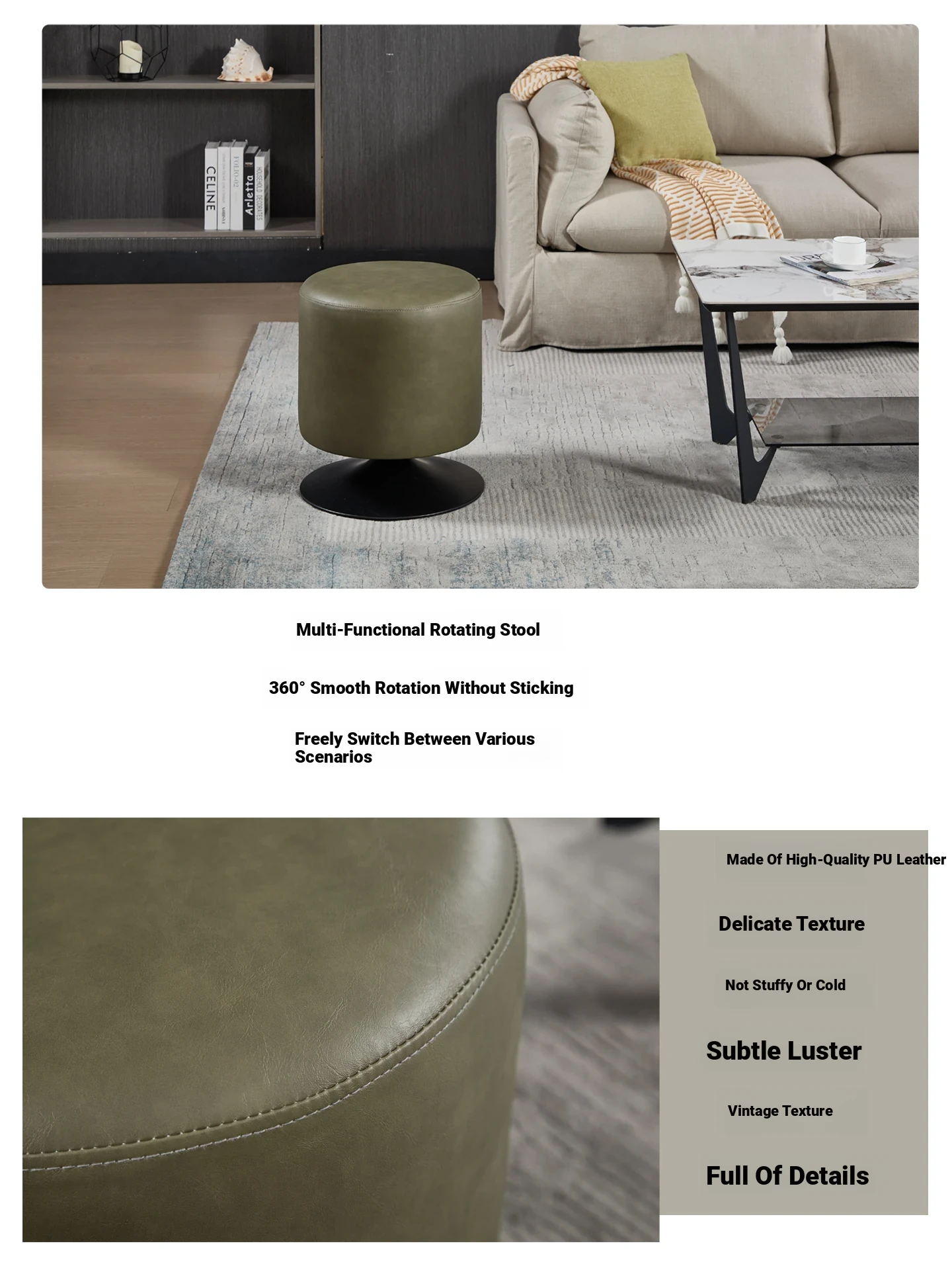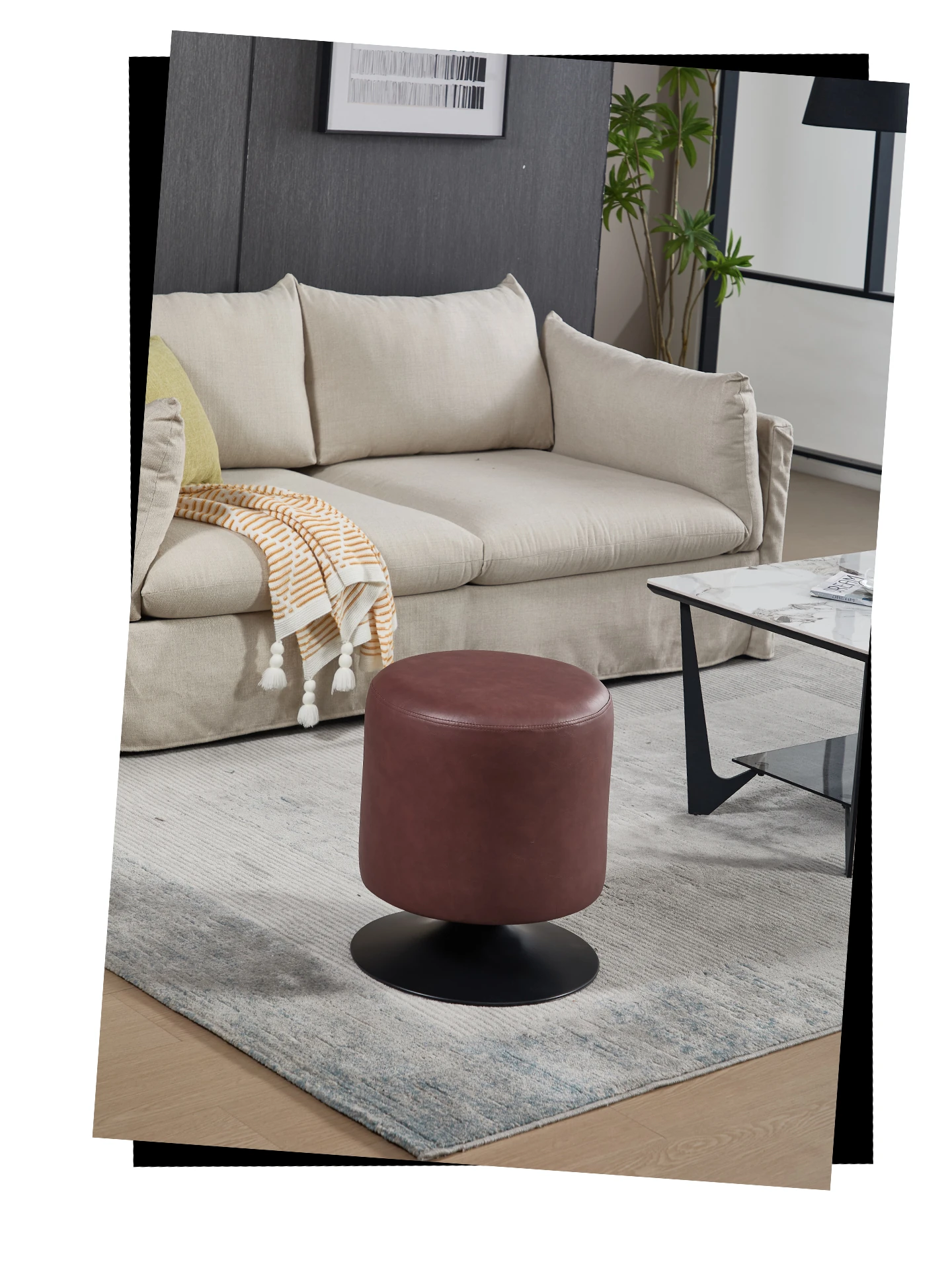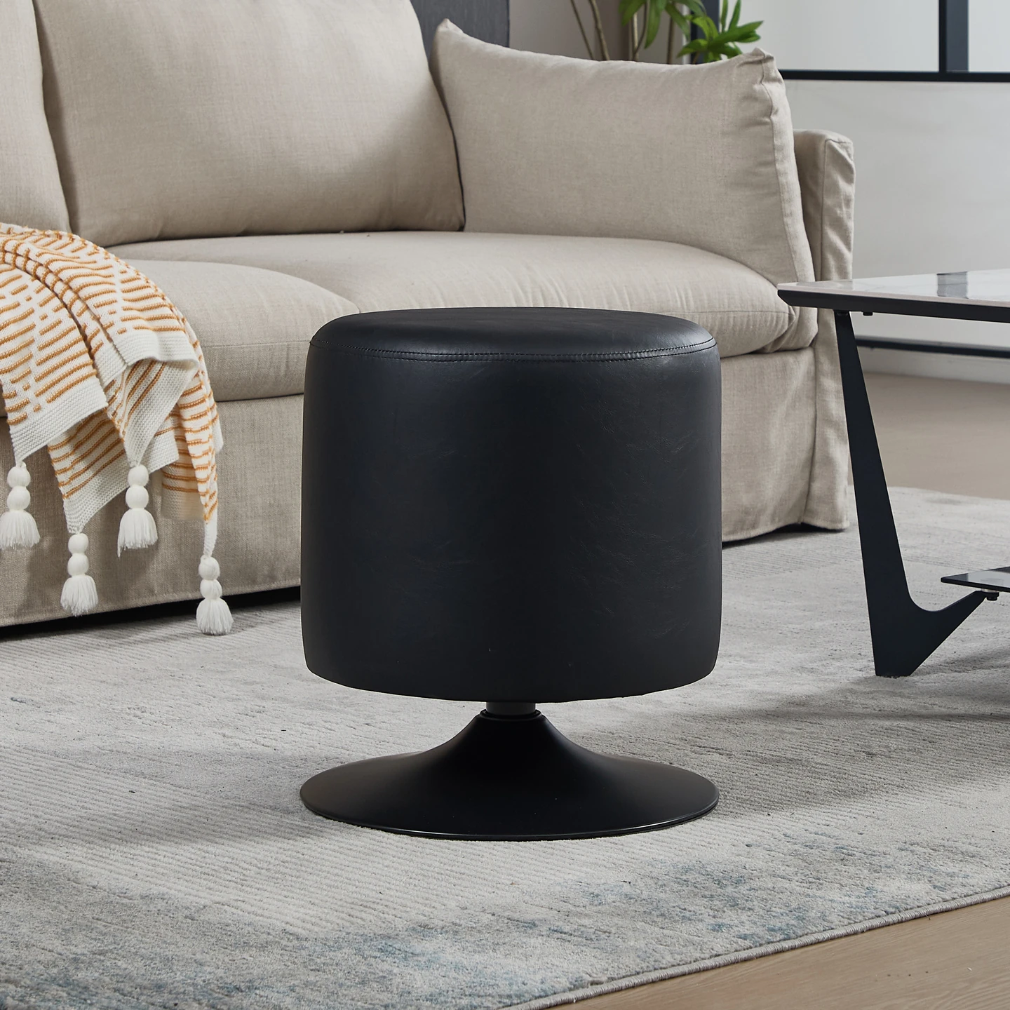 Stylish Round Makeup Vanity Stool - Rotating Single Sofa Seat for Living Room, Trendy Leather Ottoman, Perfect Shoe Changing Stool, Ideal Makeup Chair, Chic Café Swivel Chair