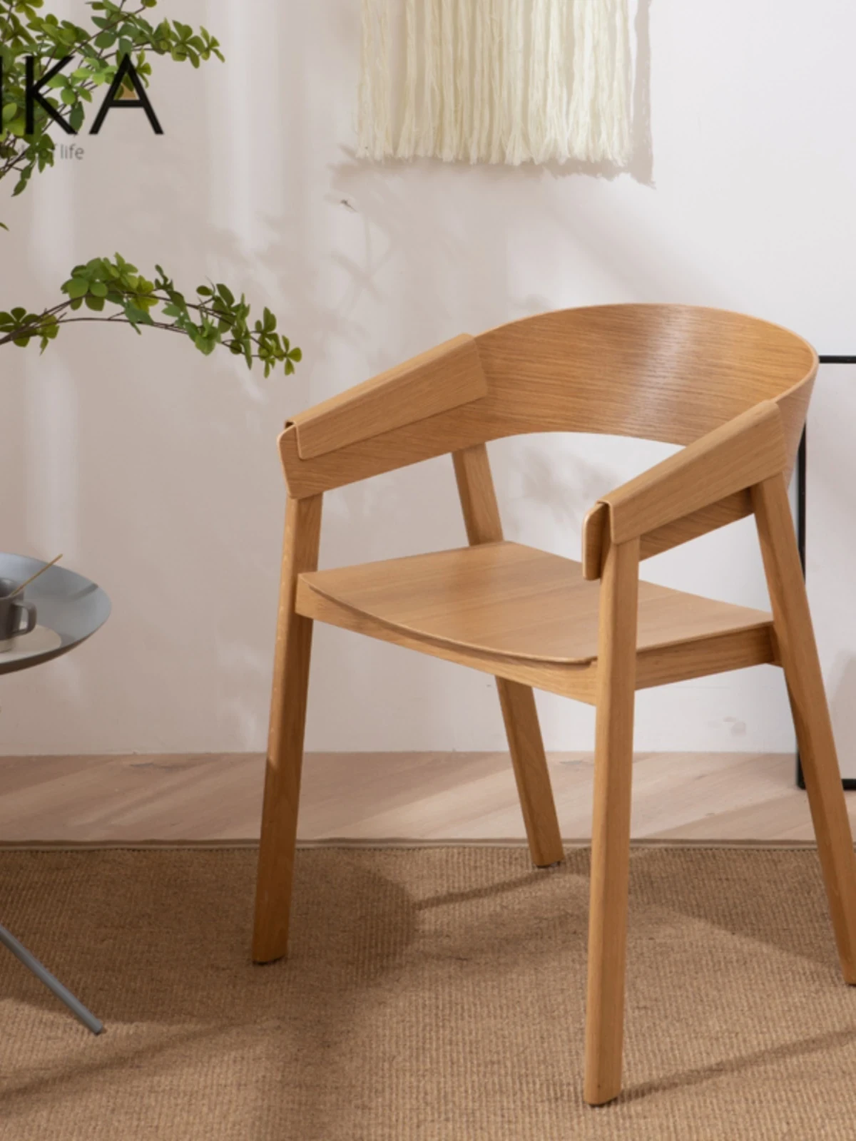 Stylish Solid Wood Leisure Dining Chair - Modern Scandinavian Guest Chair in Creative Minimalist Design, Perfect for Home and Meetings, Made from White Oak
