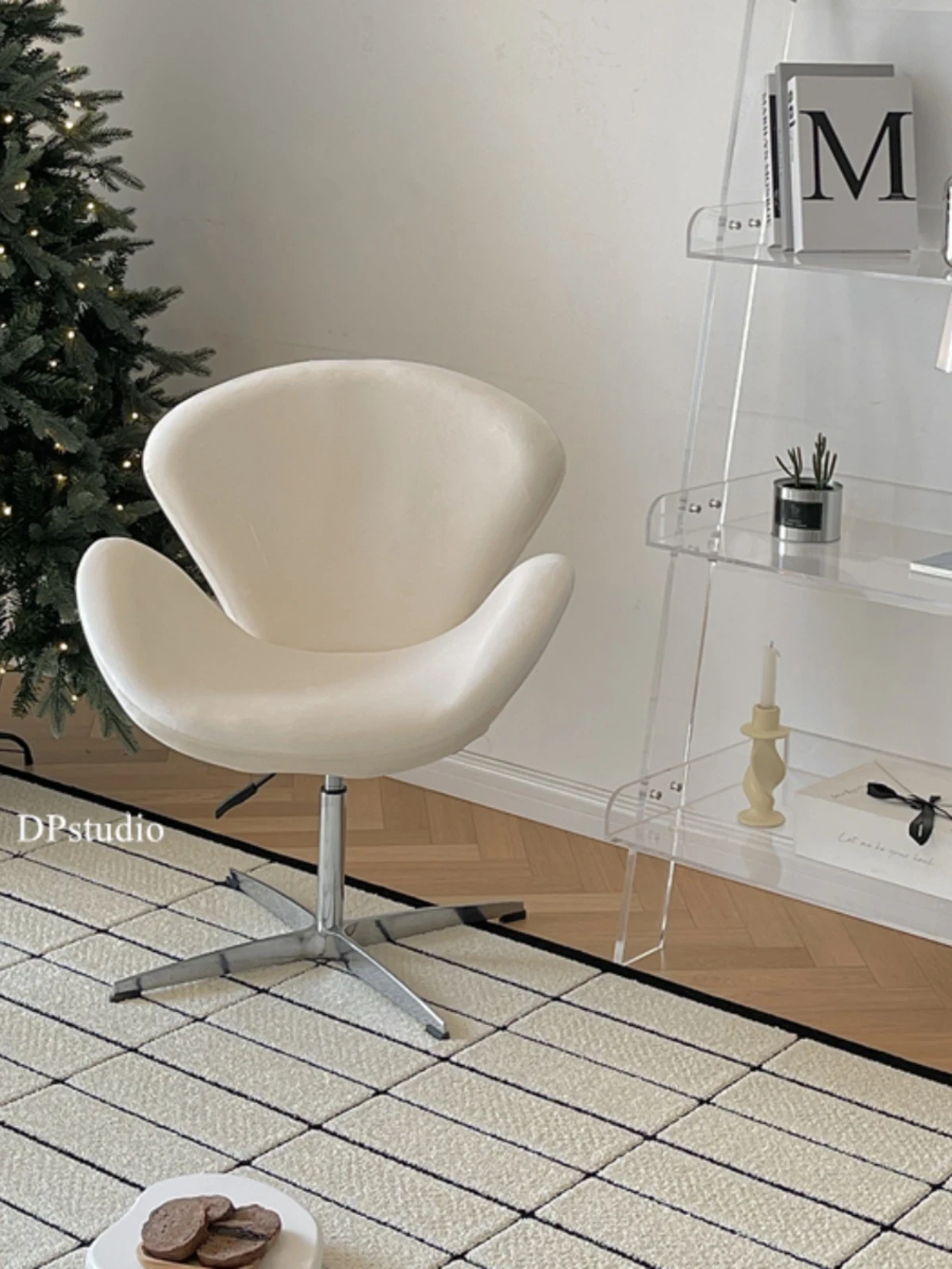 Stylish Swivel Swan Chair - Comfortable Minimalist Accent Sofa for Small Spaces, Adjustable Office Chair, Perfect as Makeup Stool - Trendy and Versatile Design