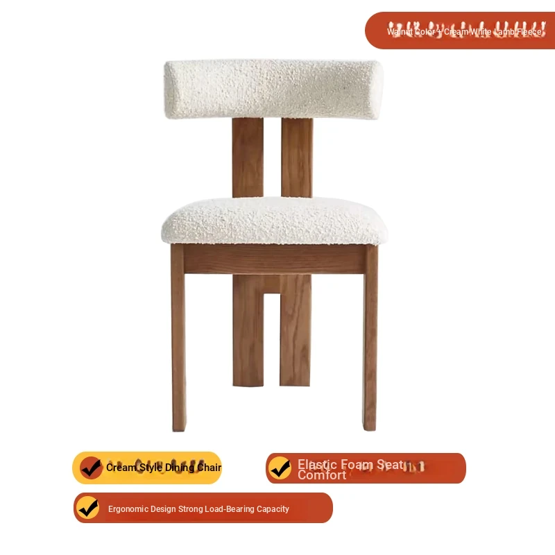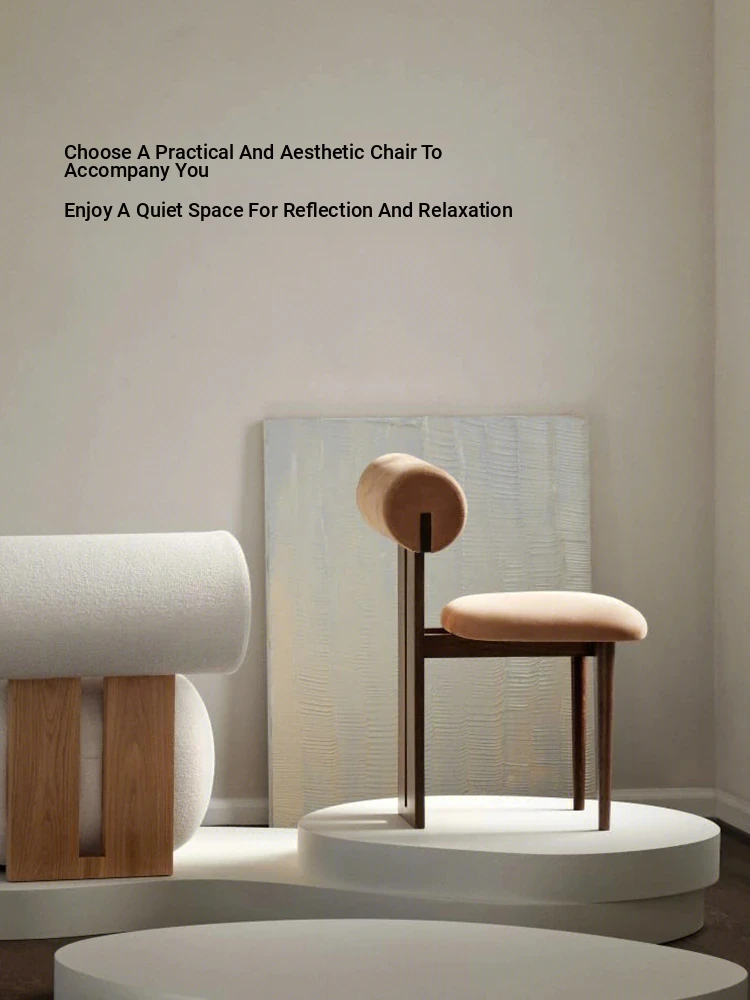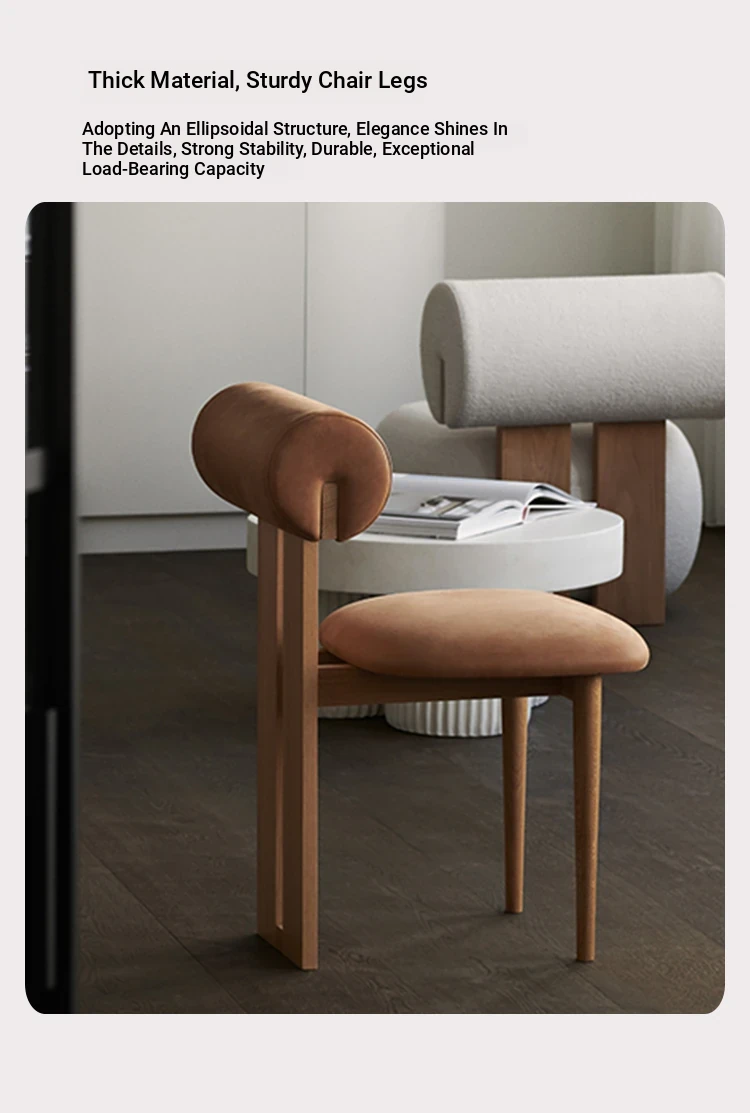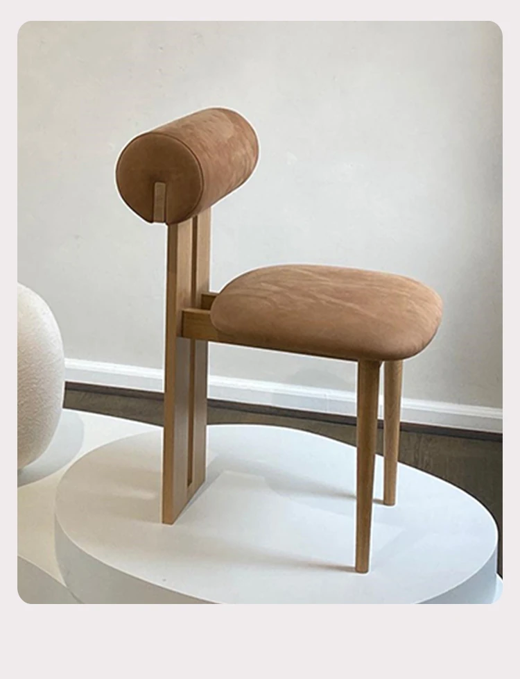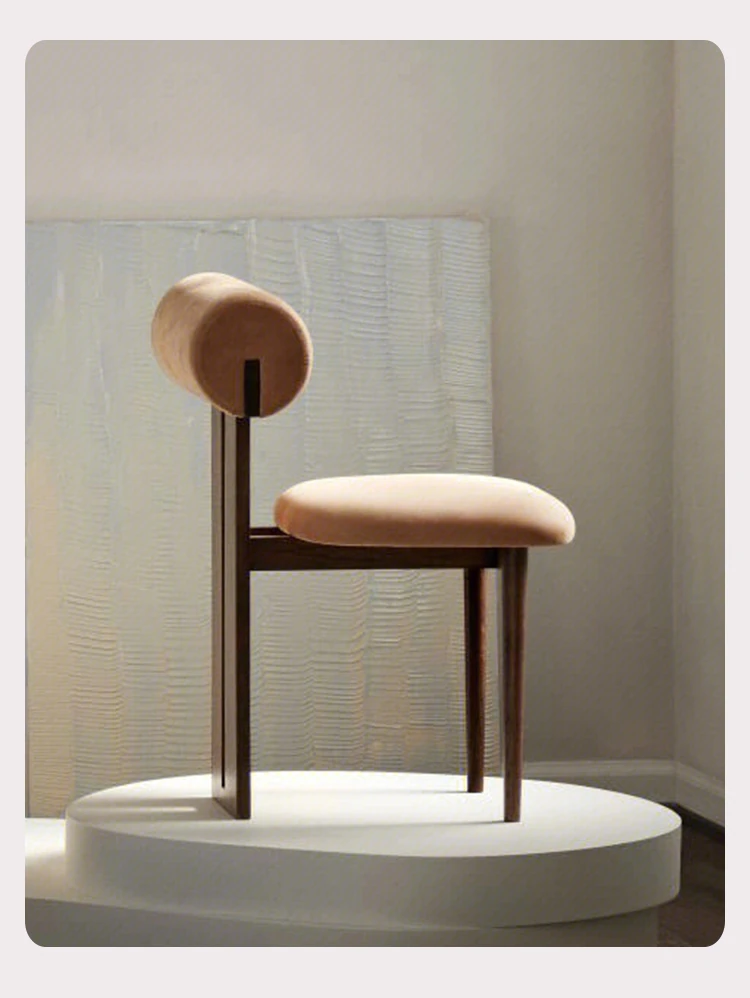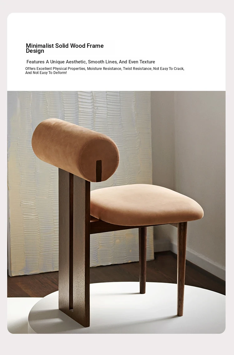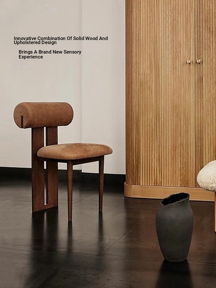 Wabi-Sabi Style Solid Wood Upholstered Dining Chair - Minimalist Leisure Makeup Vanity Chair - Modern Nordic Chic for Elegant Spaces