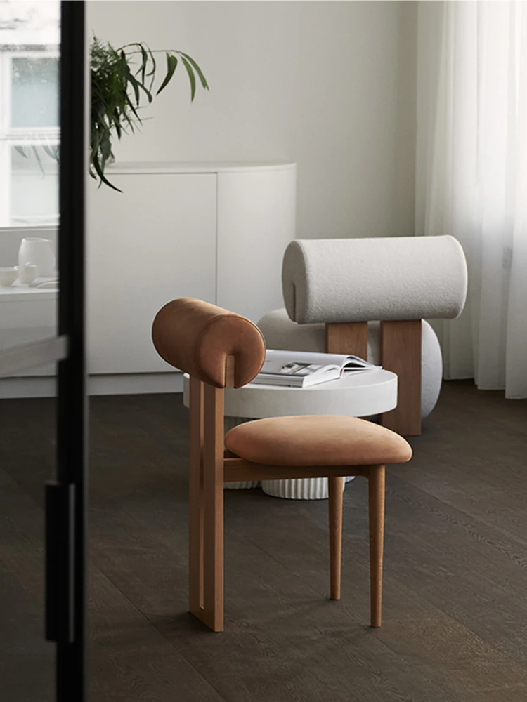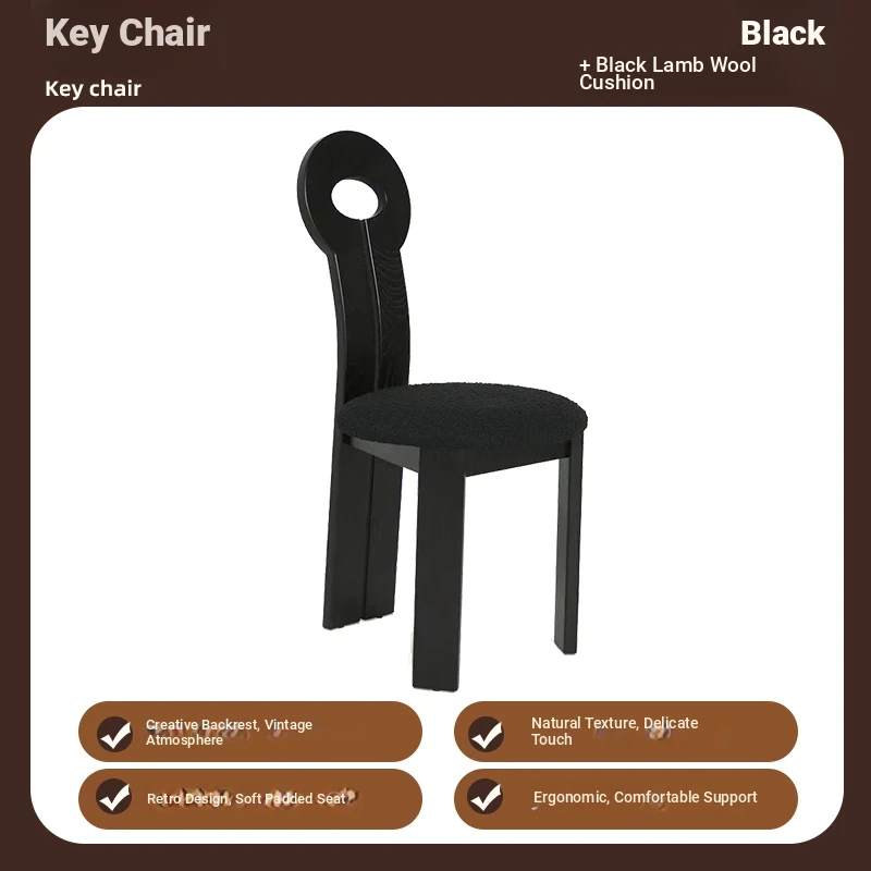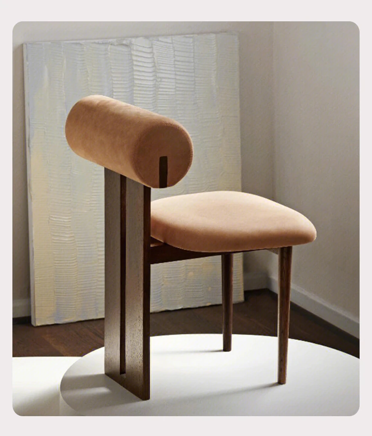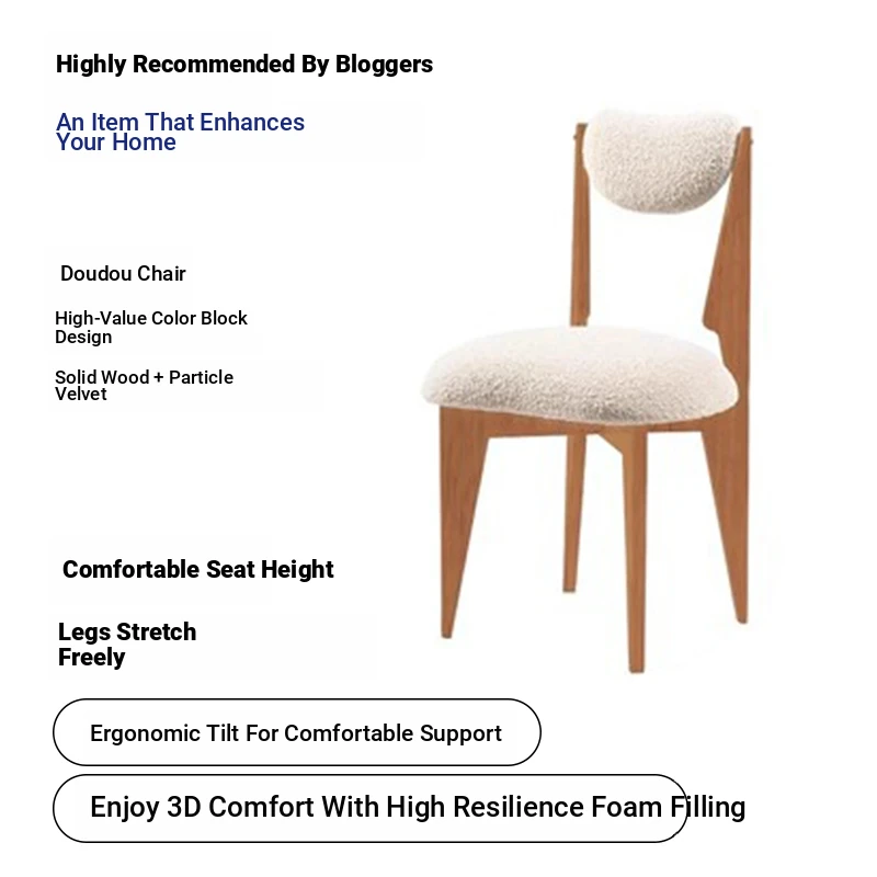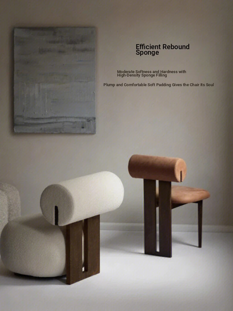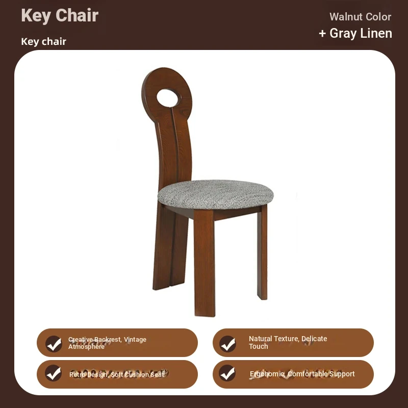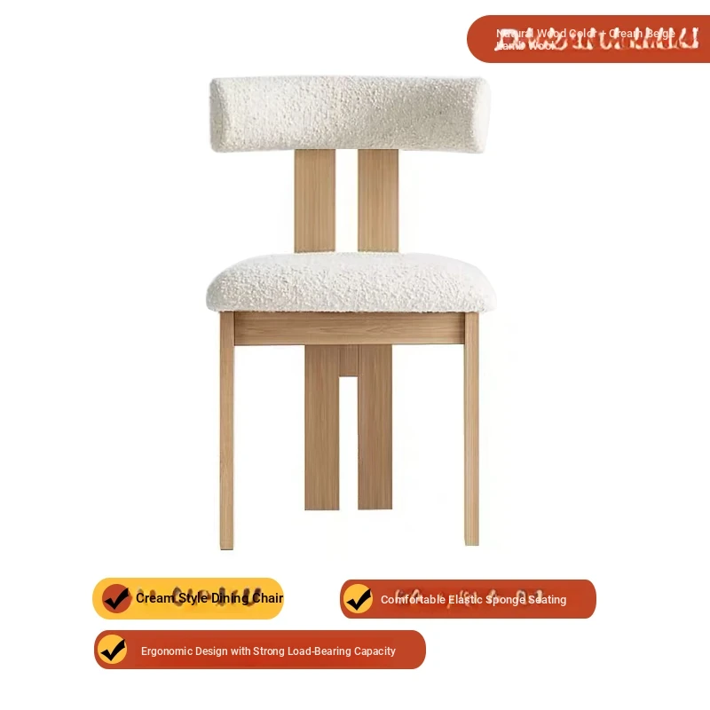 Wabi-Sabi Style Solid Wood Upholstered Dining Chair - Minimalist Leisure Makeup Vanity Chair - Modern Nordic Chic for Elegant Spaces