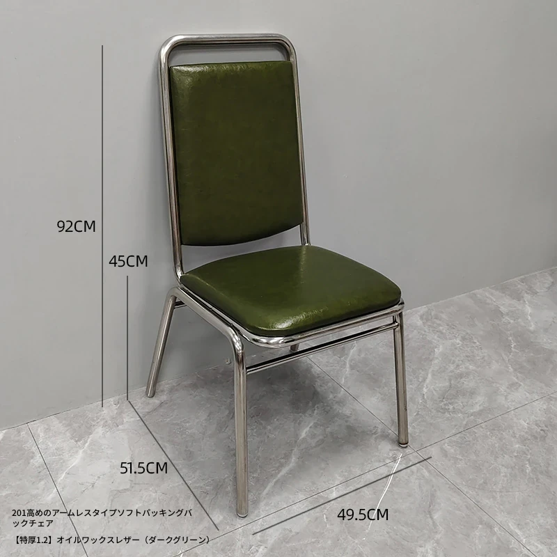 304高め無肘ソフトパッキング背もたれ椅子 【特厚1.2】オイルワックスレザー(墨緑)