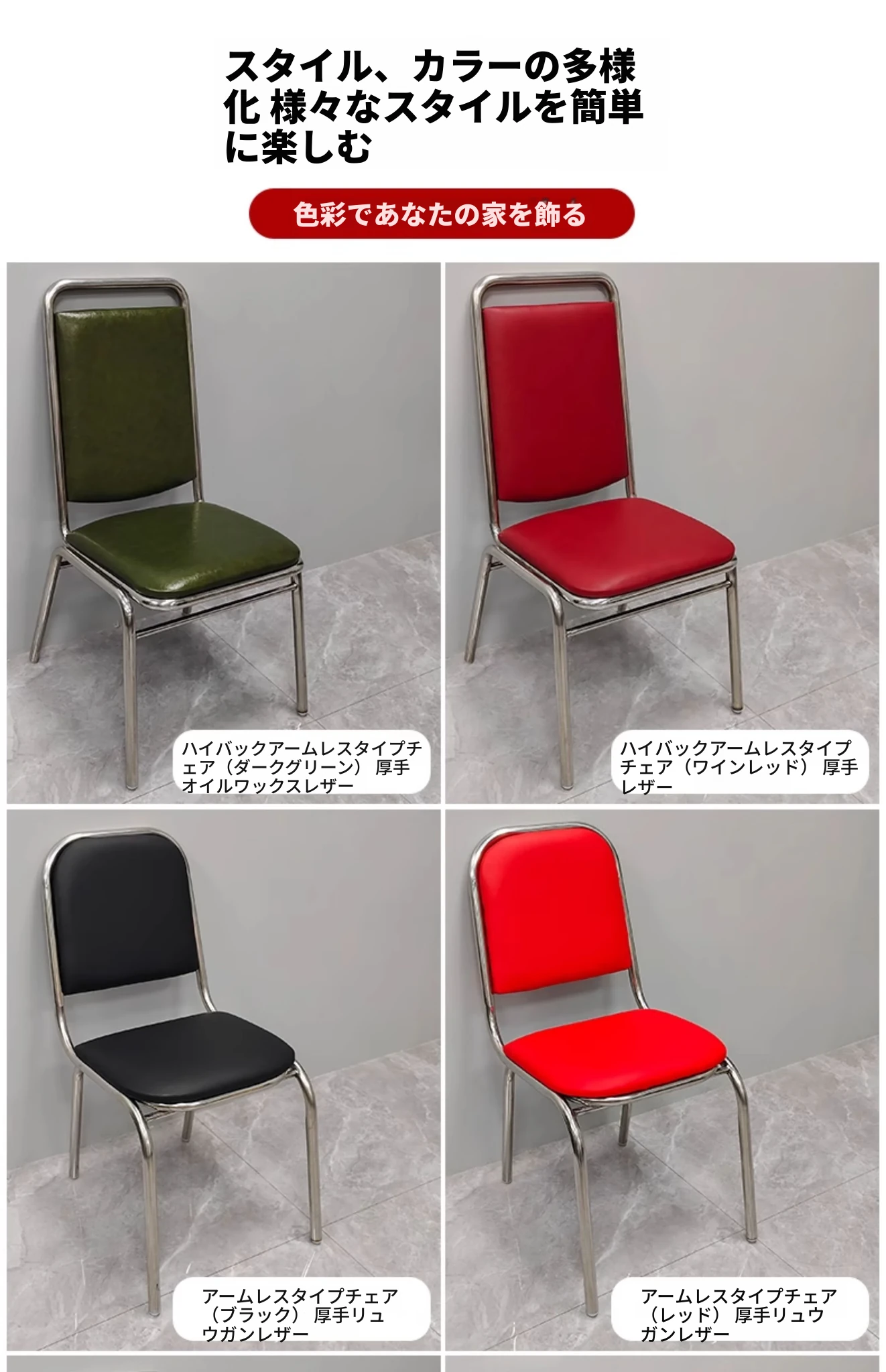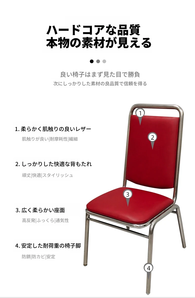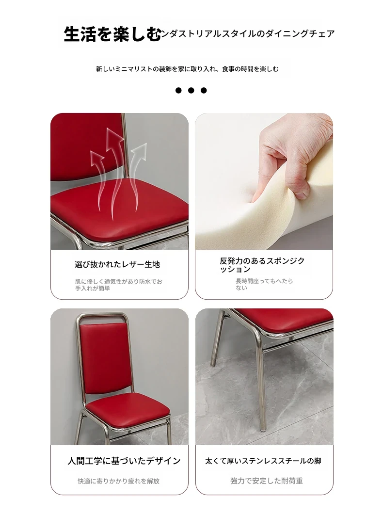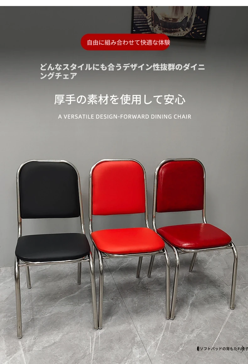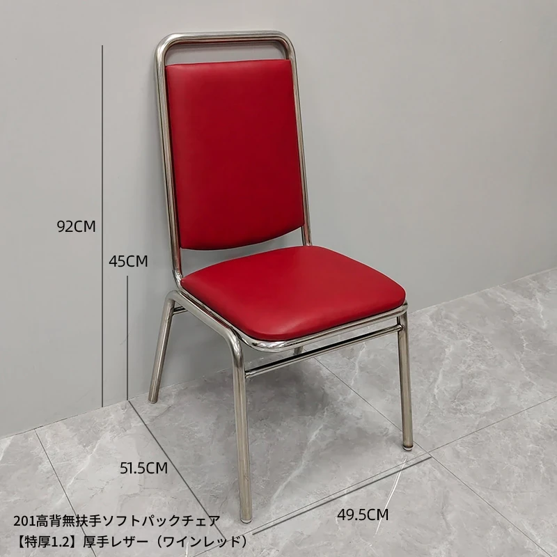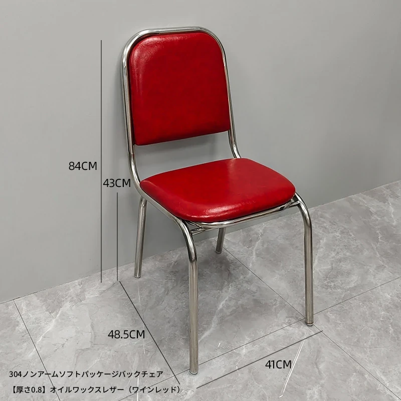 304高め無肘ソフトパッキング背もたれ椅子 【特厚1.2】厚手レザー(ワインレッド)