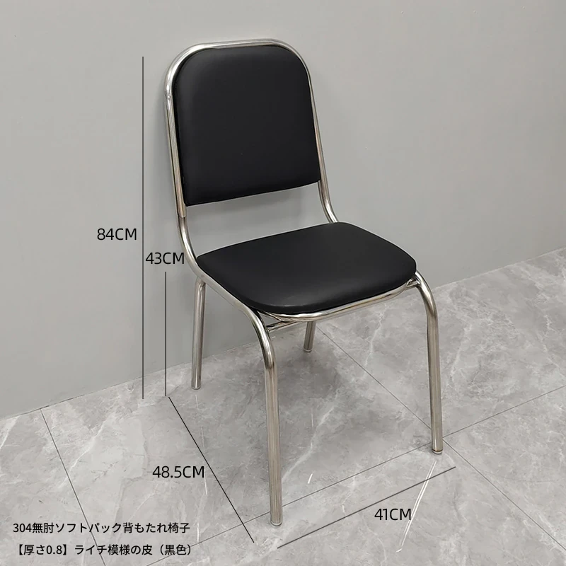 304無肘ソフトパッキング背もたれ椅子 【厚さ0.8】ライチ模様レザー(黒)