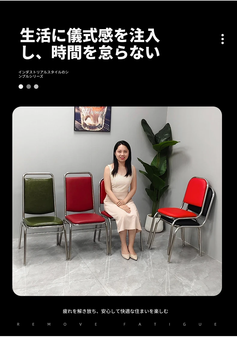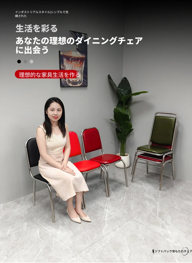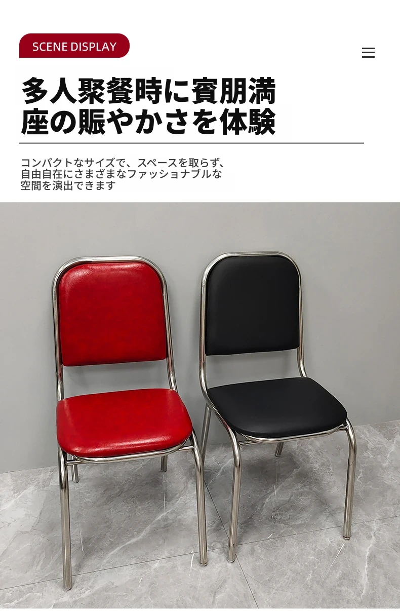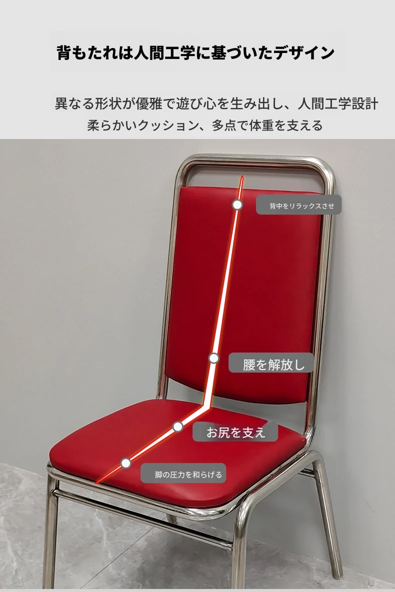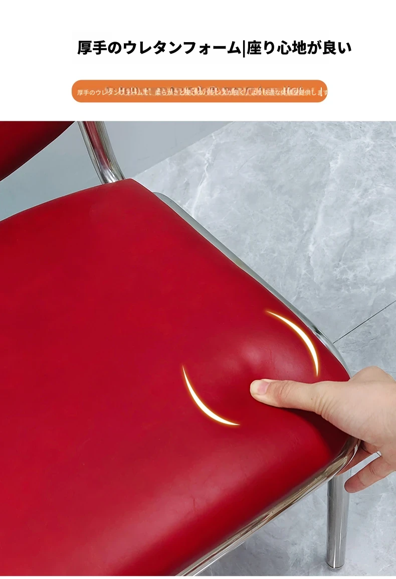 304無肘ソフトパッキング背もたれ椅子 【厚さ0.8】ライチ模様レザー(赤)