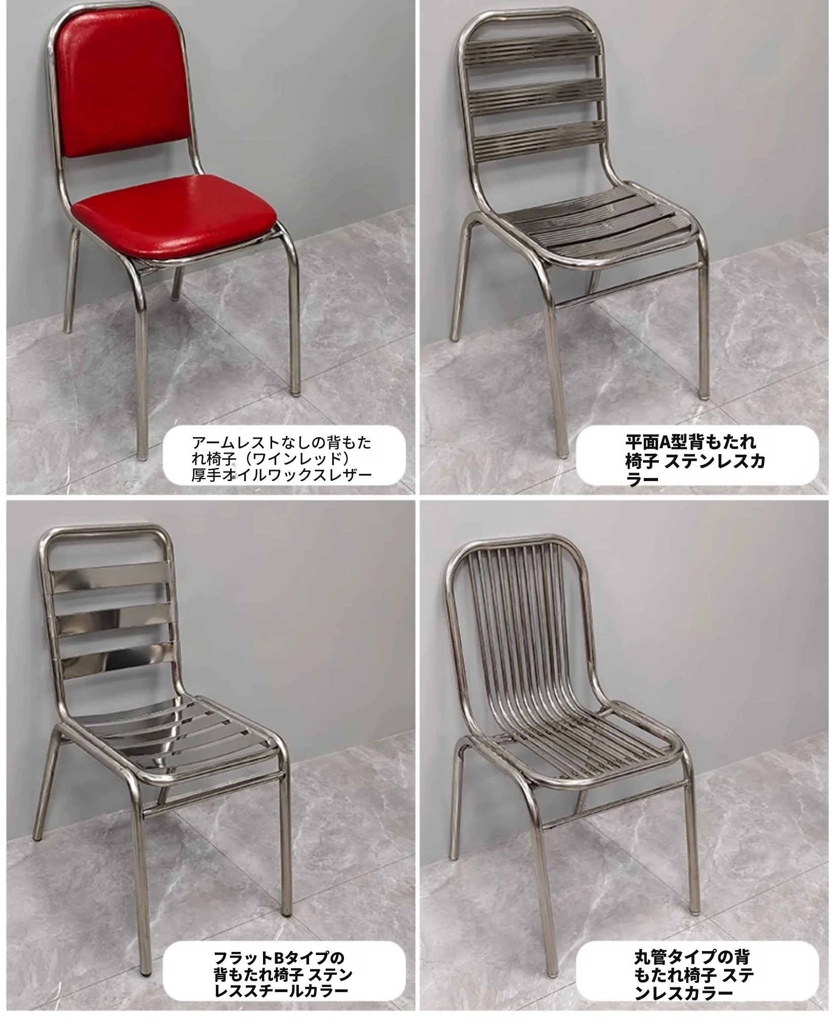 304円管タイプ背もたれ椅子 【厚さ0.8】ステンレス色