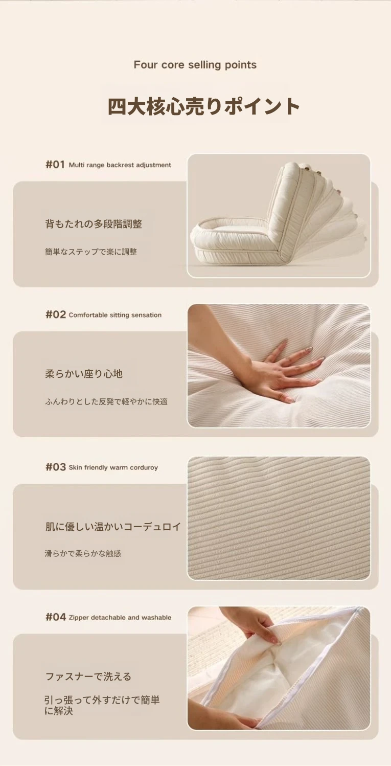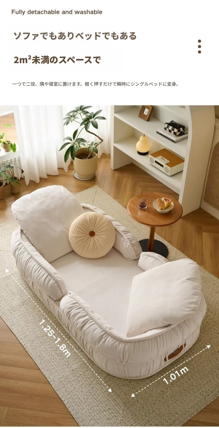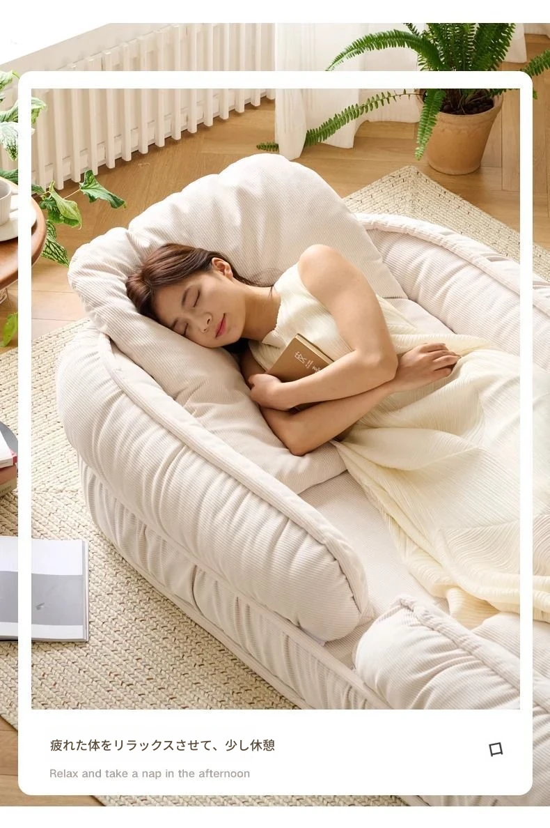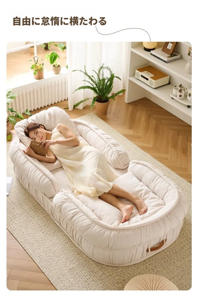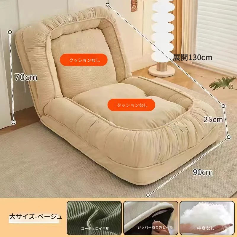 アイボリー色【コーデュロイ生地】座れる・寝れる・くつろげる|大きな1人用【クッションなし】送料無料/即日発送