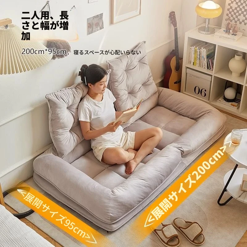薄灰色【テクノロジーフリース生地】座れる・寝れる・くつろげる|大きめの2人用【クッションなし】送料無料/即日発送