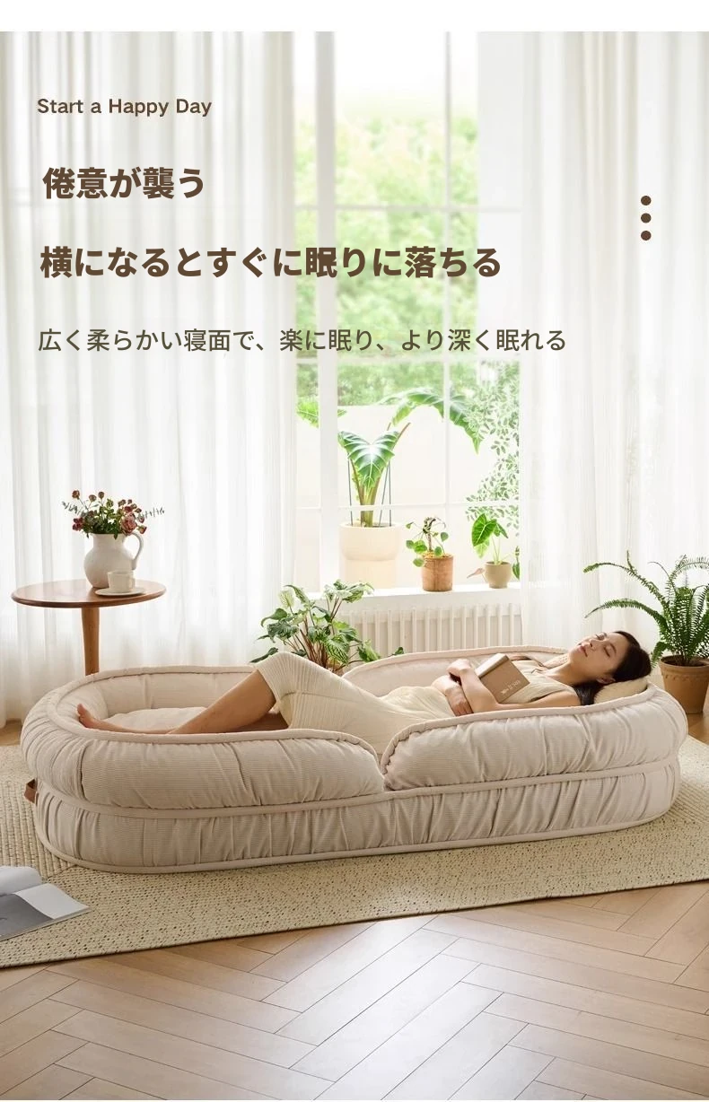 アイボリー色【モコモコ生地】座れる・寝れる・くつろげる|大きめの2人用【クッションなし】送料無料/即日発送