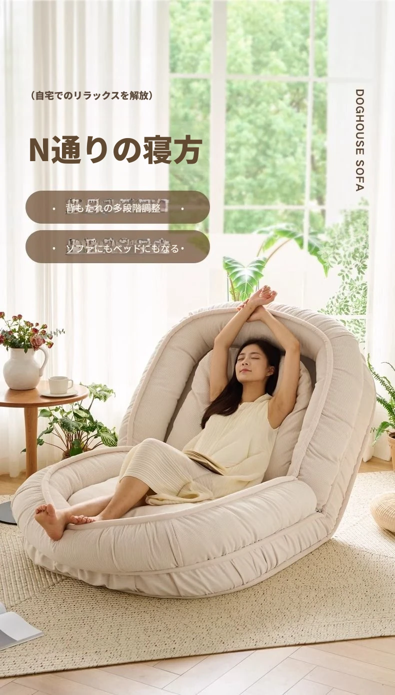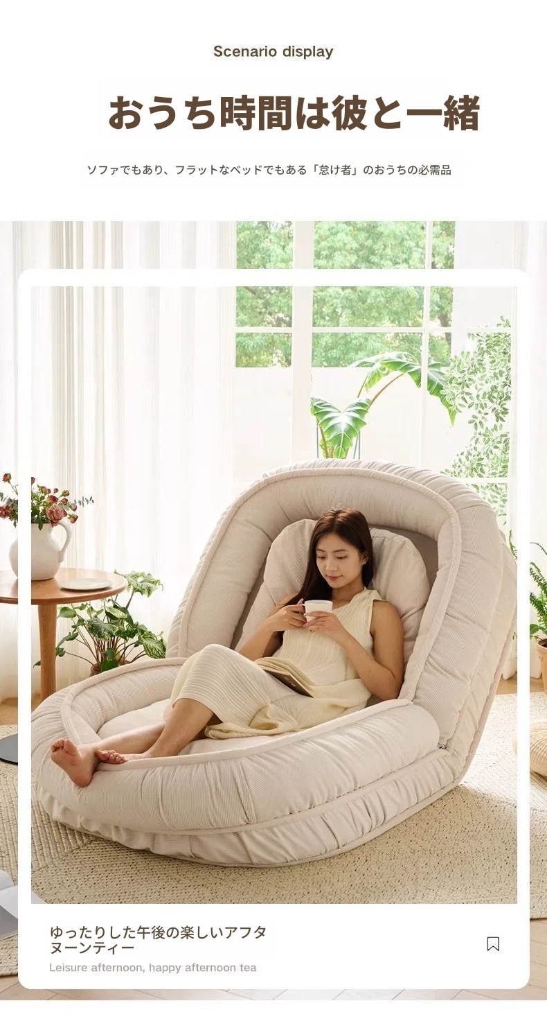 アイボリー色【テクノロジーフリース生地】座れる・寝れる・くつろげる|大きな1人用【クッションなし】送料無料/即日発送