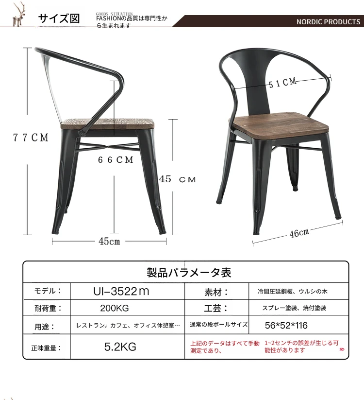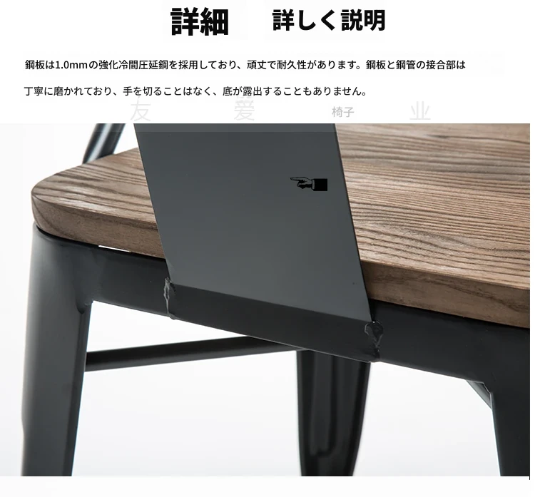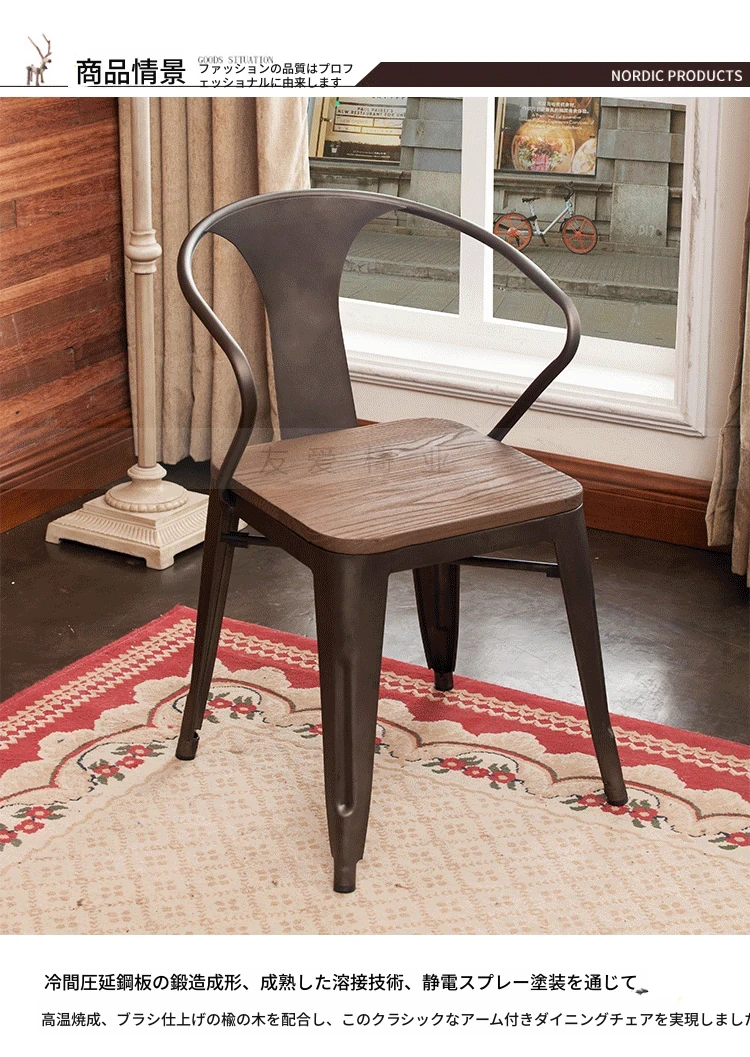 アメリカンカントリースタイルのロフト工業風アイアンチェア|火鍋店にも最適!榆木と金属のコンビネーションで耐久性抜群の一人掛けチェア。おしゃれなデザインで、どんなレストランにもぴったり!