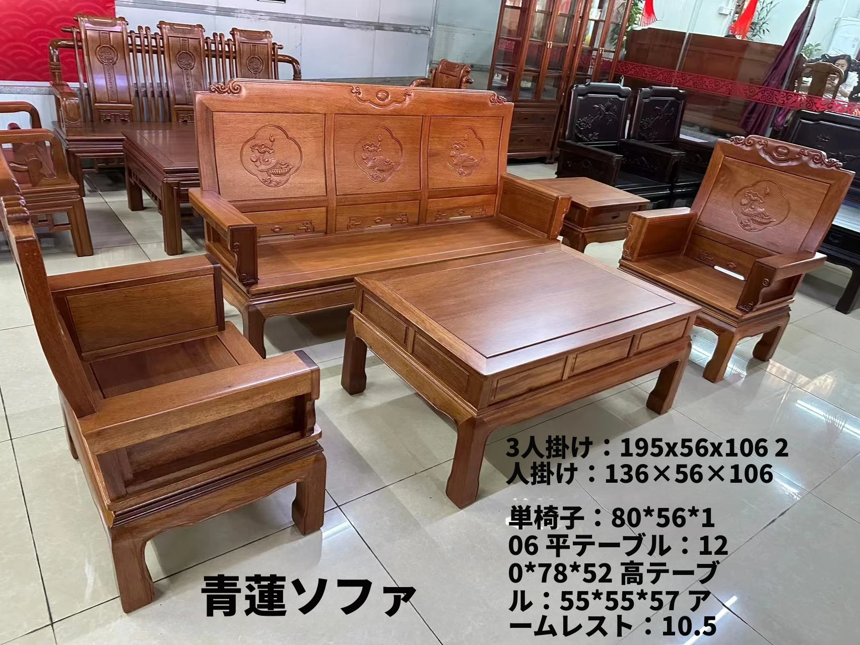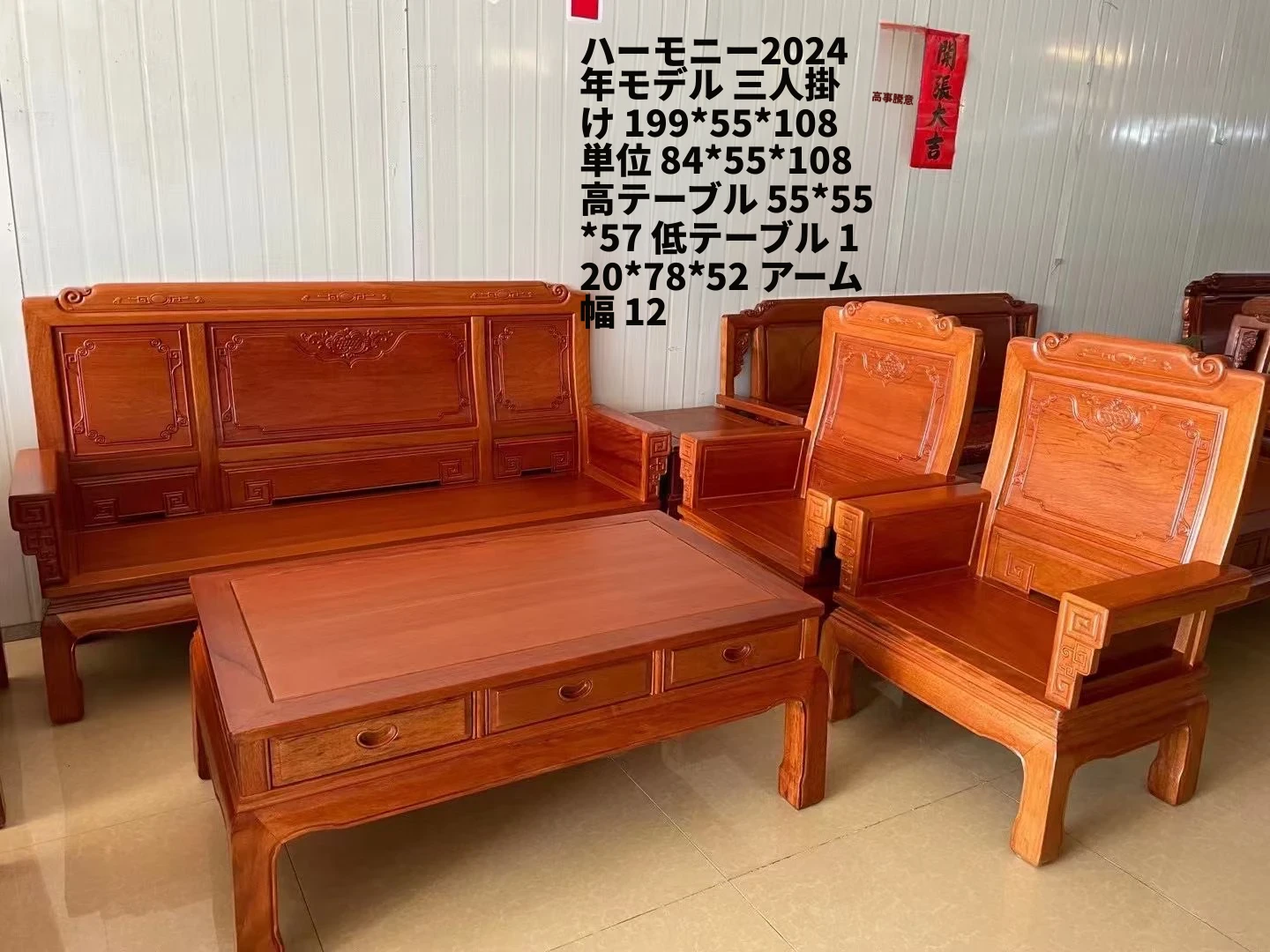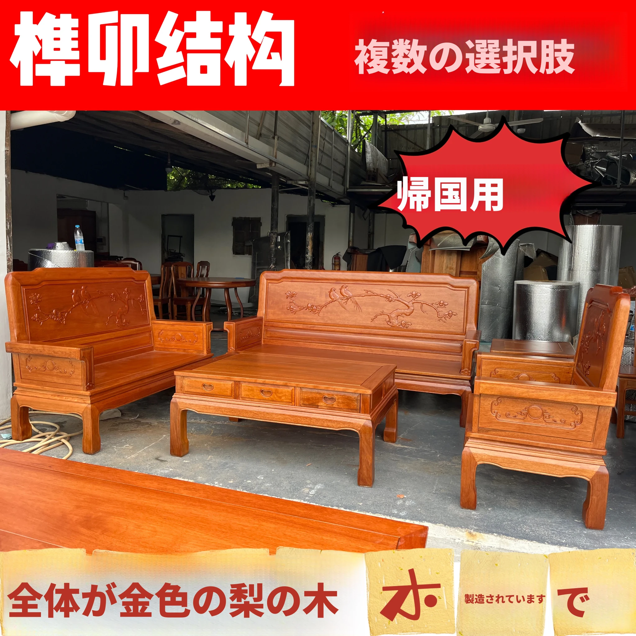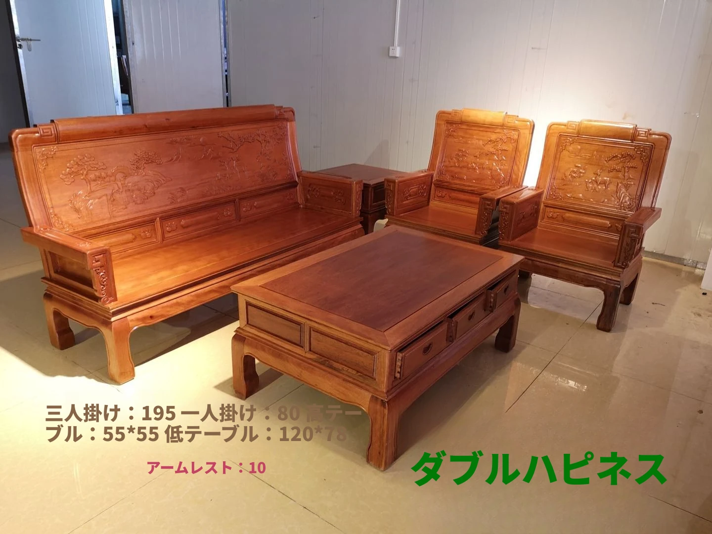 古典紅木中式純天然無毒沙發セット - 高品質金花梨・アフリカンパイン材使用、組み立て簡単、送料無料でお届け!おしゃれなリビング空間を演出します。